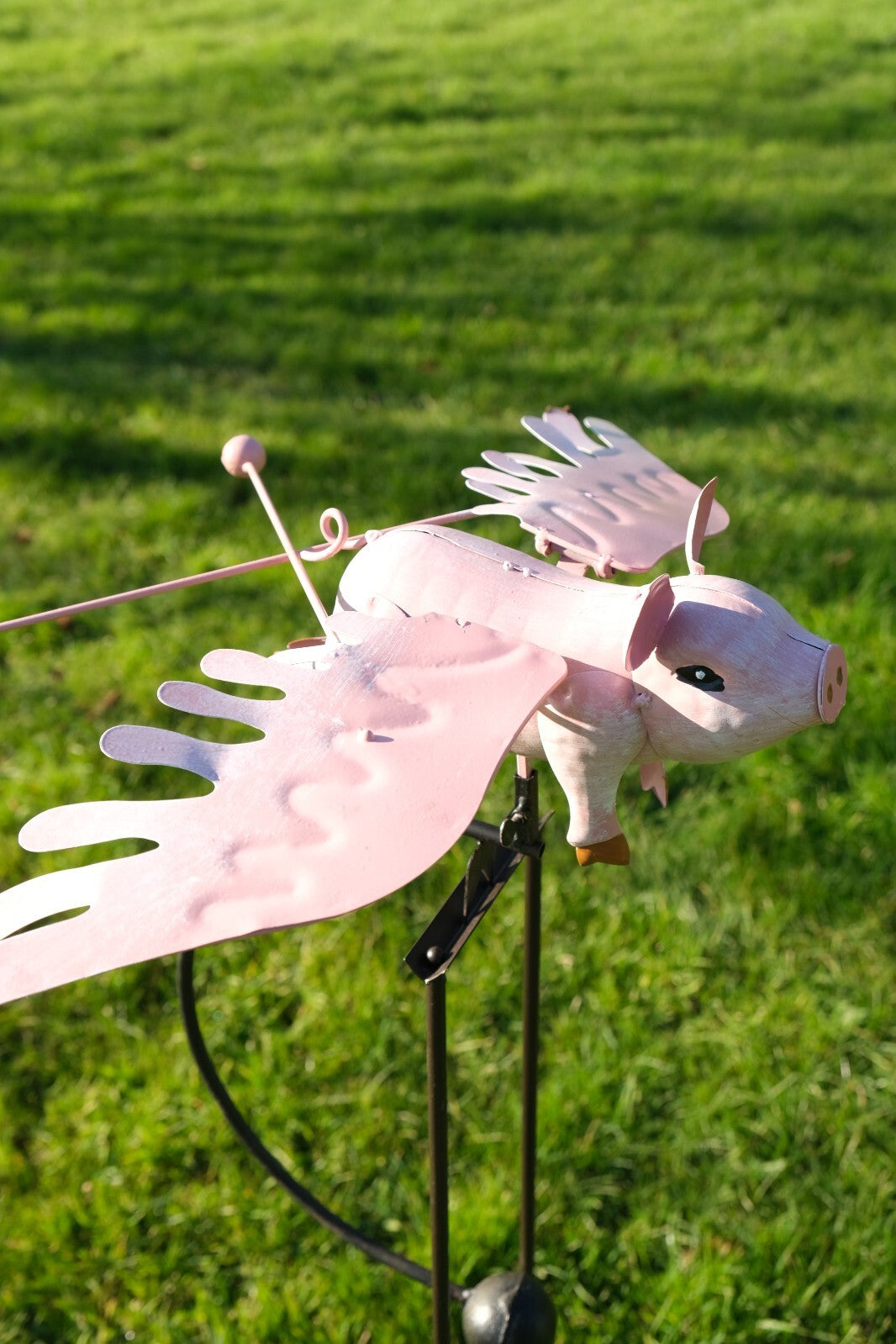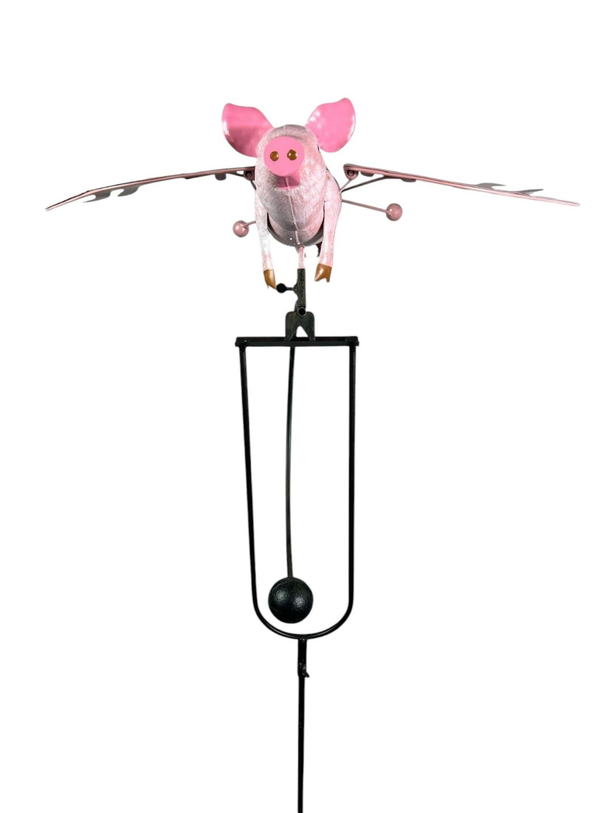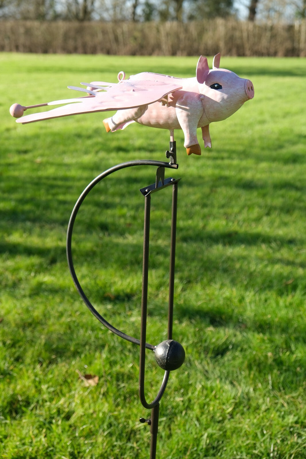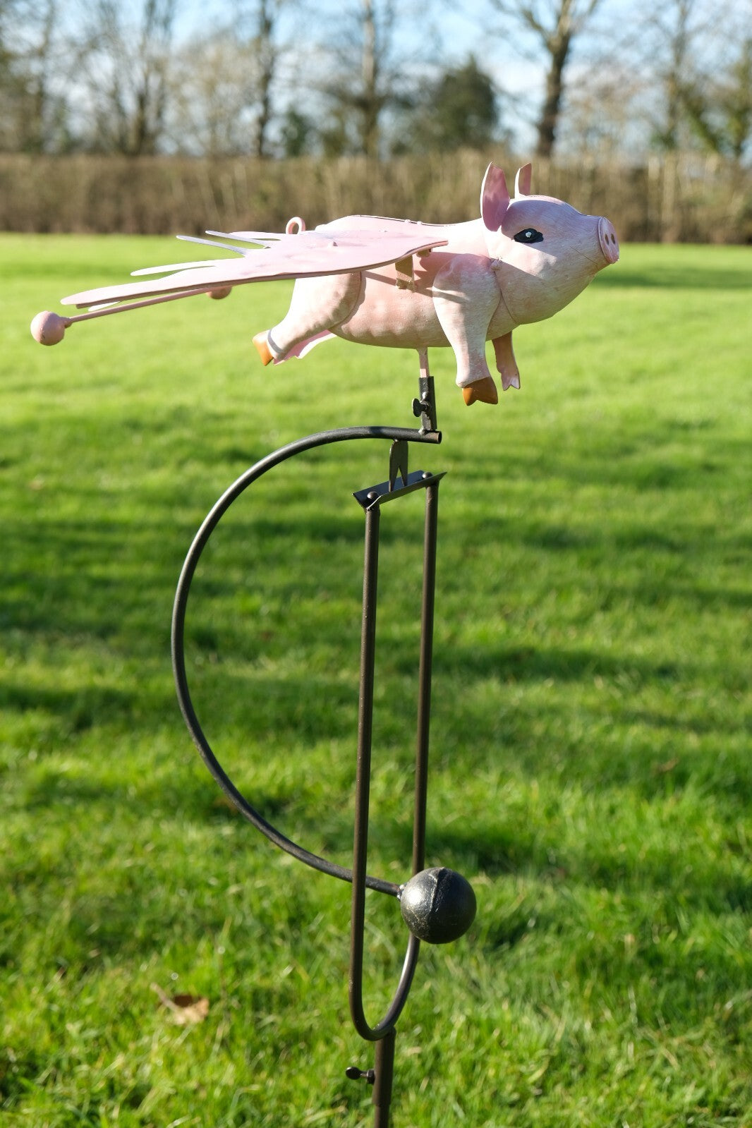 Flying Pig Rocking Balancing Garden Ornament Decoration Pink Animal Rocker Stake