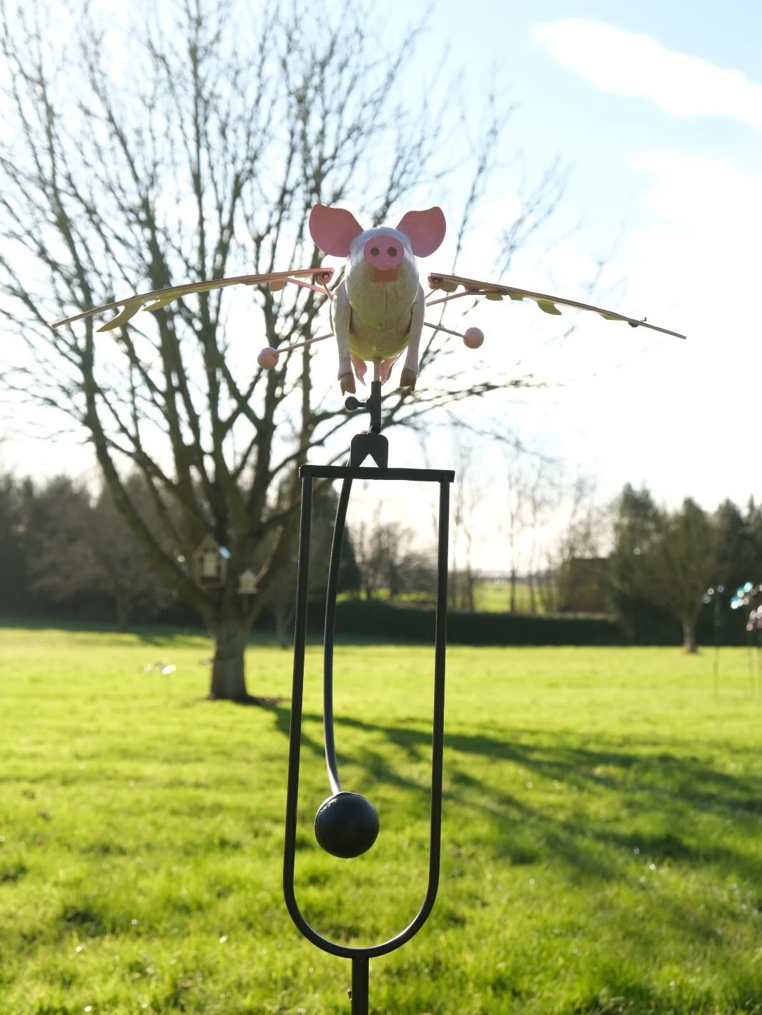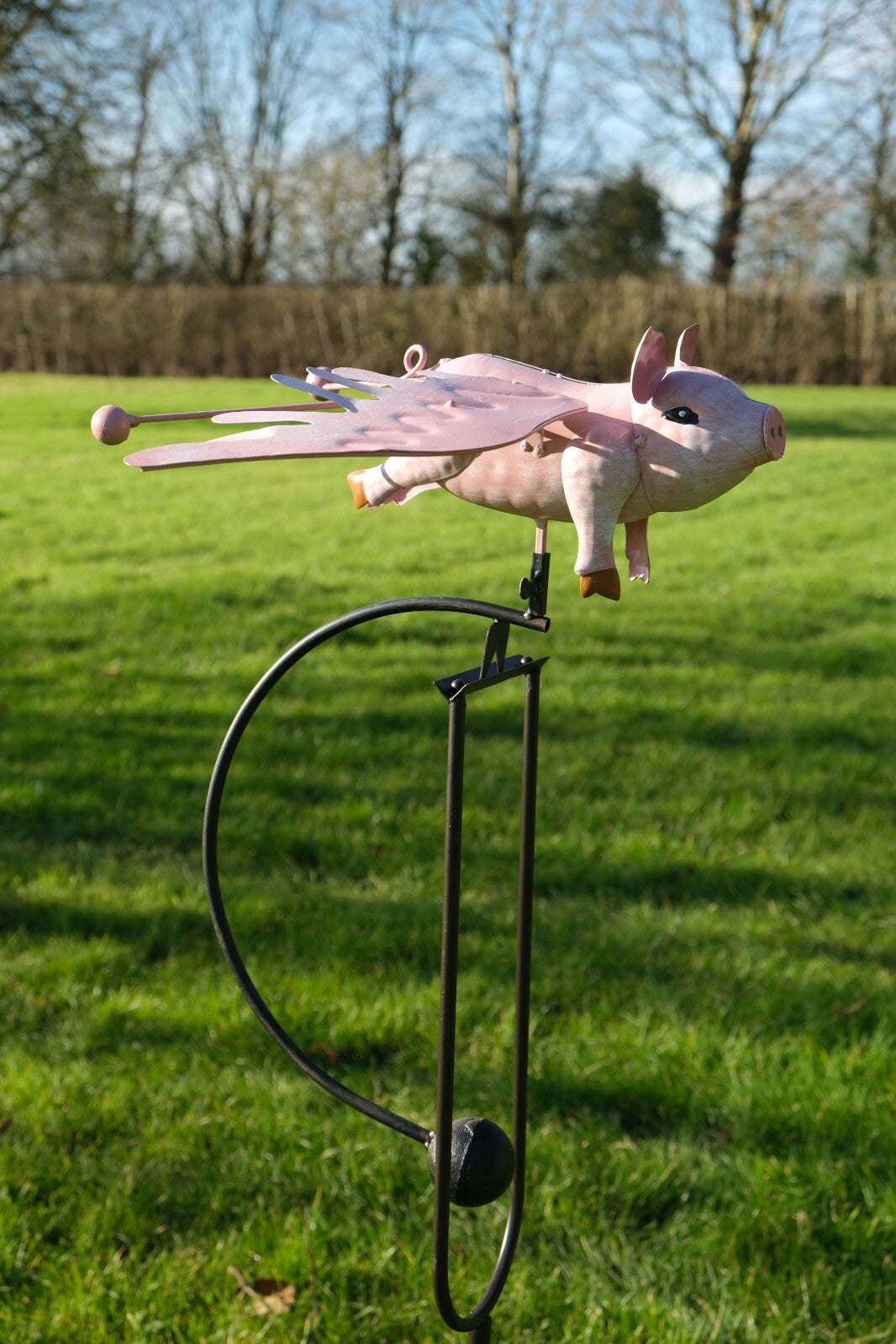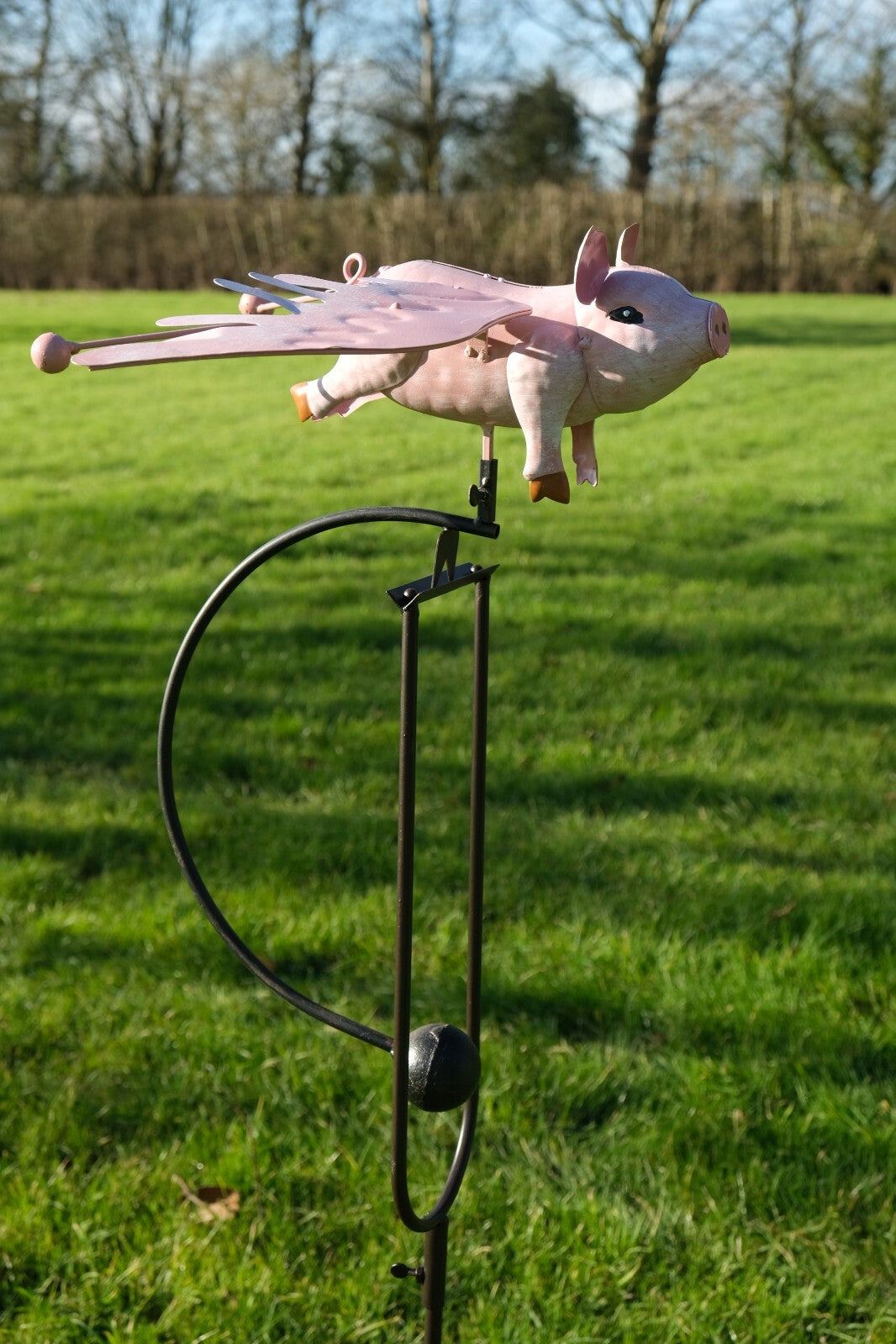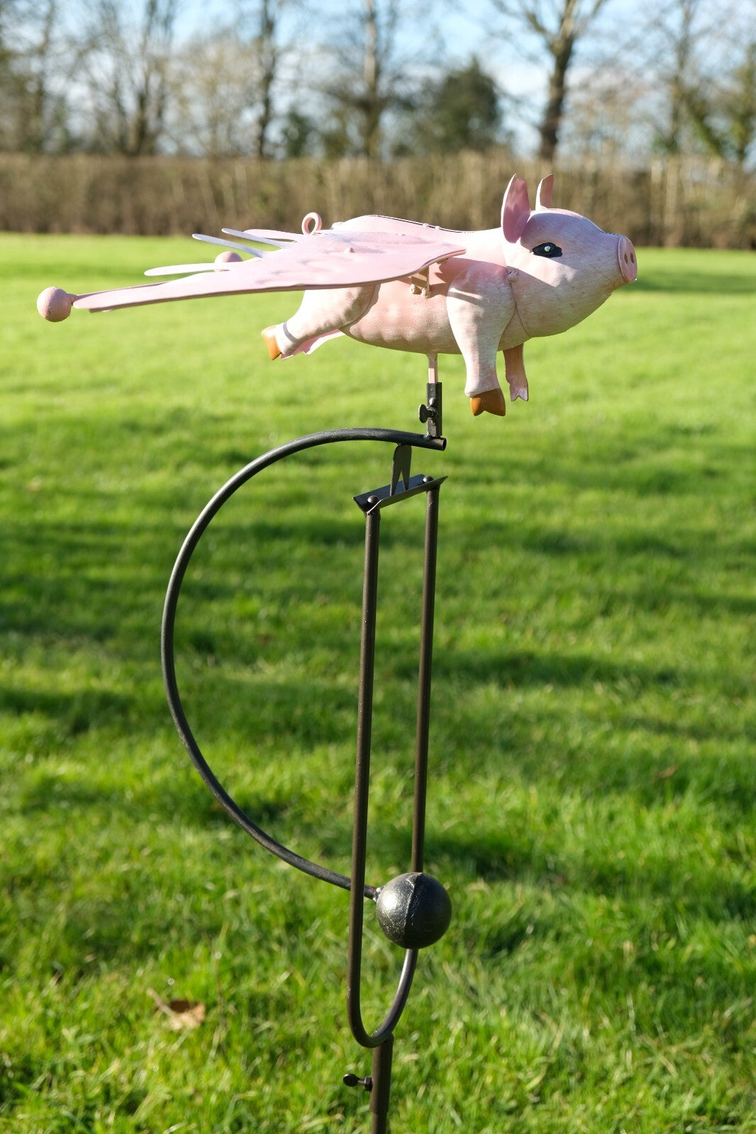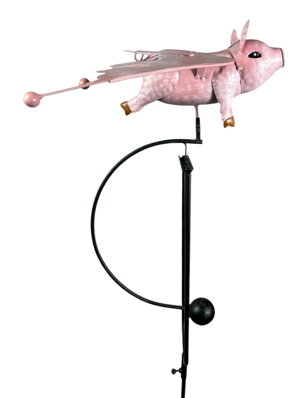 Flying Pig Rocking Balancing Garden Ornament Decoration Pink Animal Rocker Stake