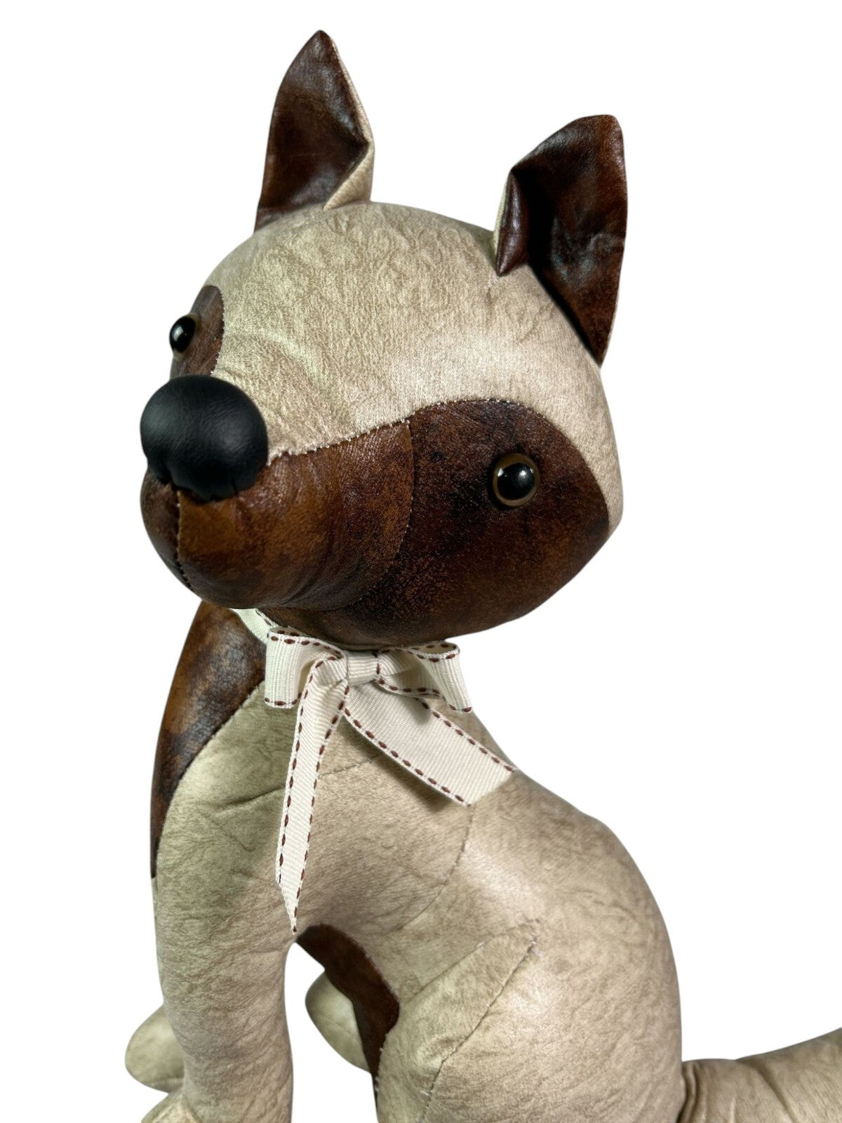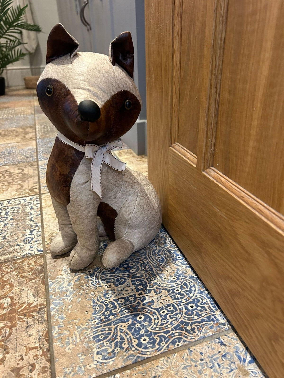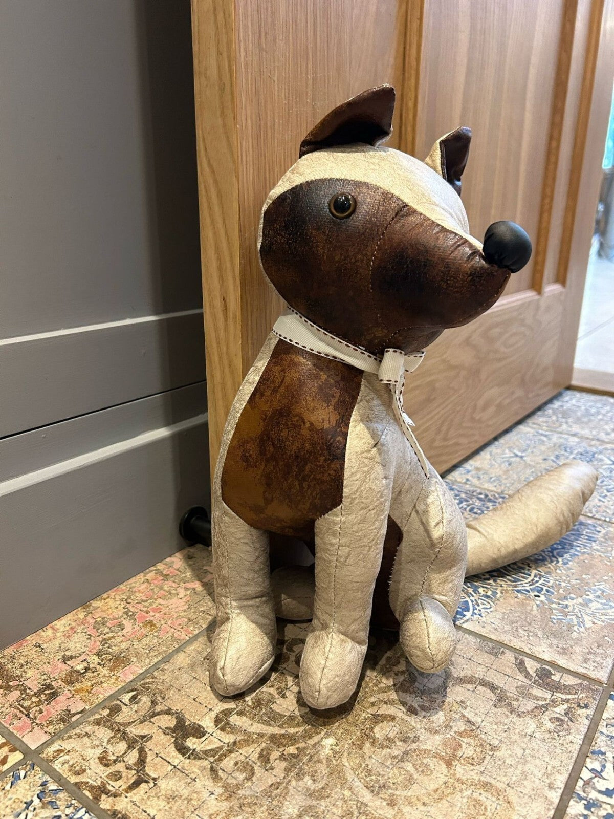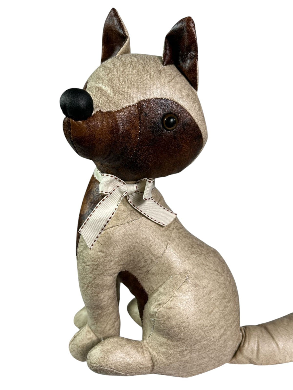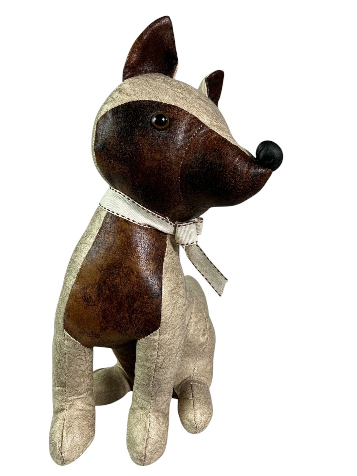 Fox Doorstop Faux Leather Feel Brown Cream Weighted Heavy Home Decor Decoration