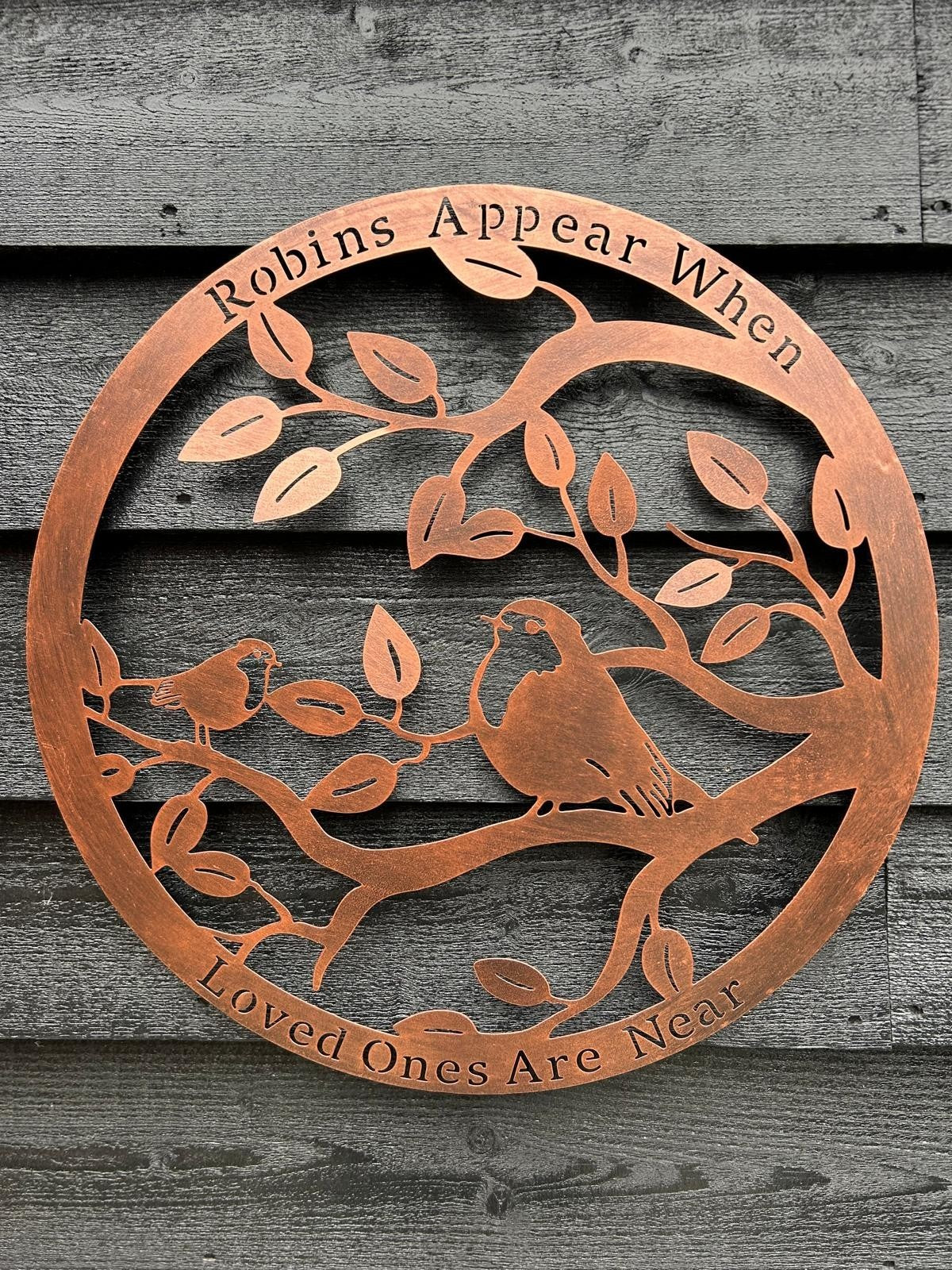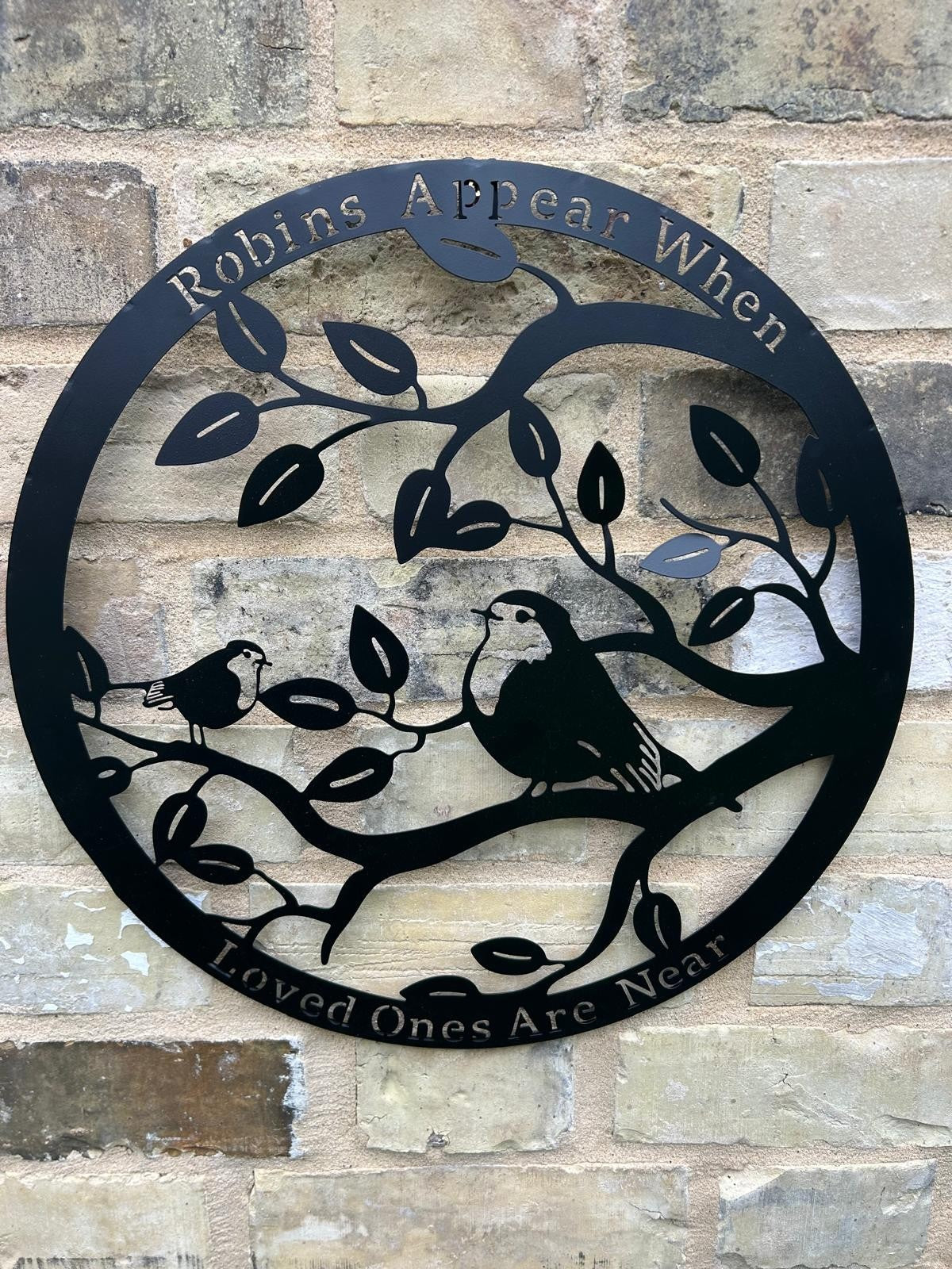 40cm Wall Art Black Robins Appear When Loved Ones Are Near Garden Home Gift