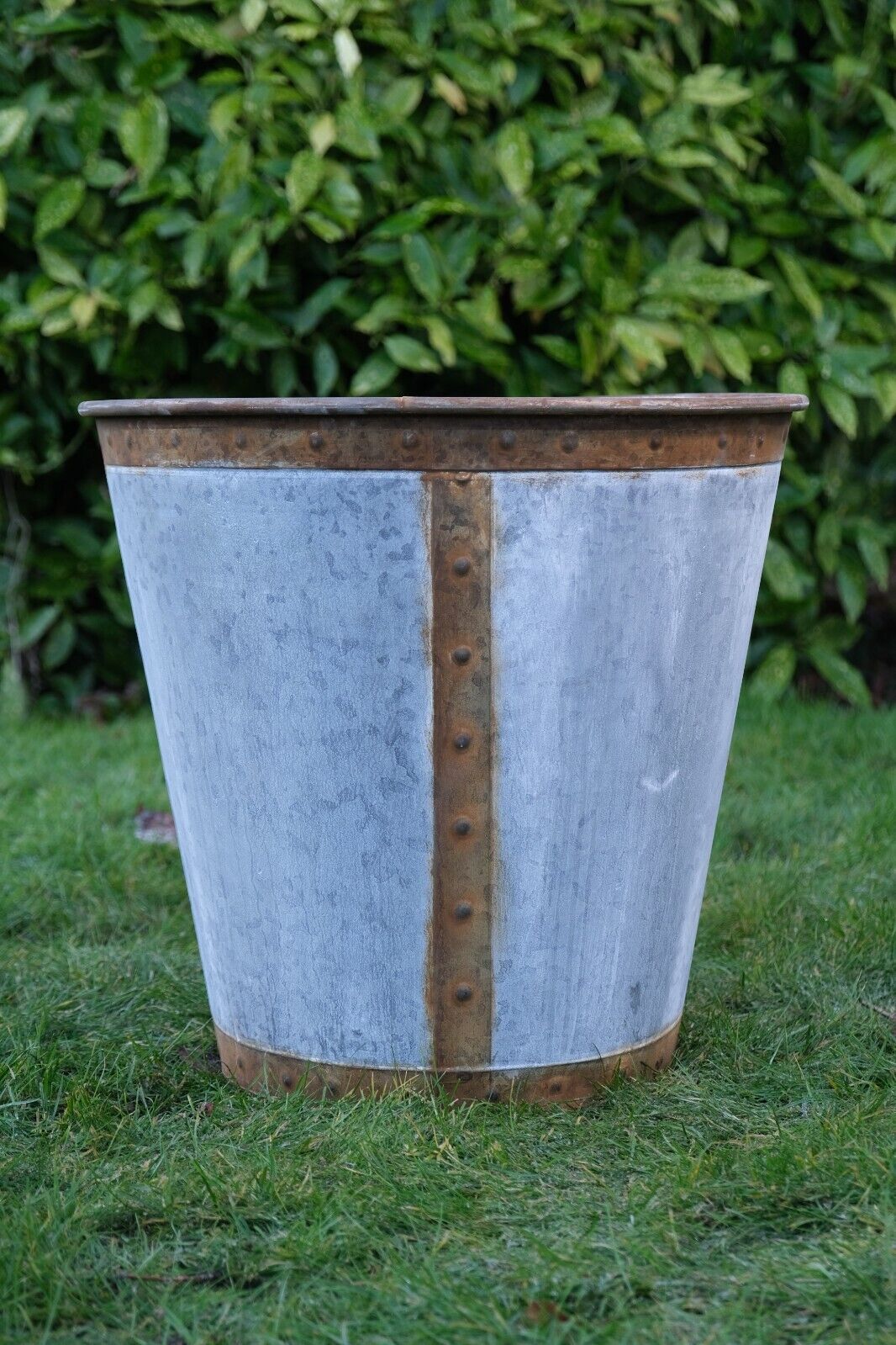 Large Zinc Round Planter Garden Flowers Trees with Rust Effect