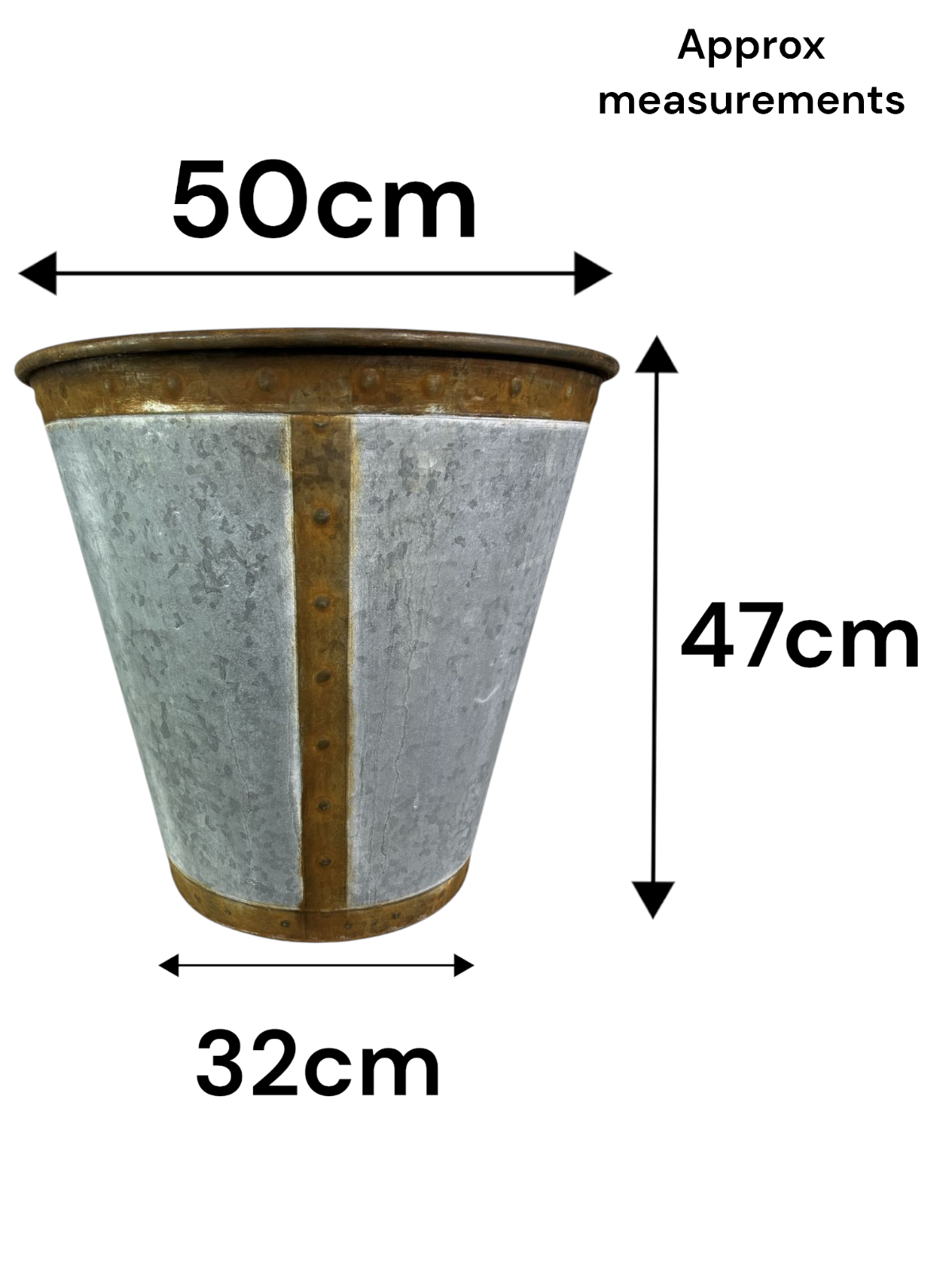 Large Zinc Round Planter Garden Flowers Trees with Rope Handles