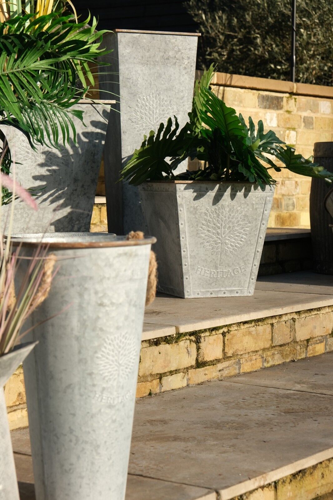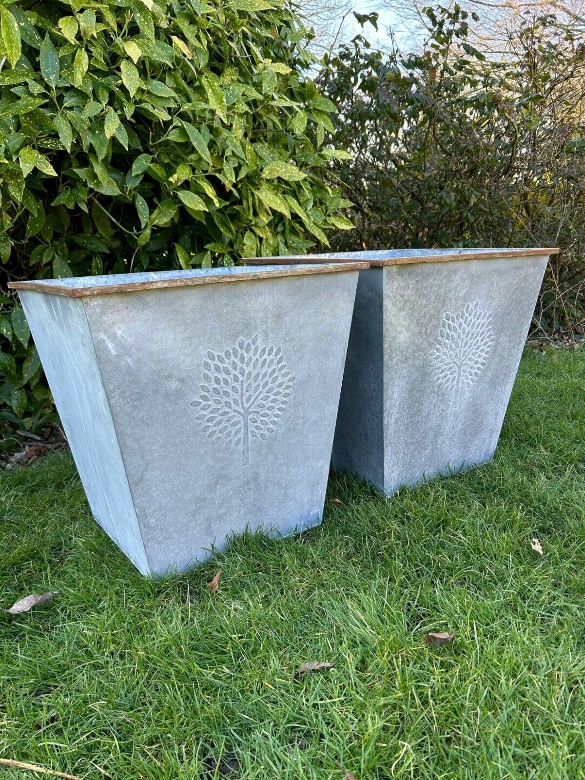 Large Zinc Square Vase Garden Plants Trees Tall Planter