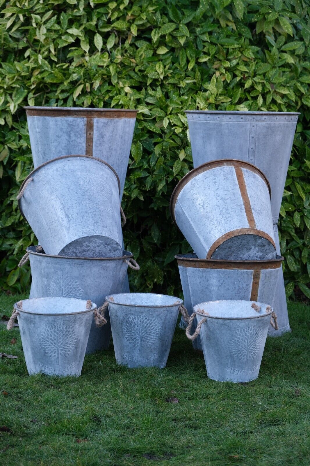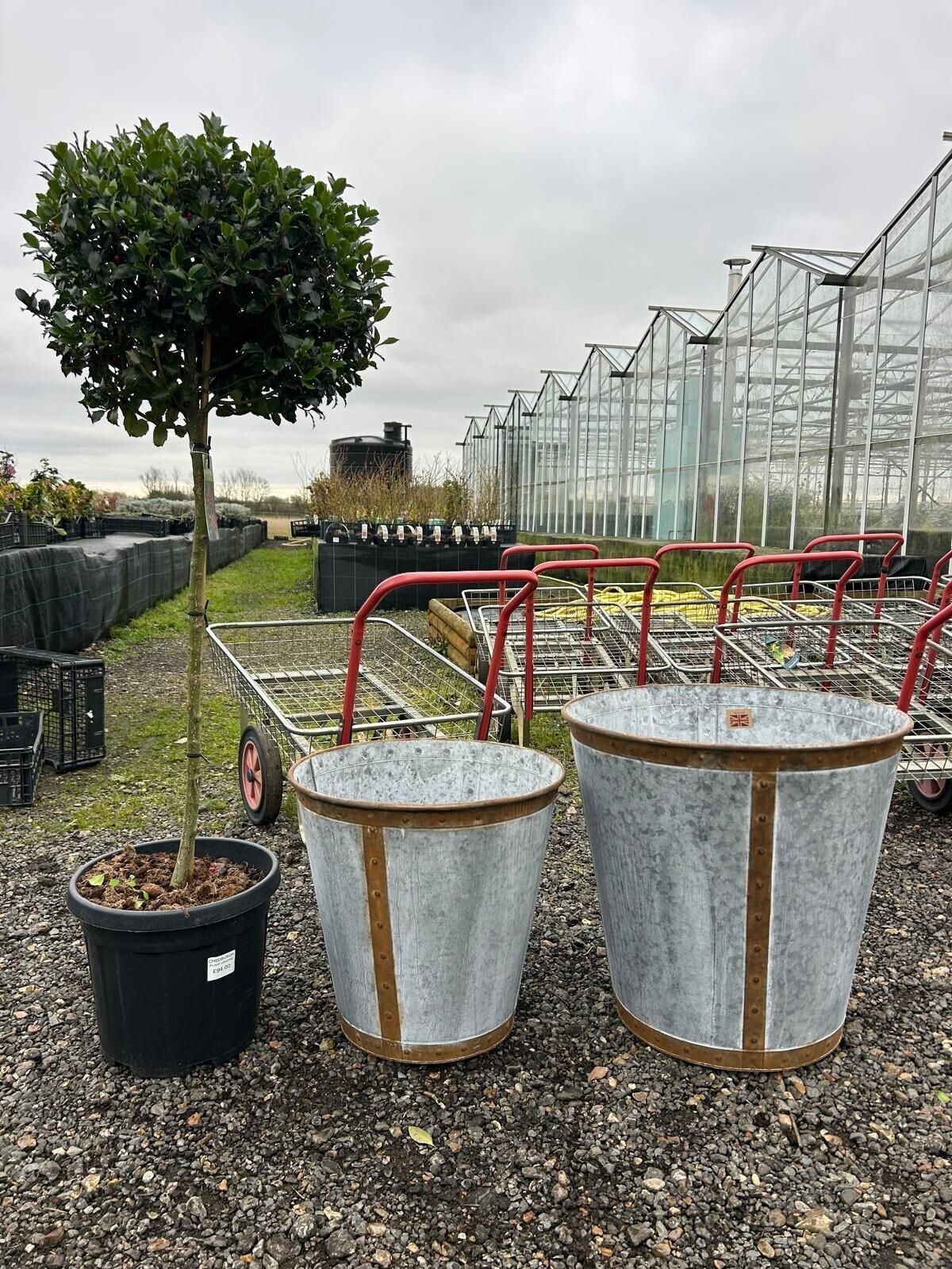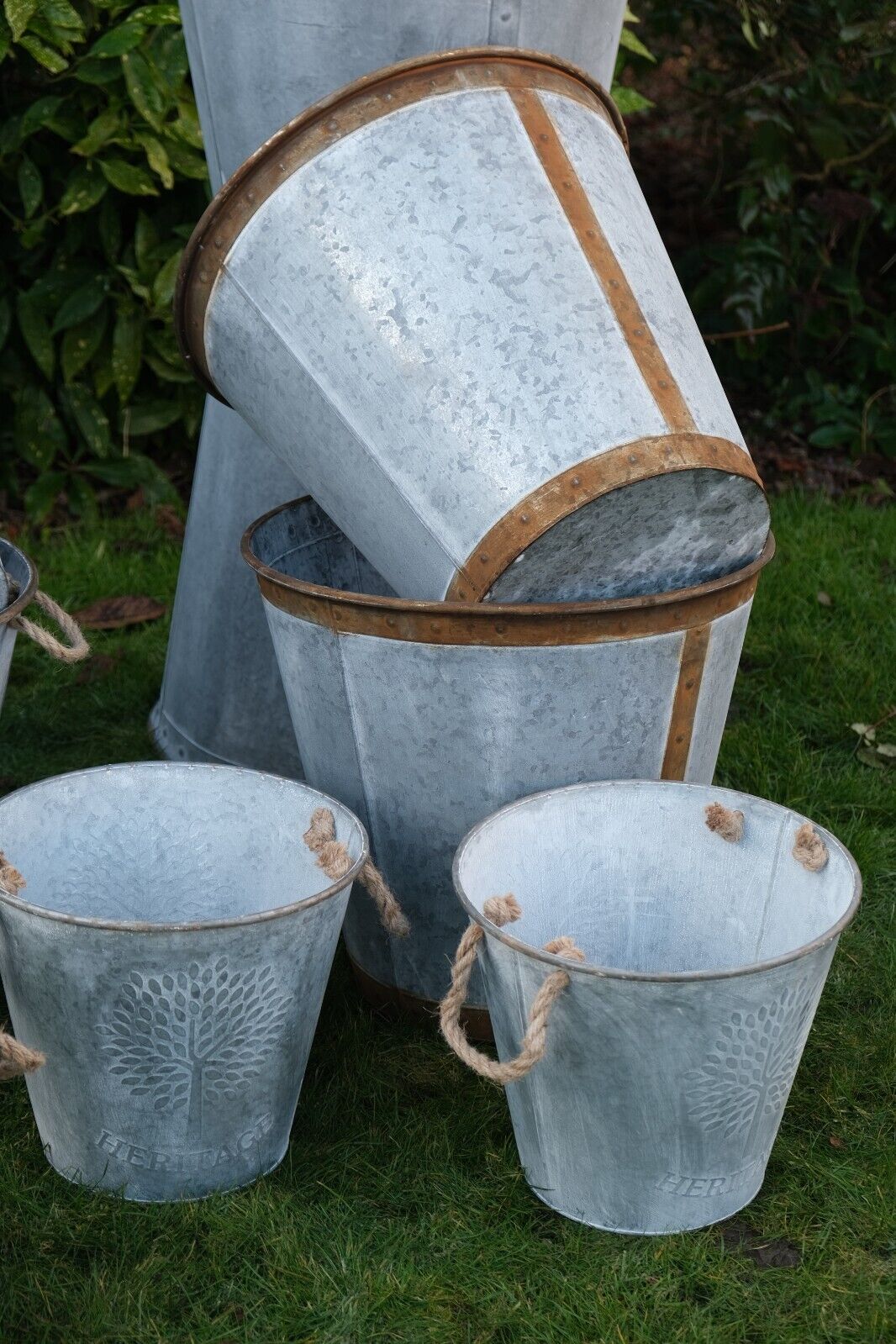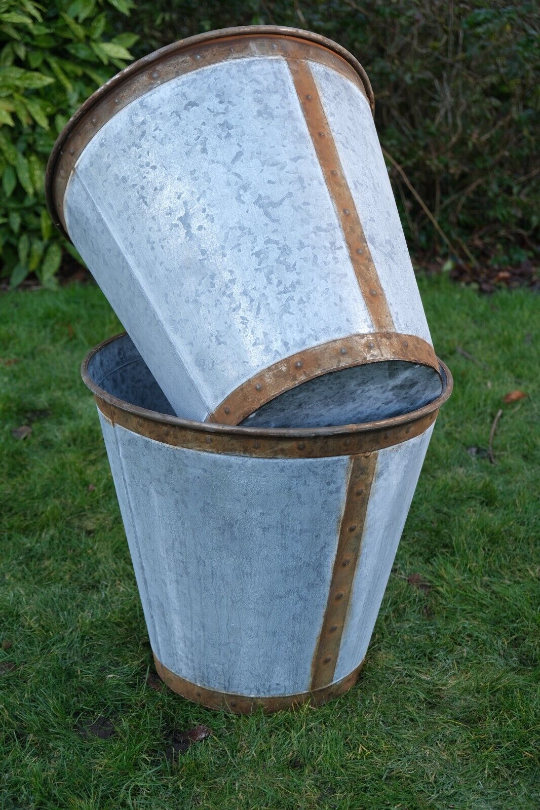 Large Zinc Barrel Galvanised Dolly Tubs Planter Bucket Garden Flowers Set of 2