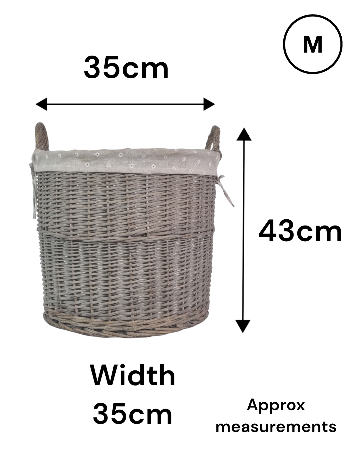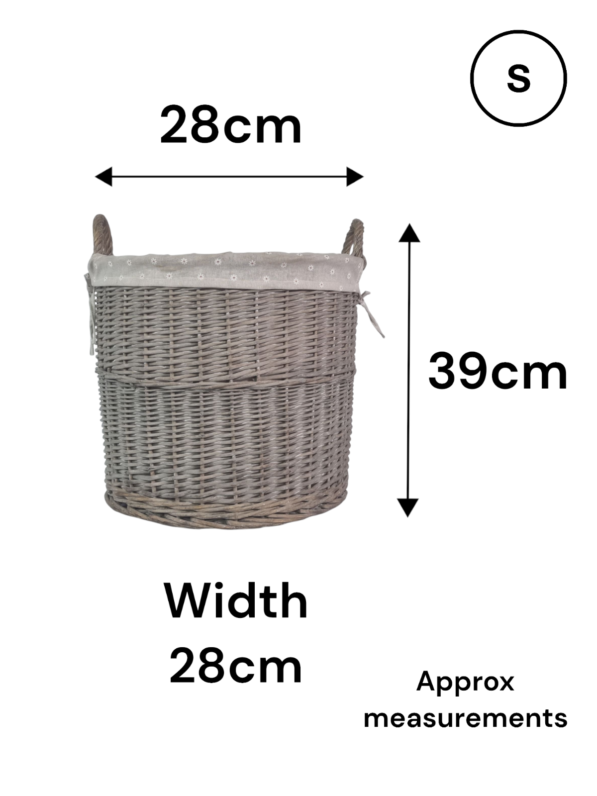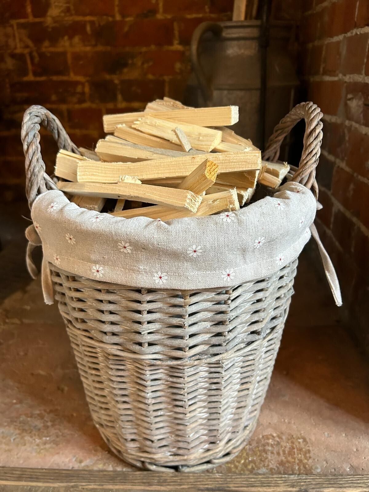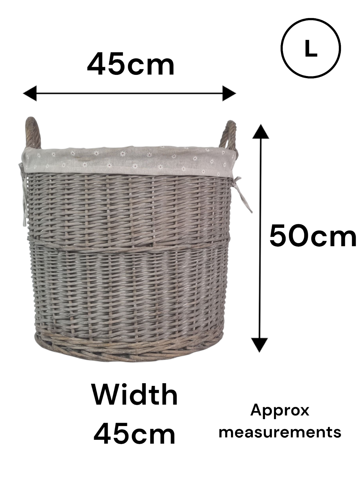 Round Grey-wash Wicker Log Fireside Storage Basket with Daisy Liner