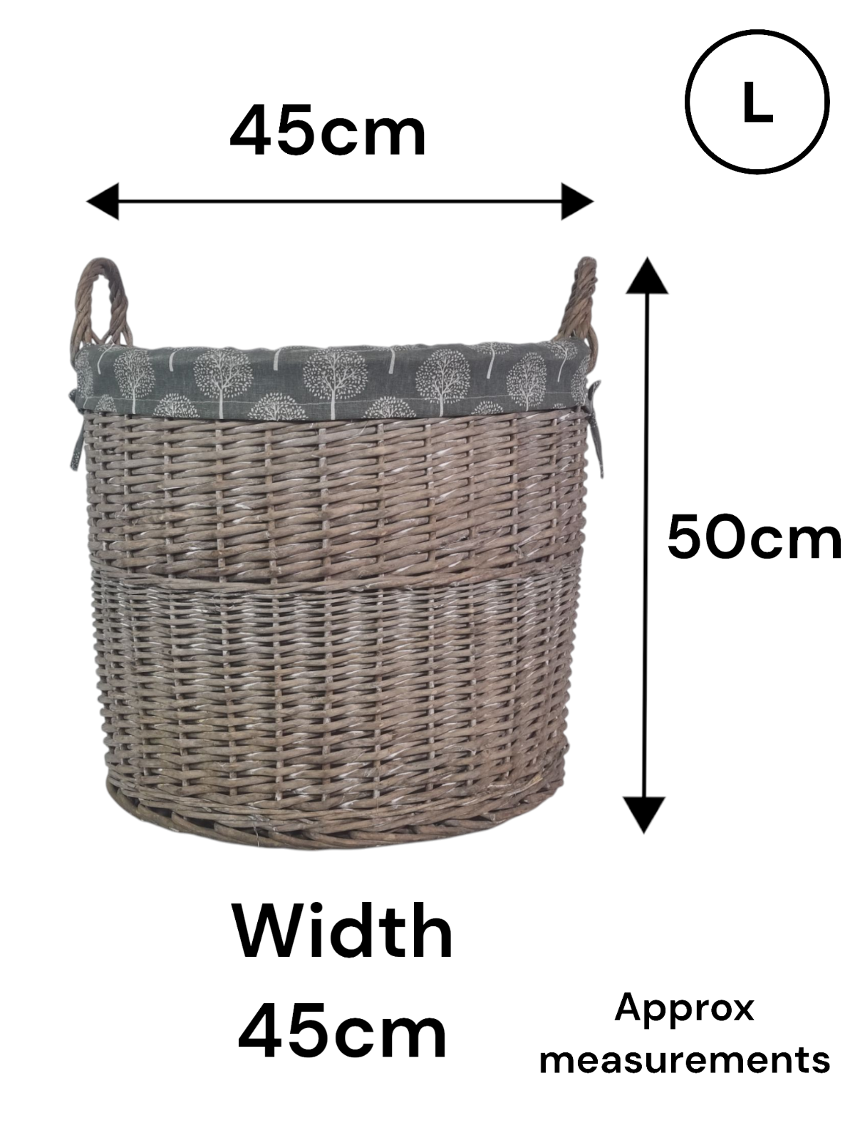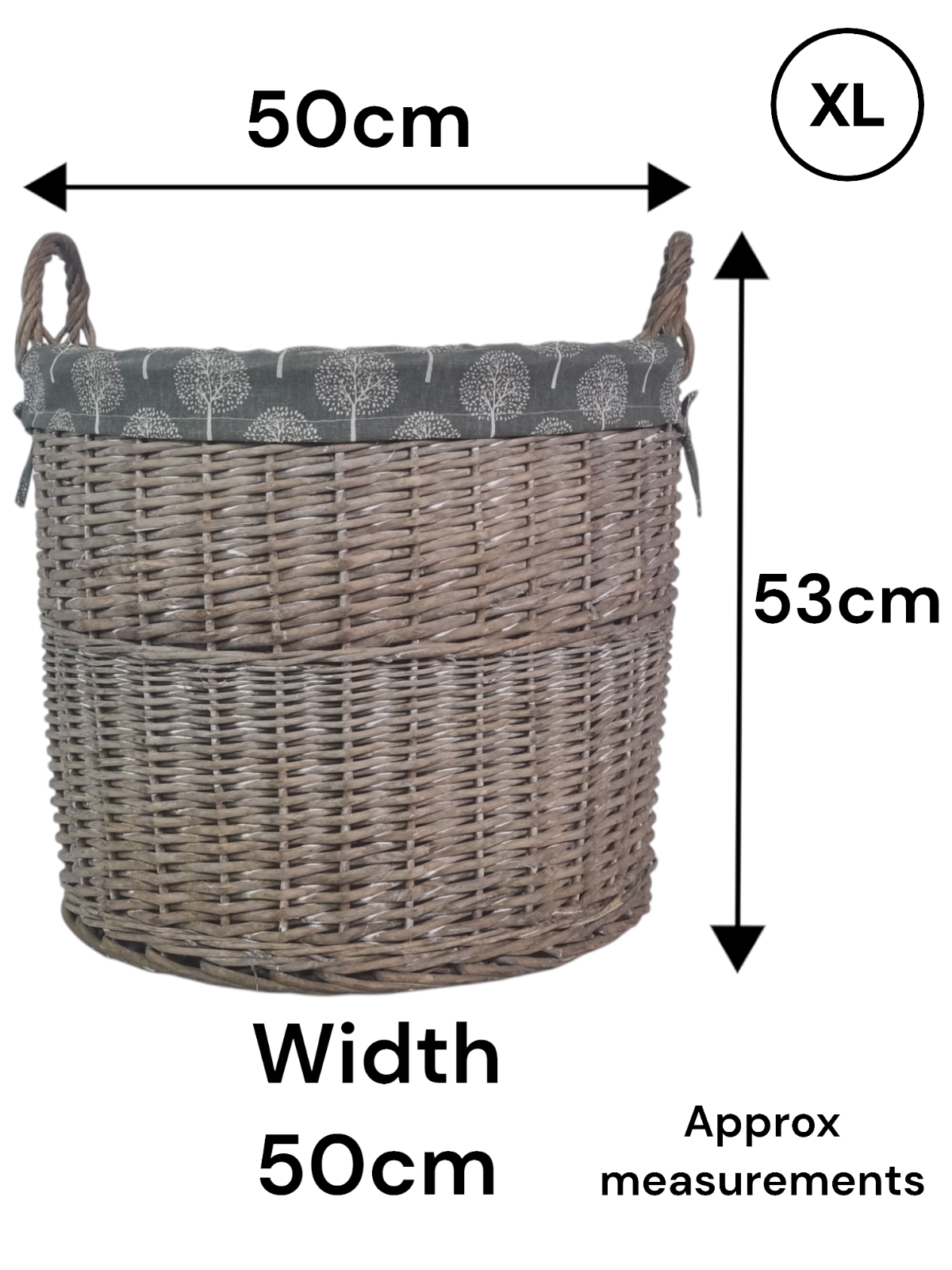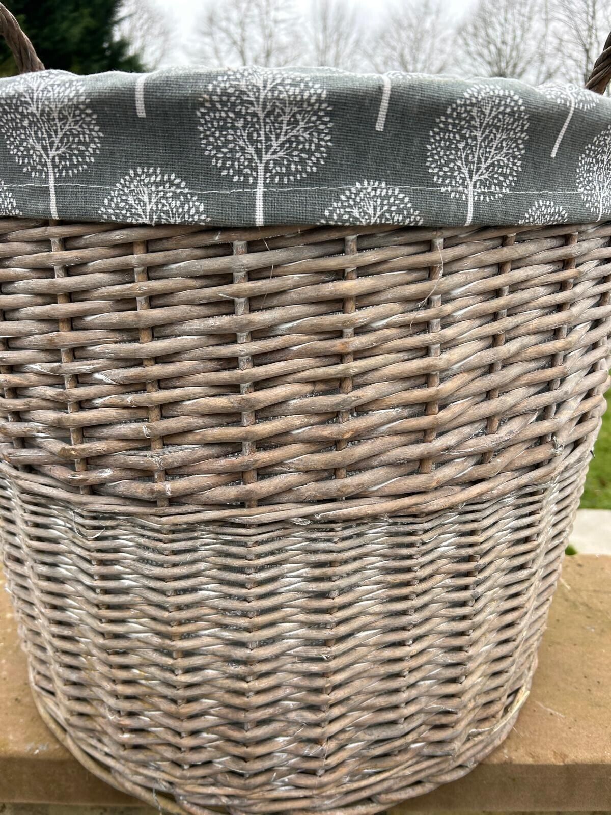 Round Grey-wash Wicker Log Storage Kindling Laundry Basket NO Liner