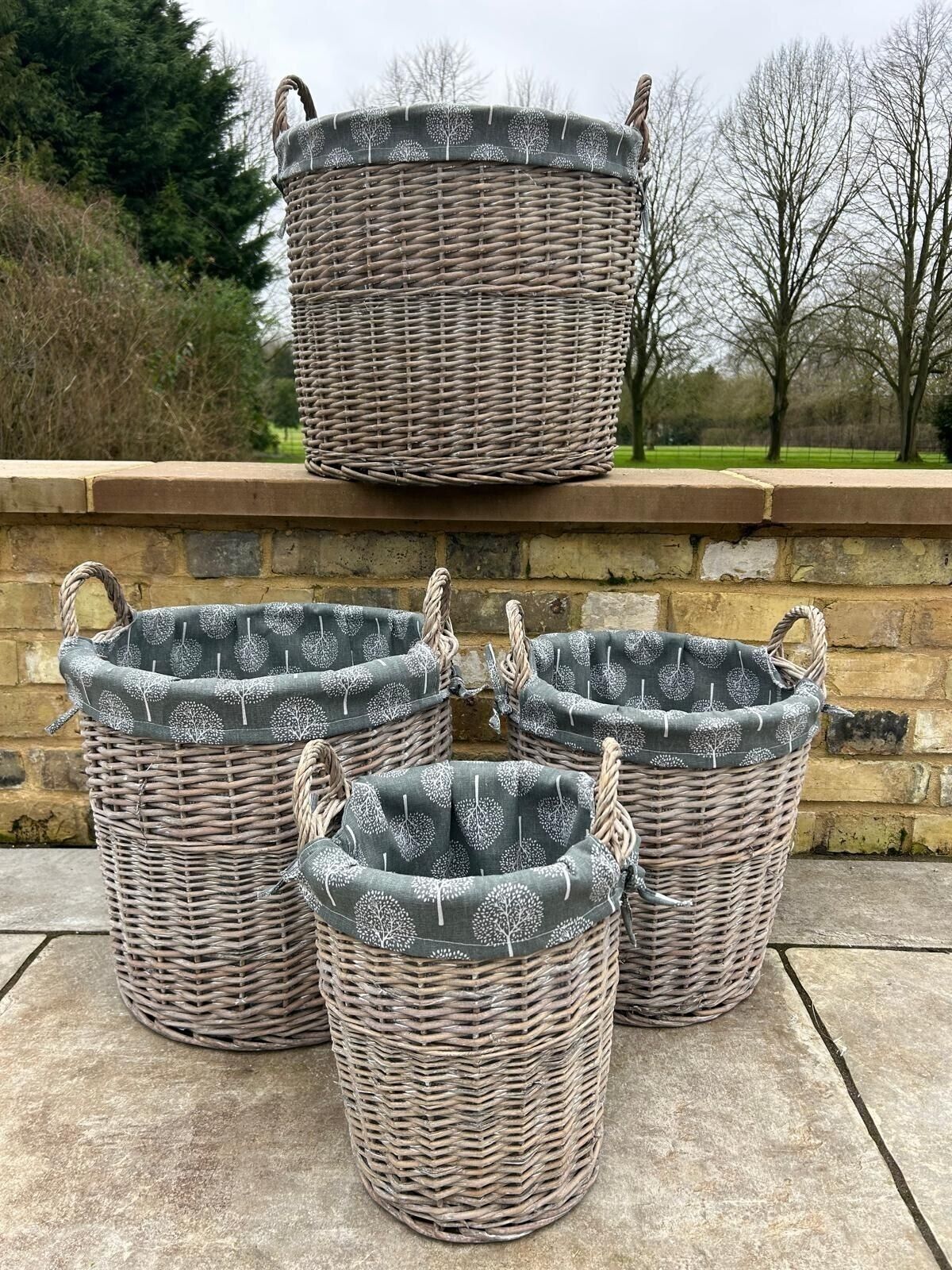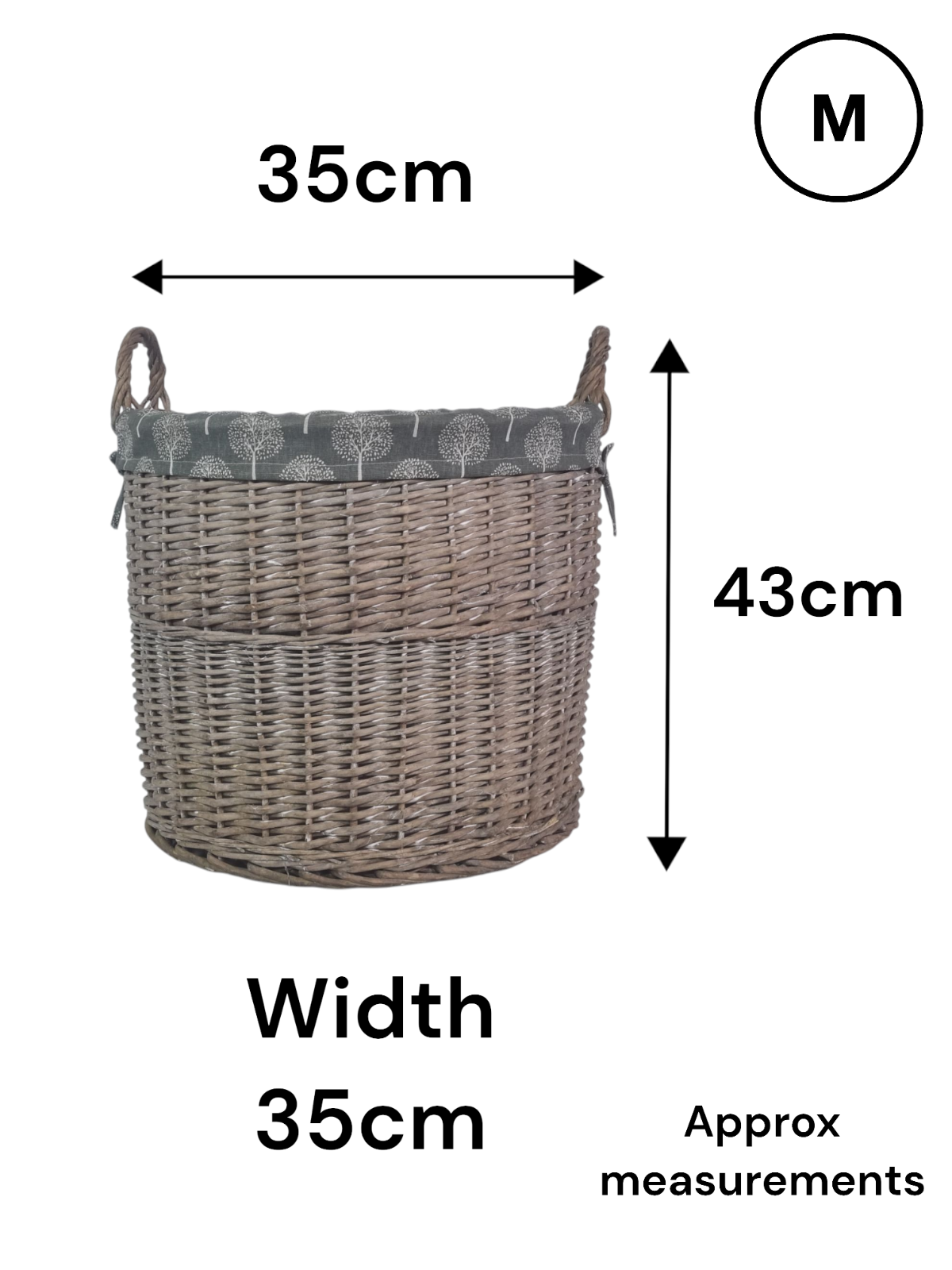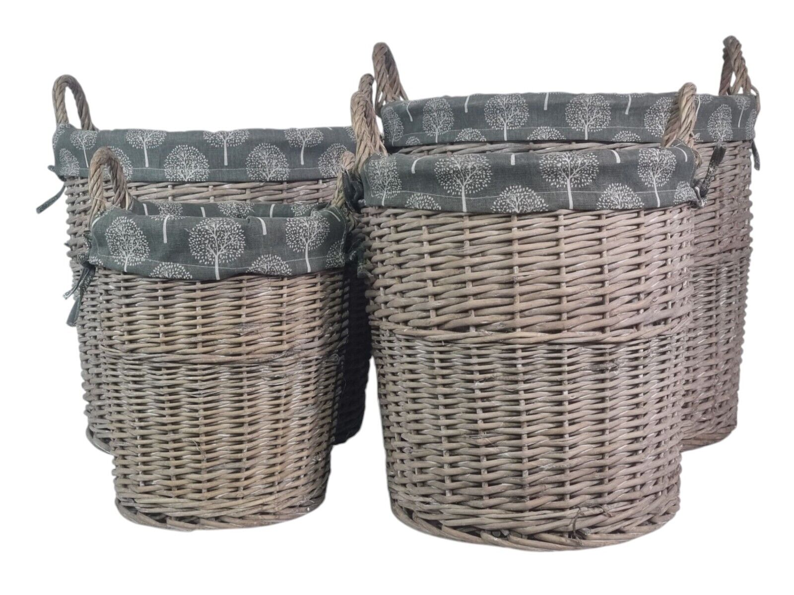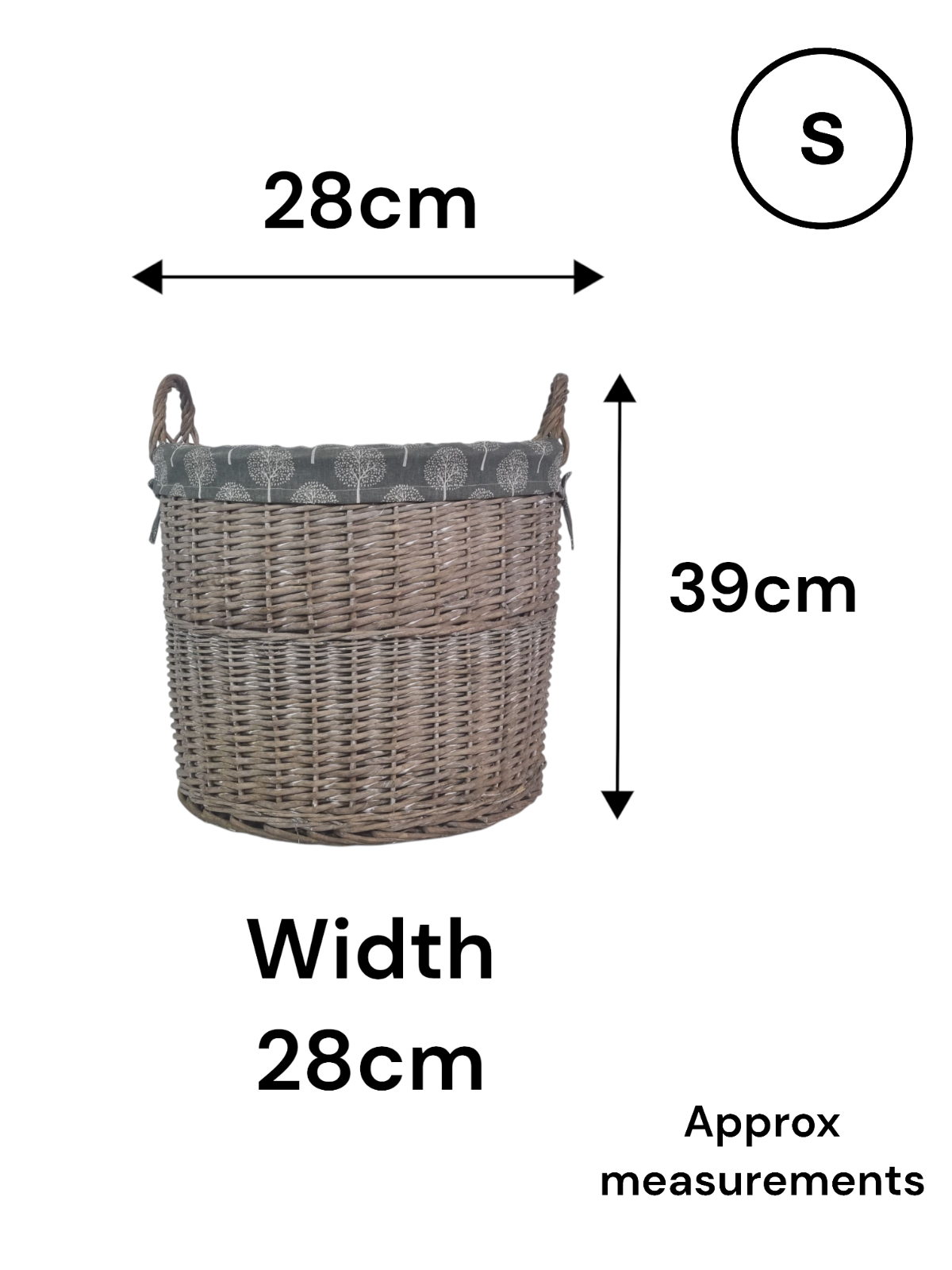 Round Grey-wash Wicker Log Storage Kindling Laundry Basket NO Liner