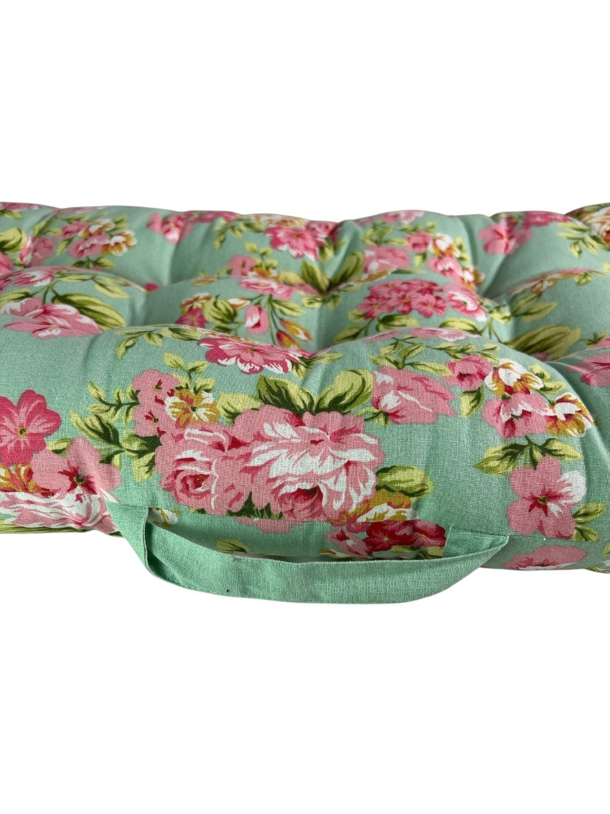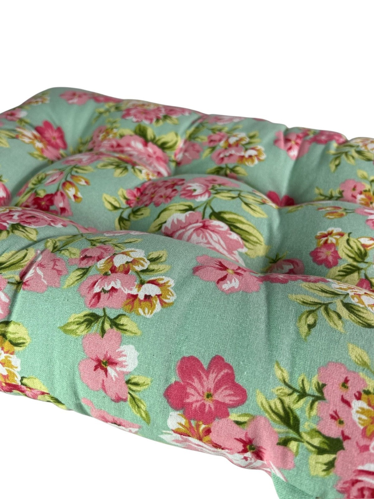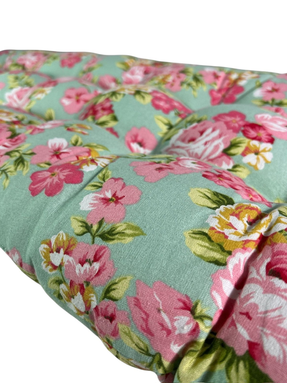 Sage Green Rose Floral Seat Pad Set of 2 or 4 Kitchen Chair Cushion Tie On 37cm