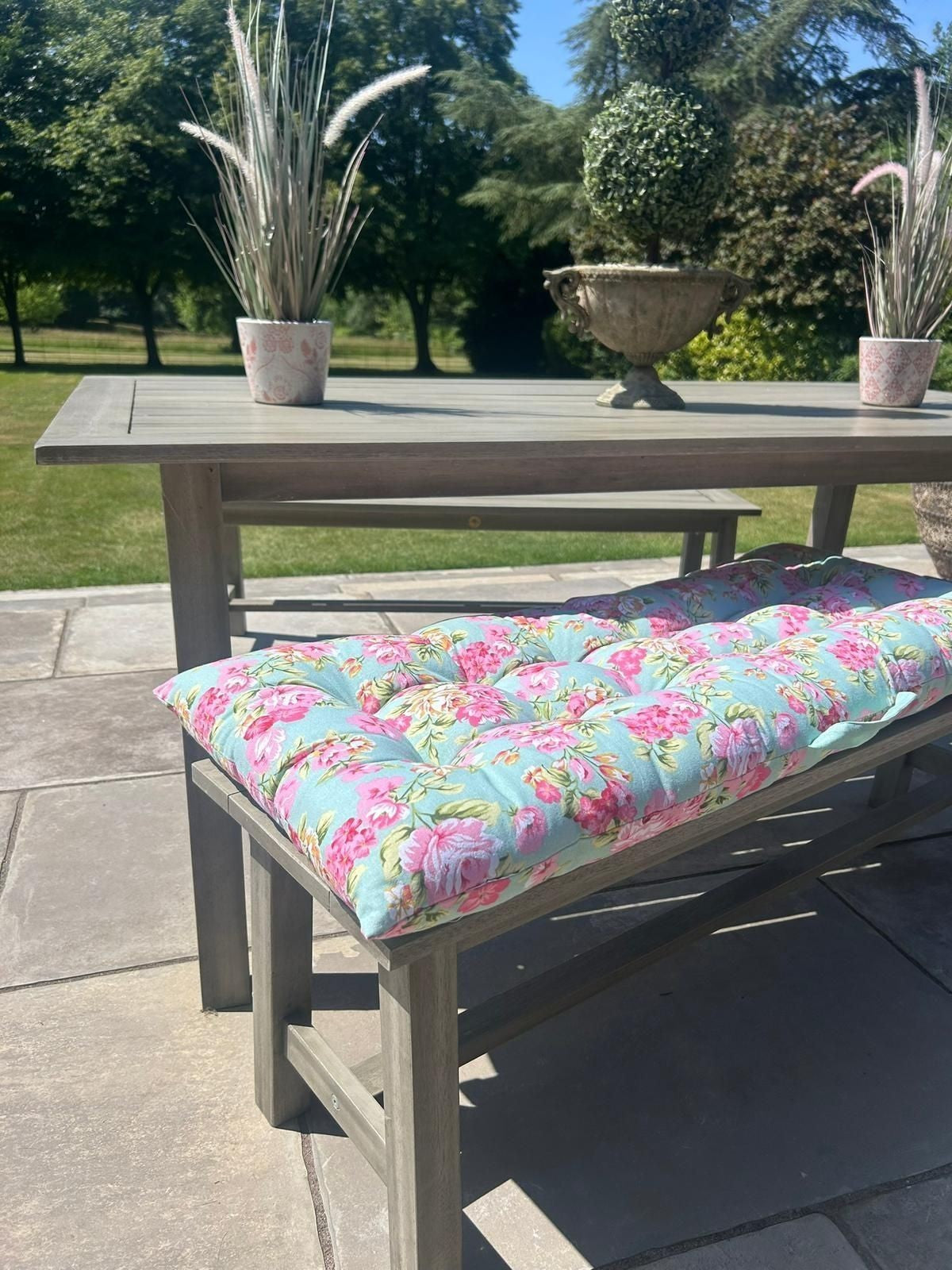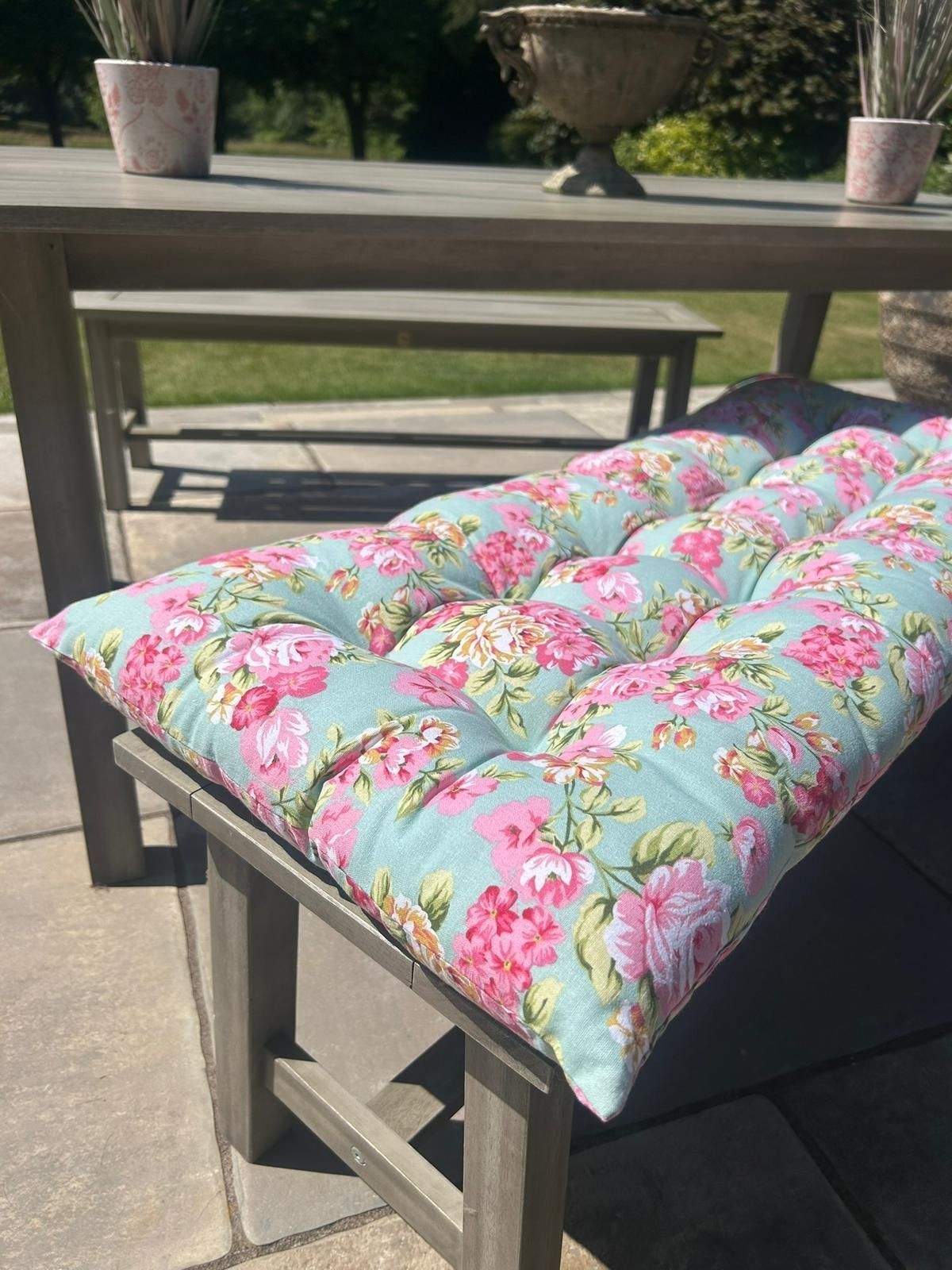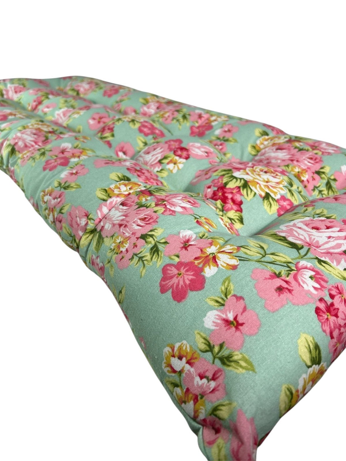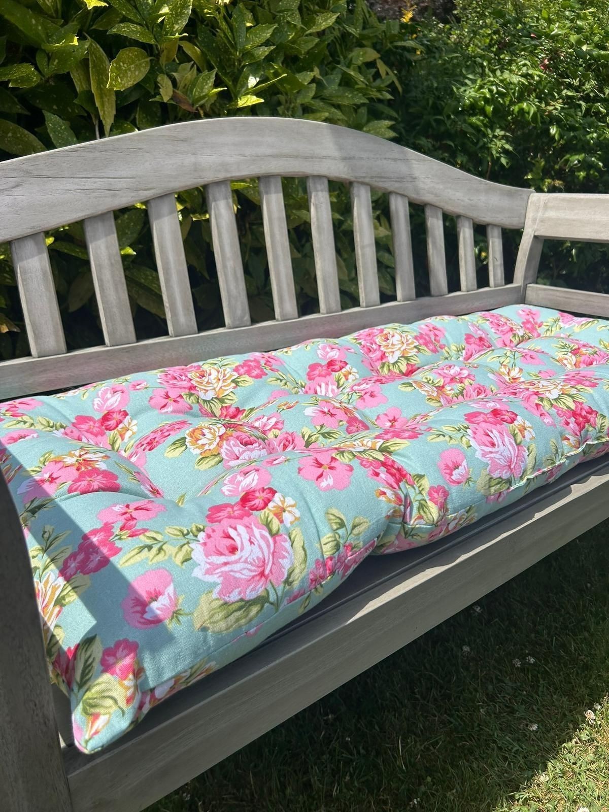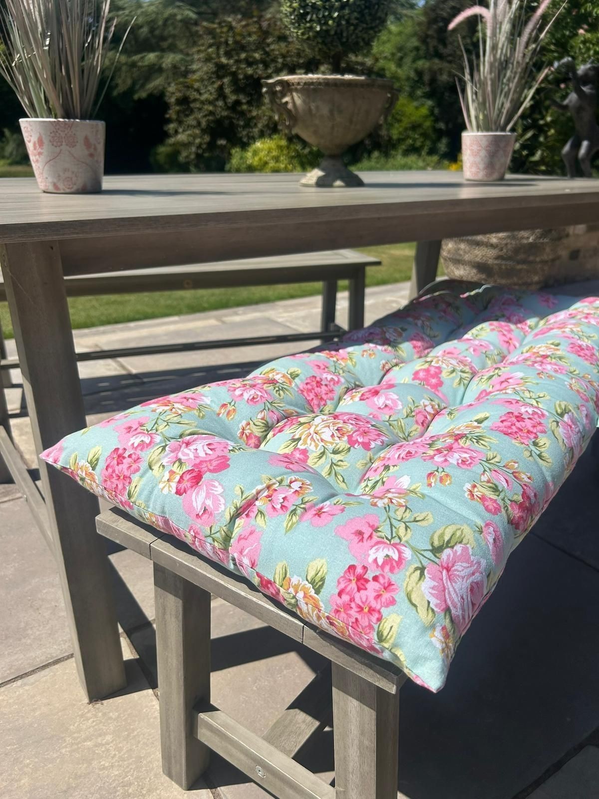 Sage Rose Bench Seat Pad Green Cushion Garden Outdoor Decor 110cm x 50cm