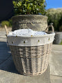 Large Grey-wash Wicker Hessian Lined Log Home Tidy Washing Linen Storage Basket
