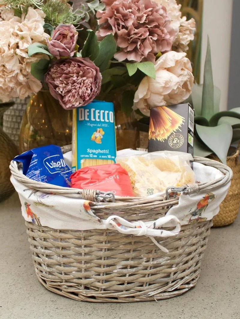 Grey Wicker Shopper Shopping Basket with Mulberry Tree Liner Storage Farmshop