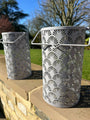 2 Grey Solar Lantern Light Decorative Hanging Freestanding Outdoor Garden Decor