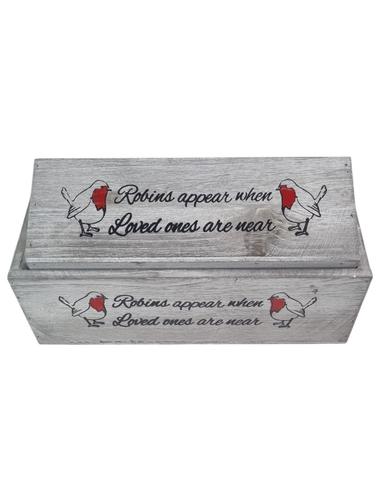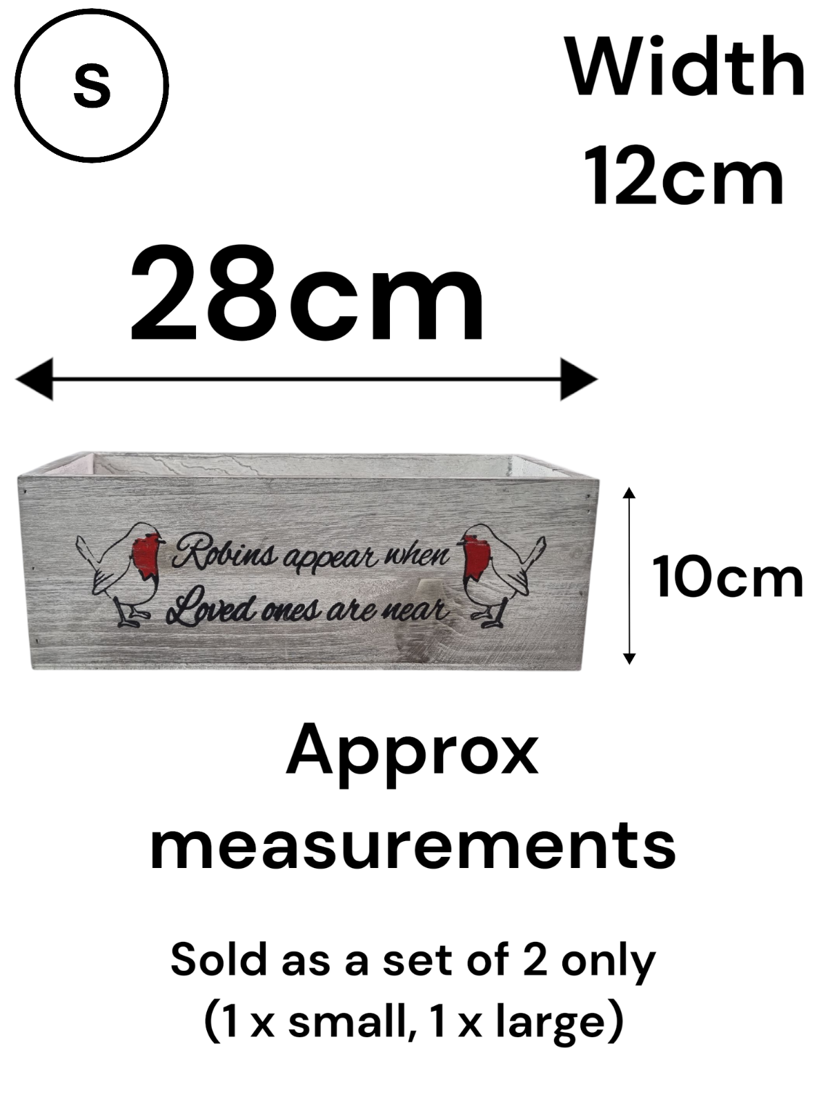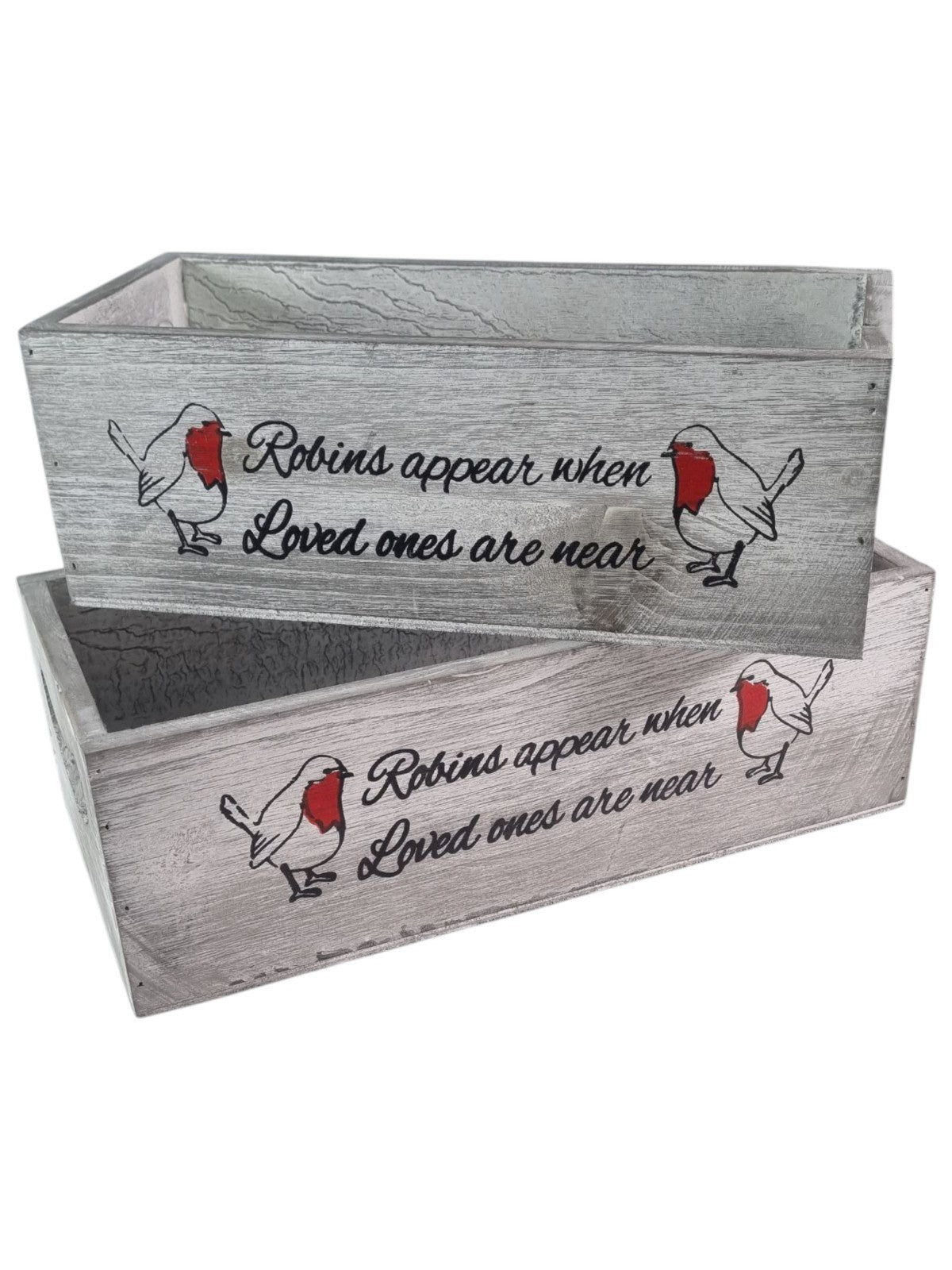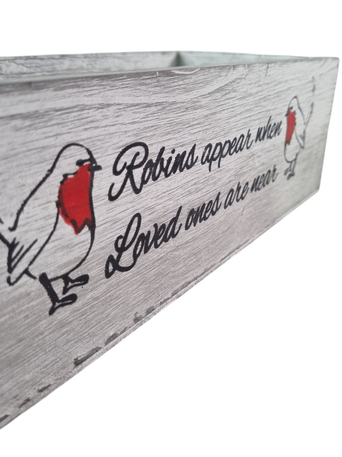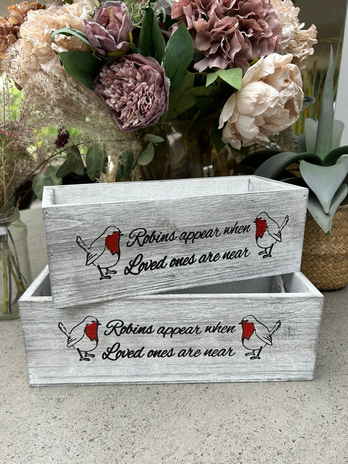 Robins Appear When Loved Ones Are Near Grey Gift Box Storage Wood Crate 2 Sizes