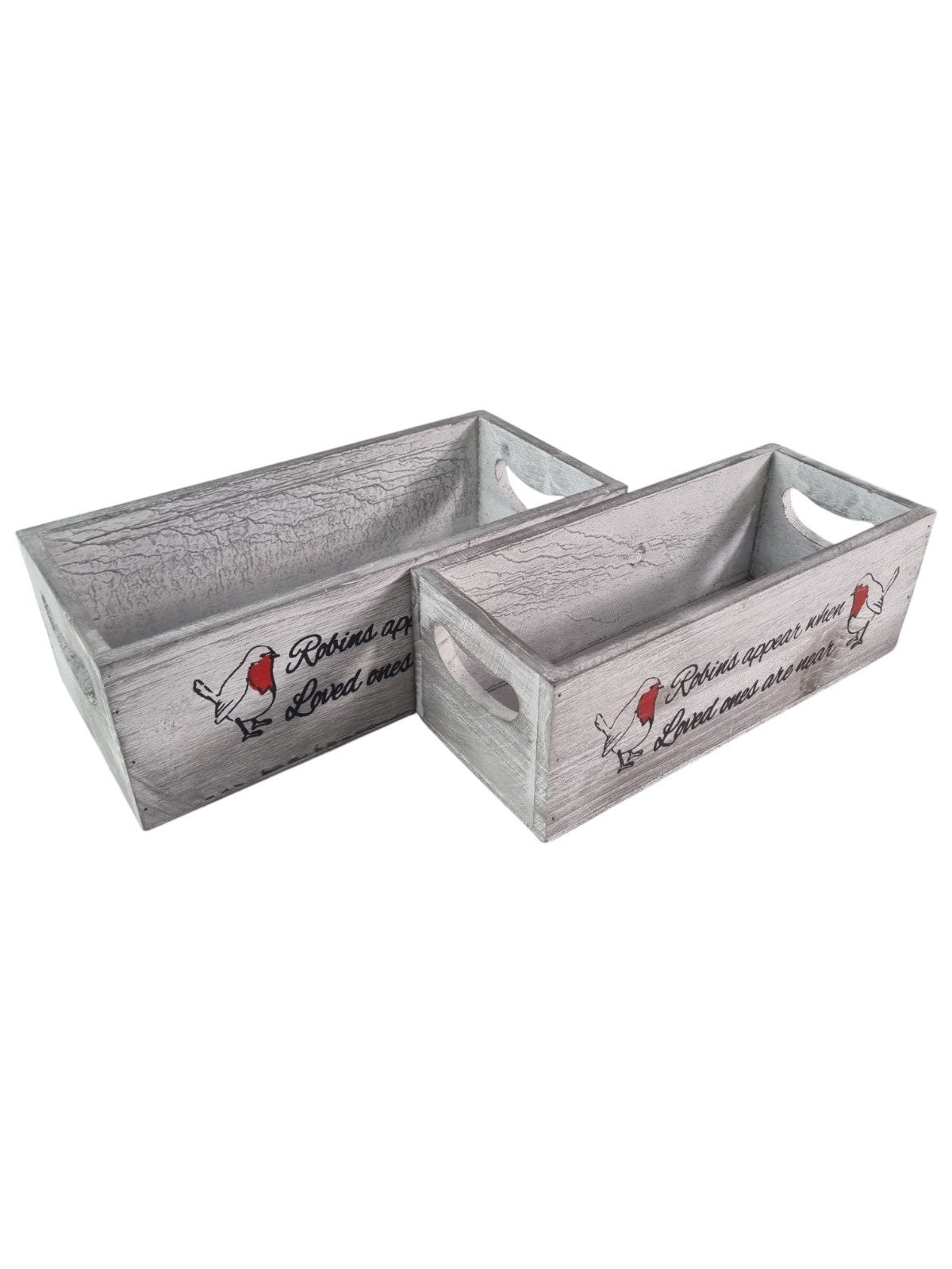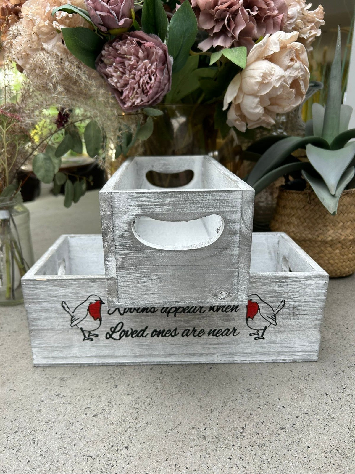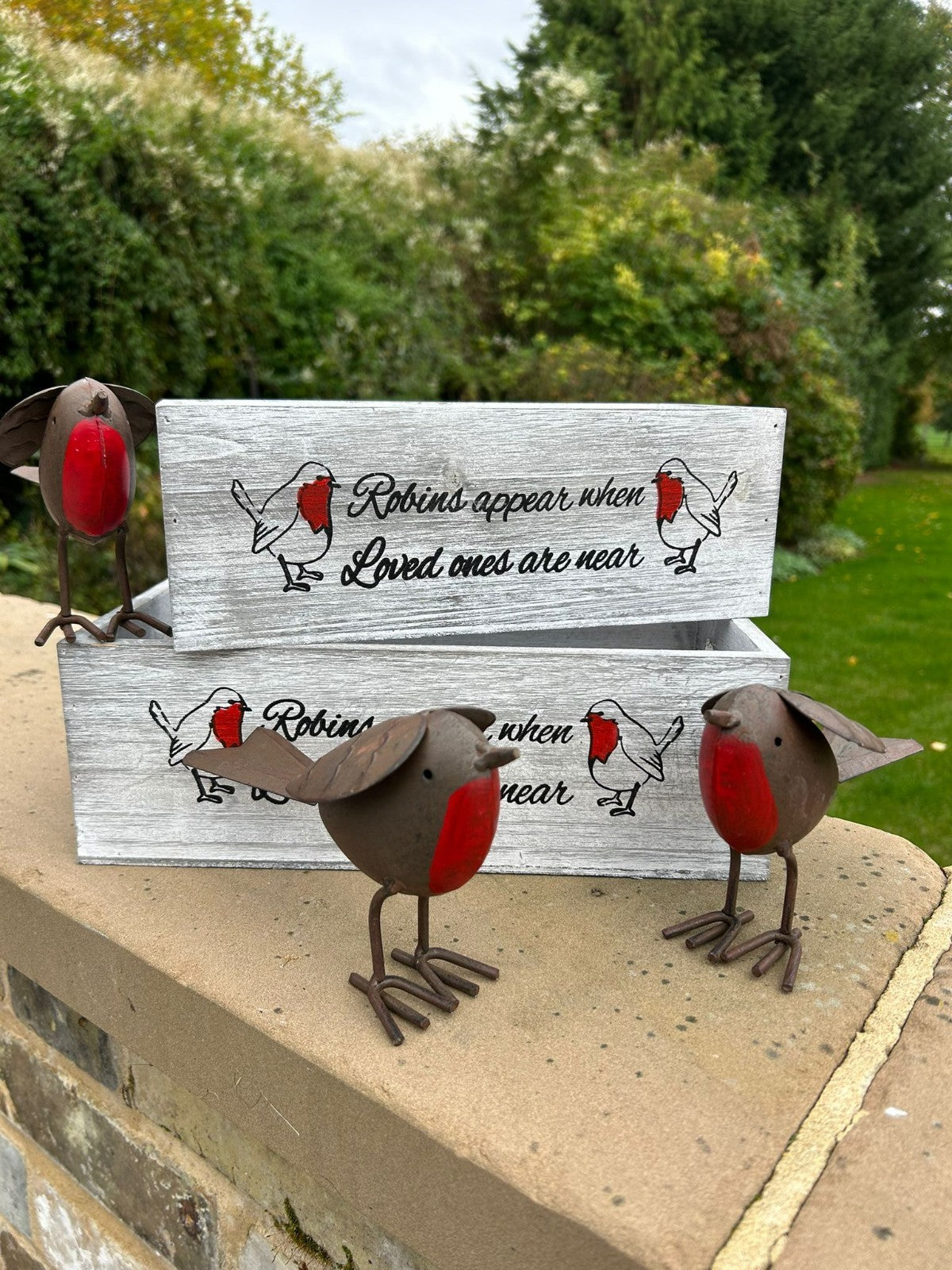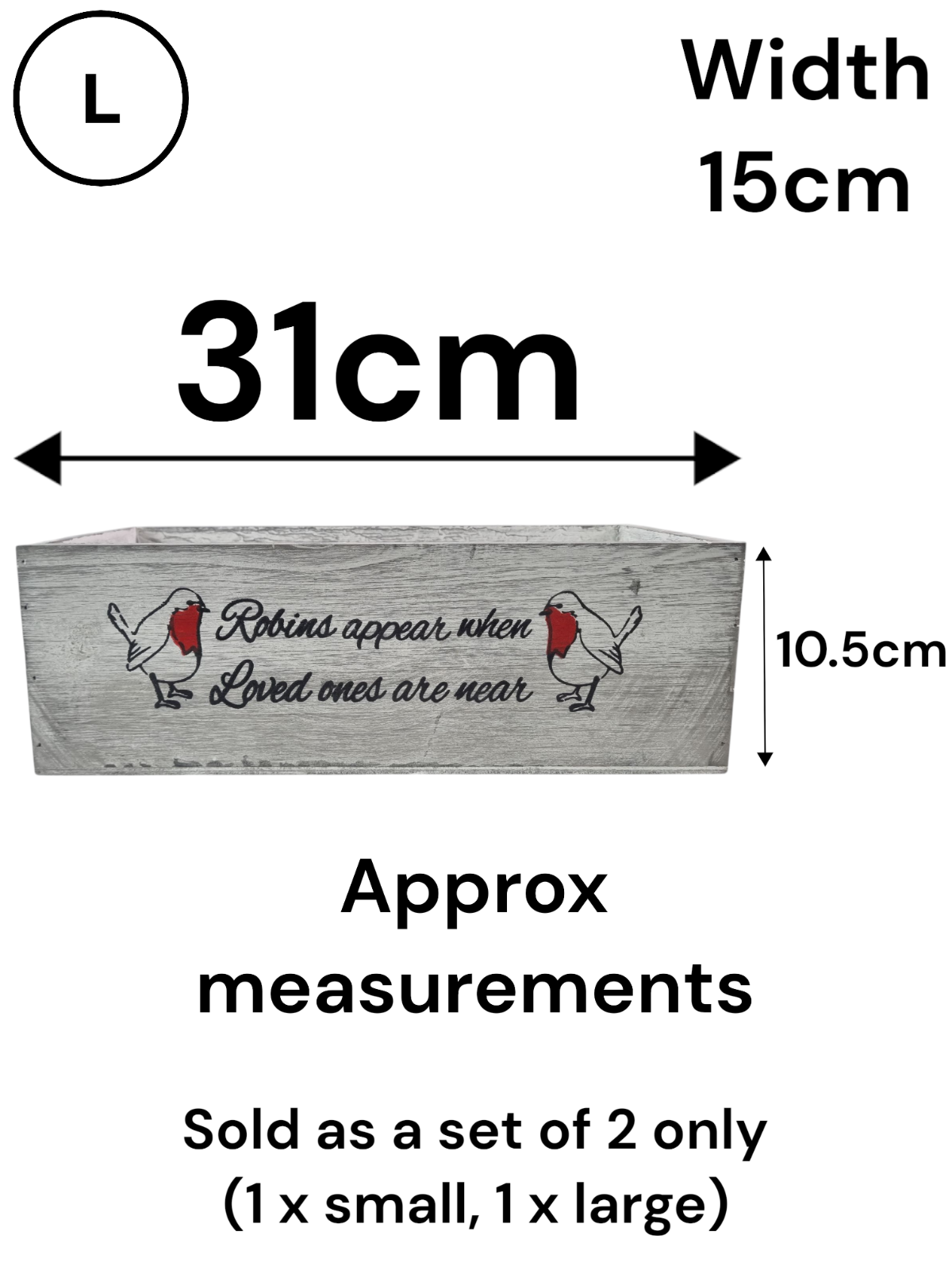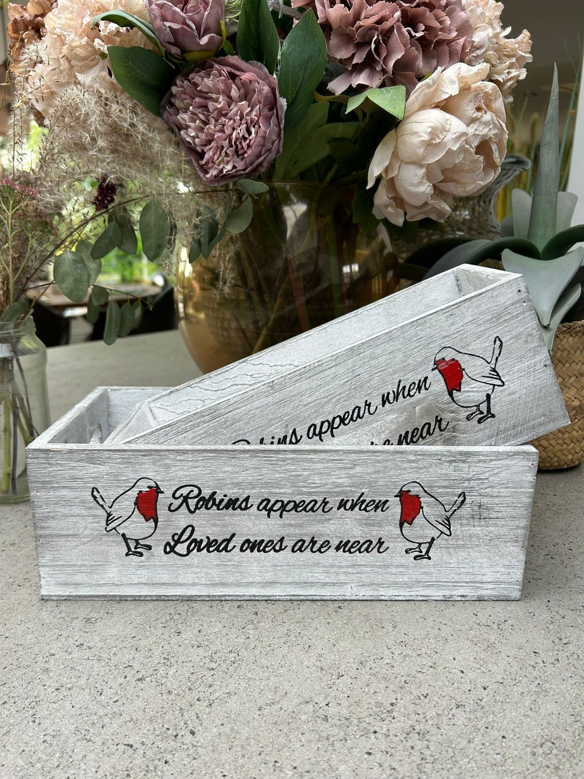 Robins Appear When Loved Ones Are Near Grey Gift Box Storage Wood Crate 2 Sizes