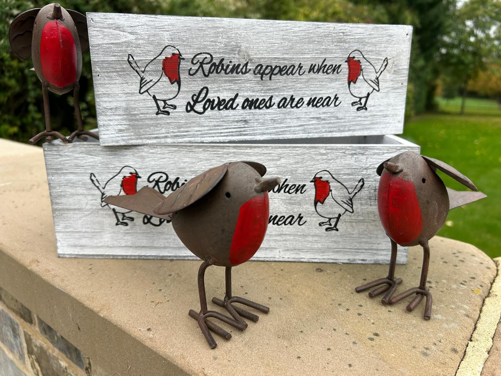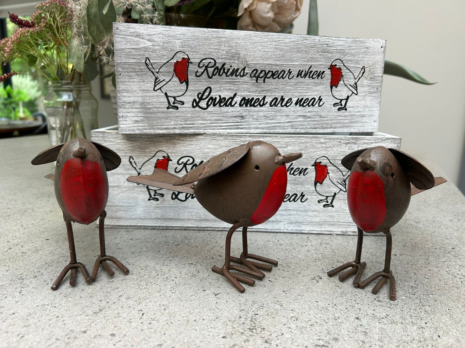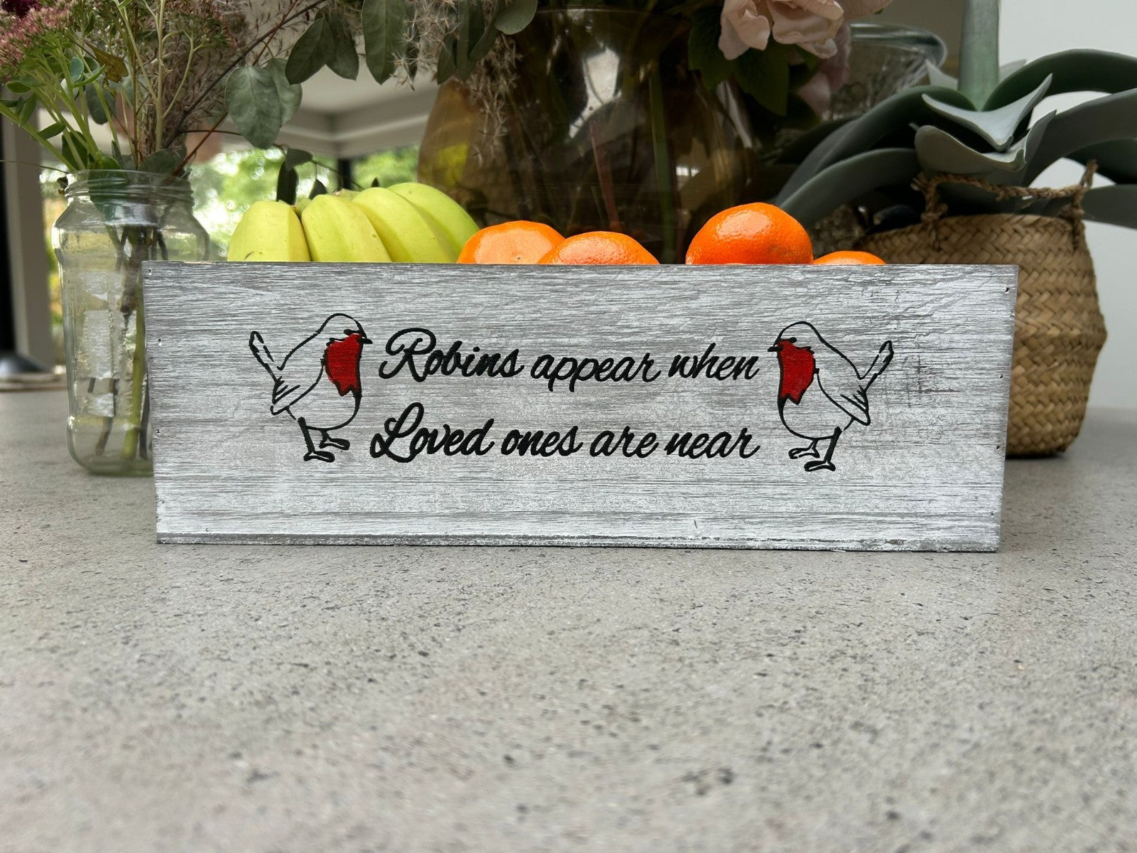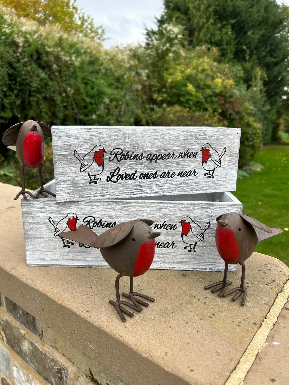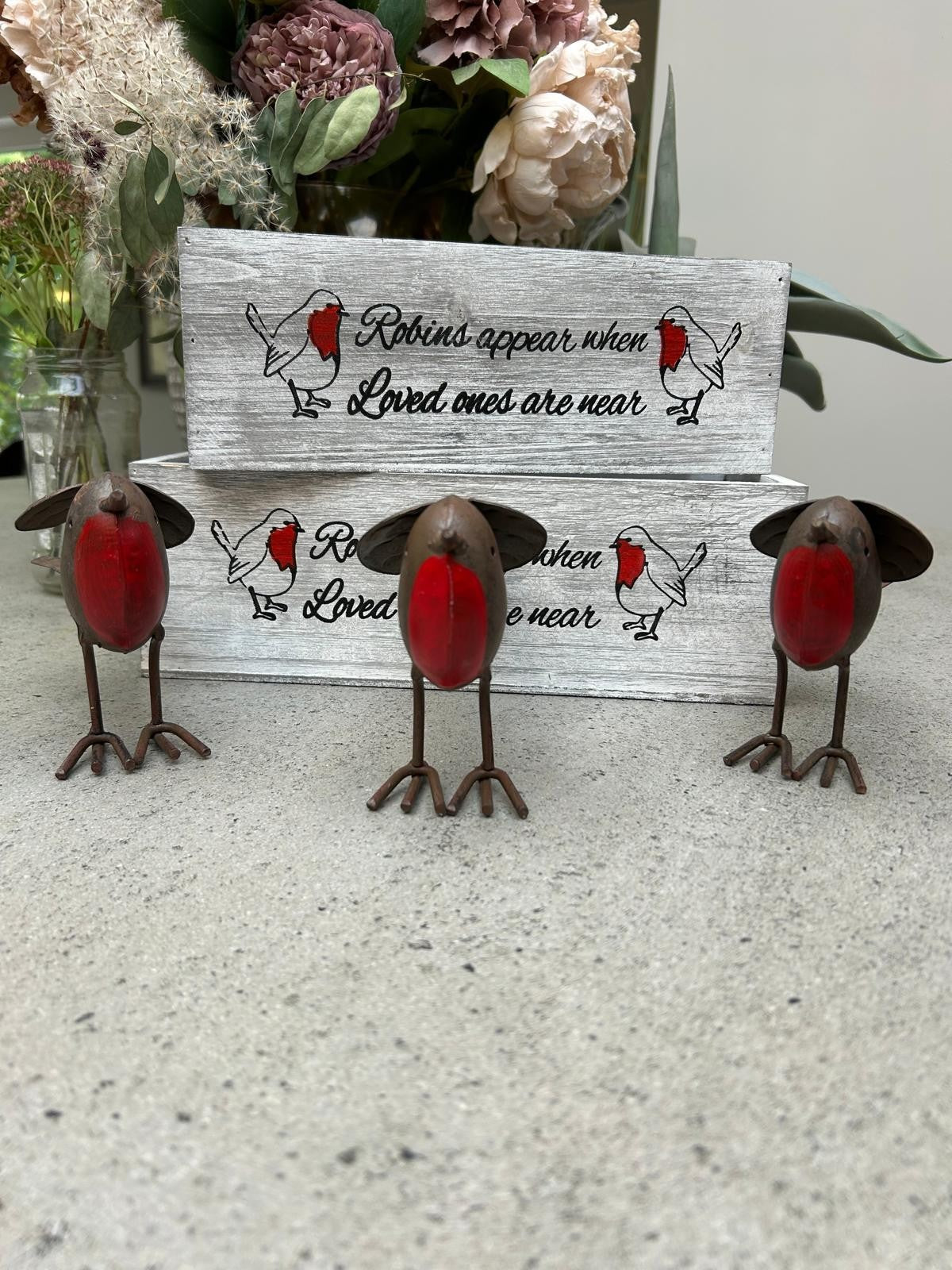 Robins Appear When Loved Ones Are Near Grey Gift Box Storage Wood Crate 2 Sizes