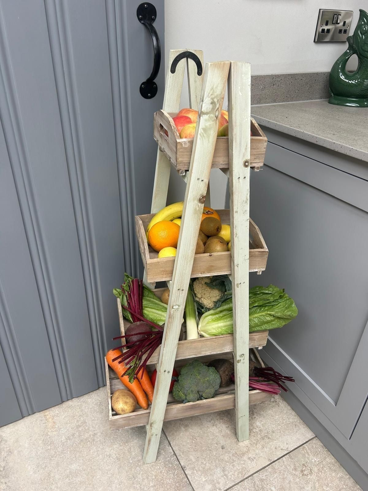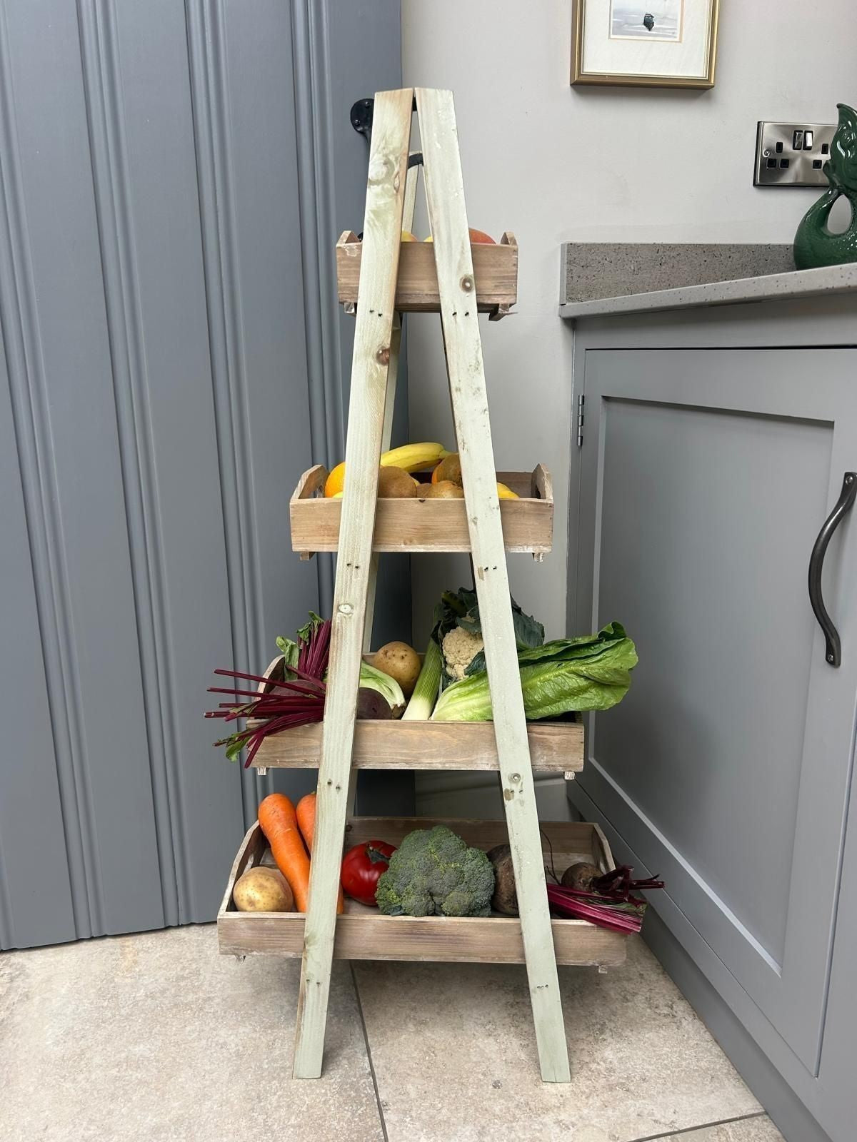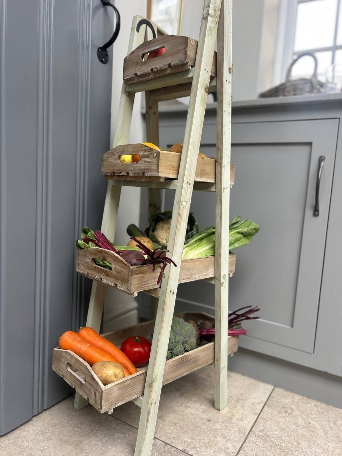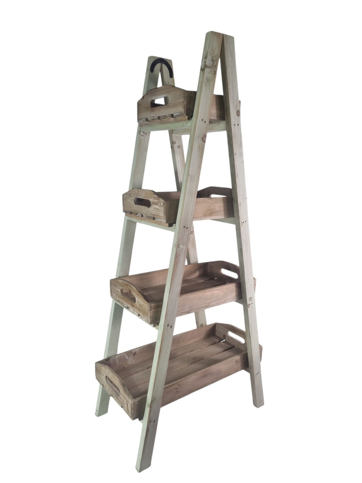 Wooden 4 Tier Vegetable Plant Storage Rack Sage Green Brown Rustic Shop Display