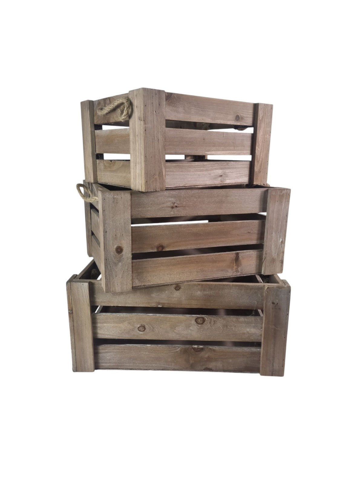 Set Of 3 Grey Wash Heritage Mulberry Tree Storage Nesting Crates Kitchen Home