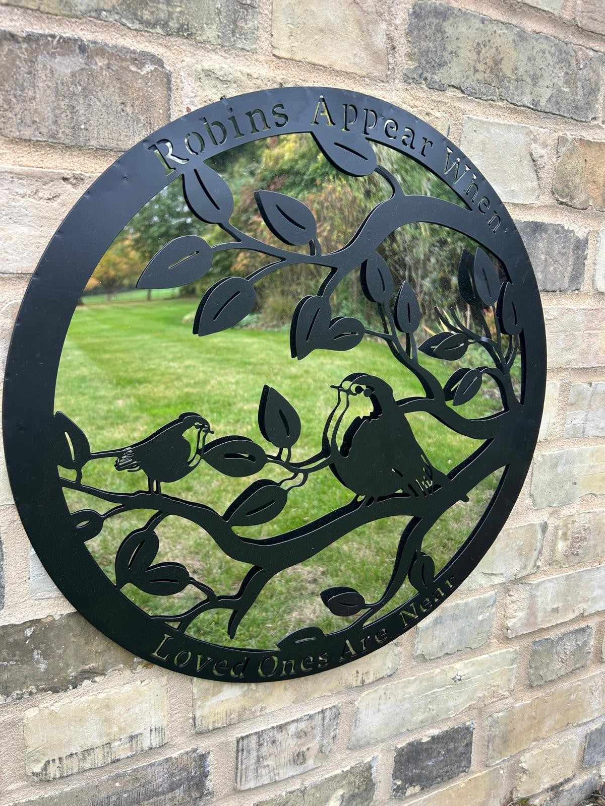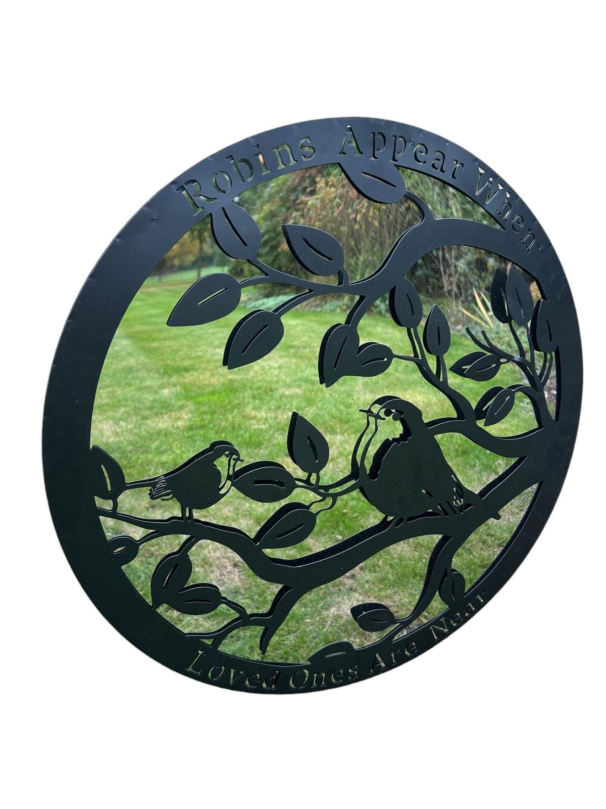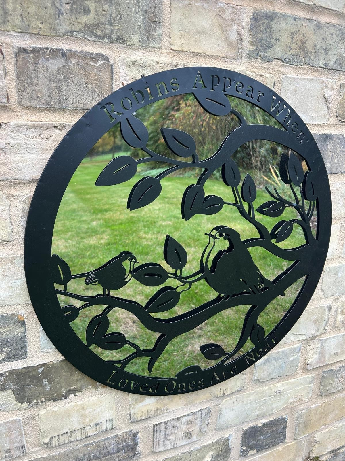 50cm Wall Art Mirror Black Robins Appear When Loved Ones Are Near Garden Home