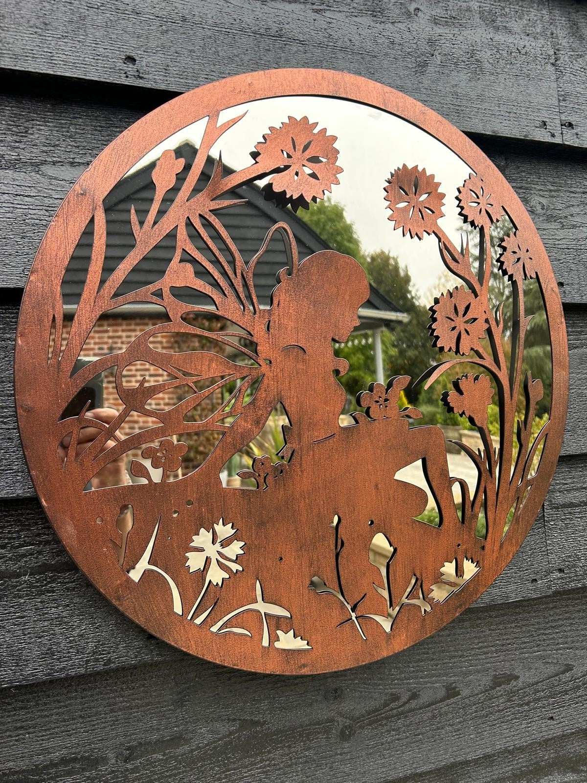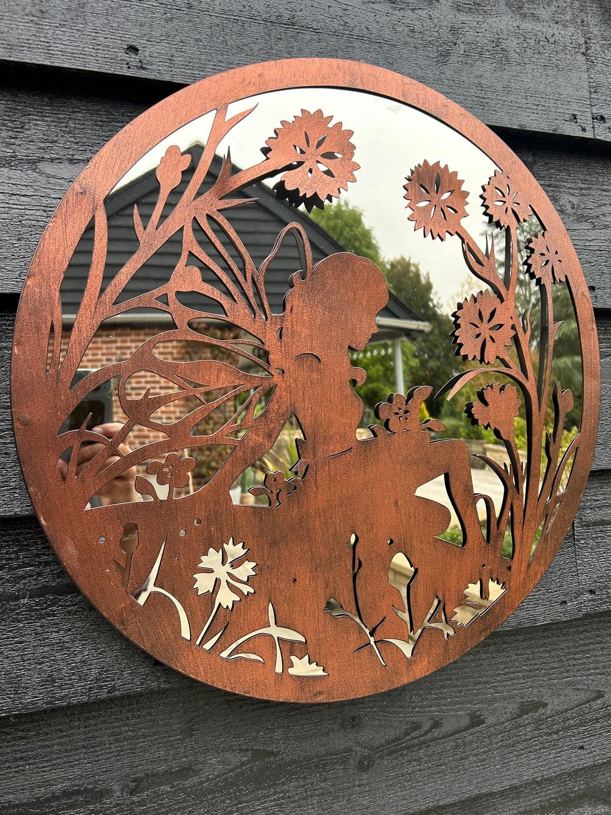 50cm Wall Art Mirror Bronze Fairy Fairies Garden Home