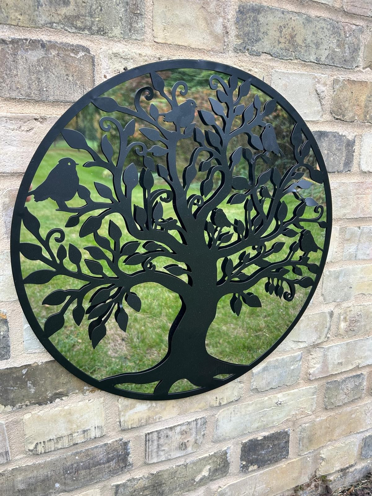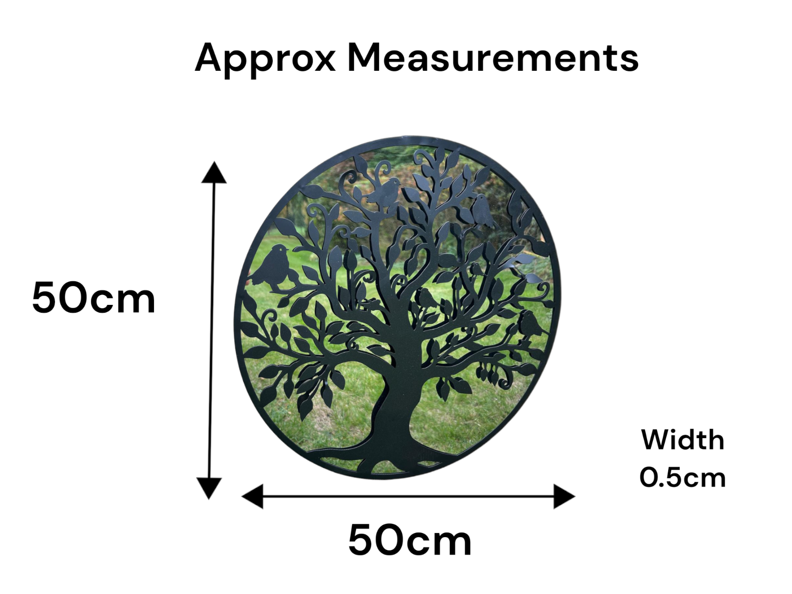 50cm Mirrored Black Wall Art Birds In Tree Mirror Garden Home Gift Nature Decor