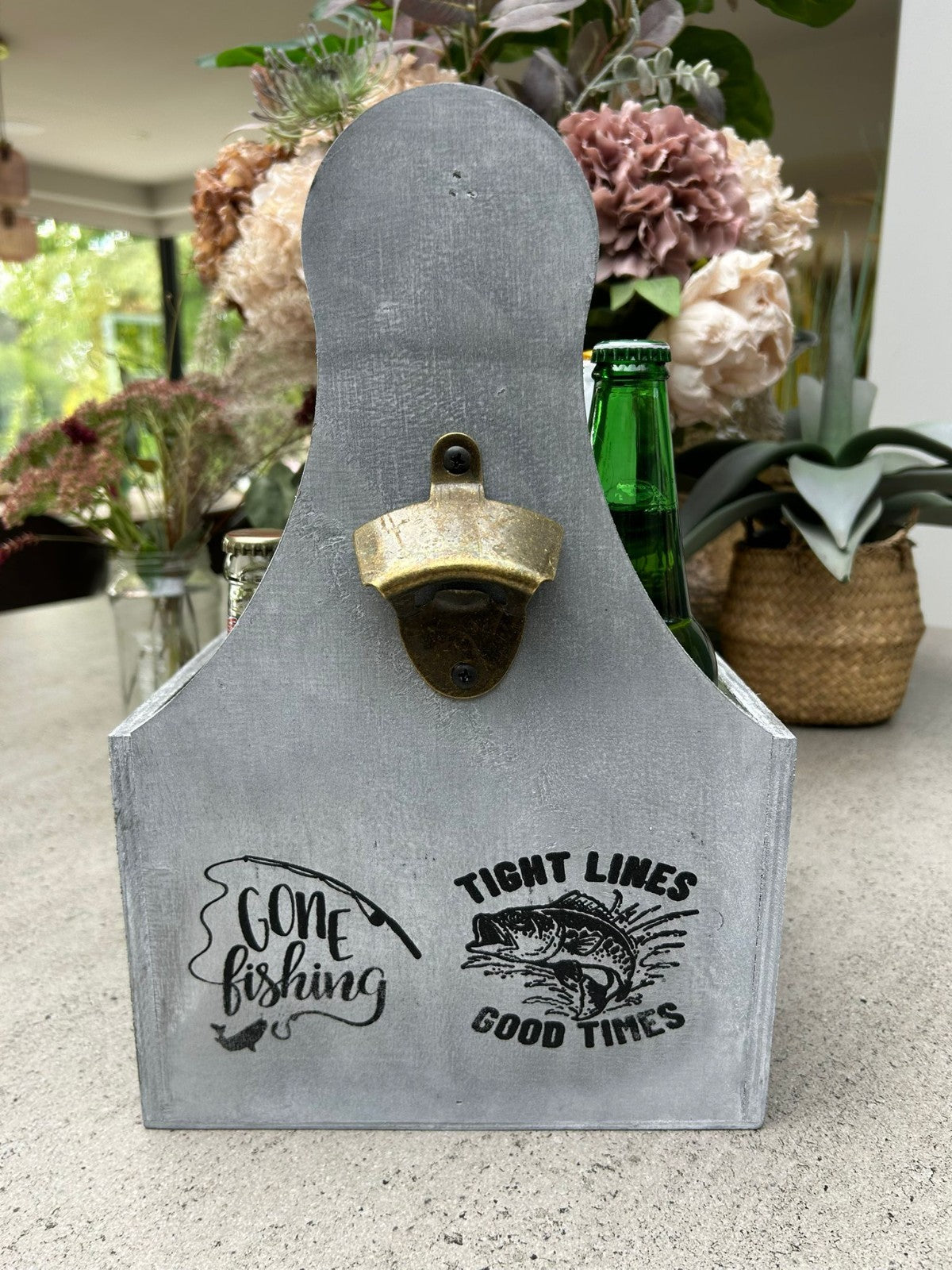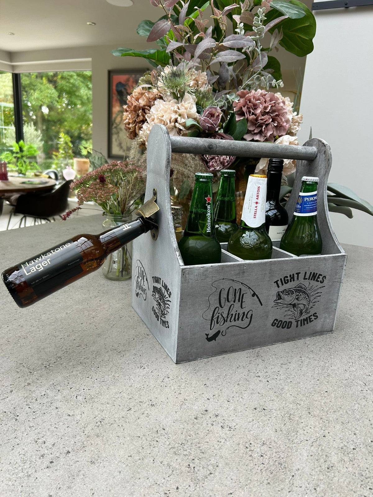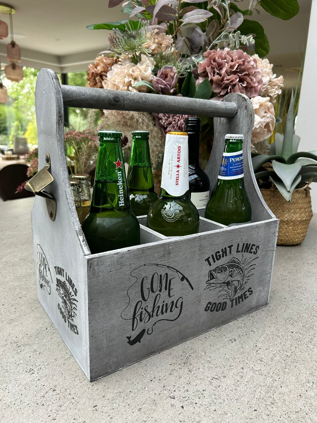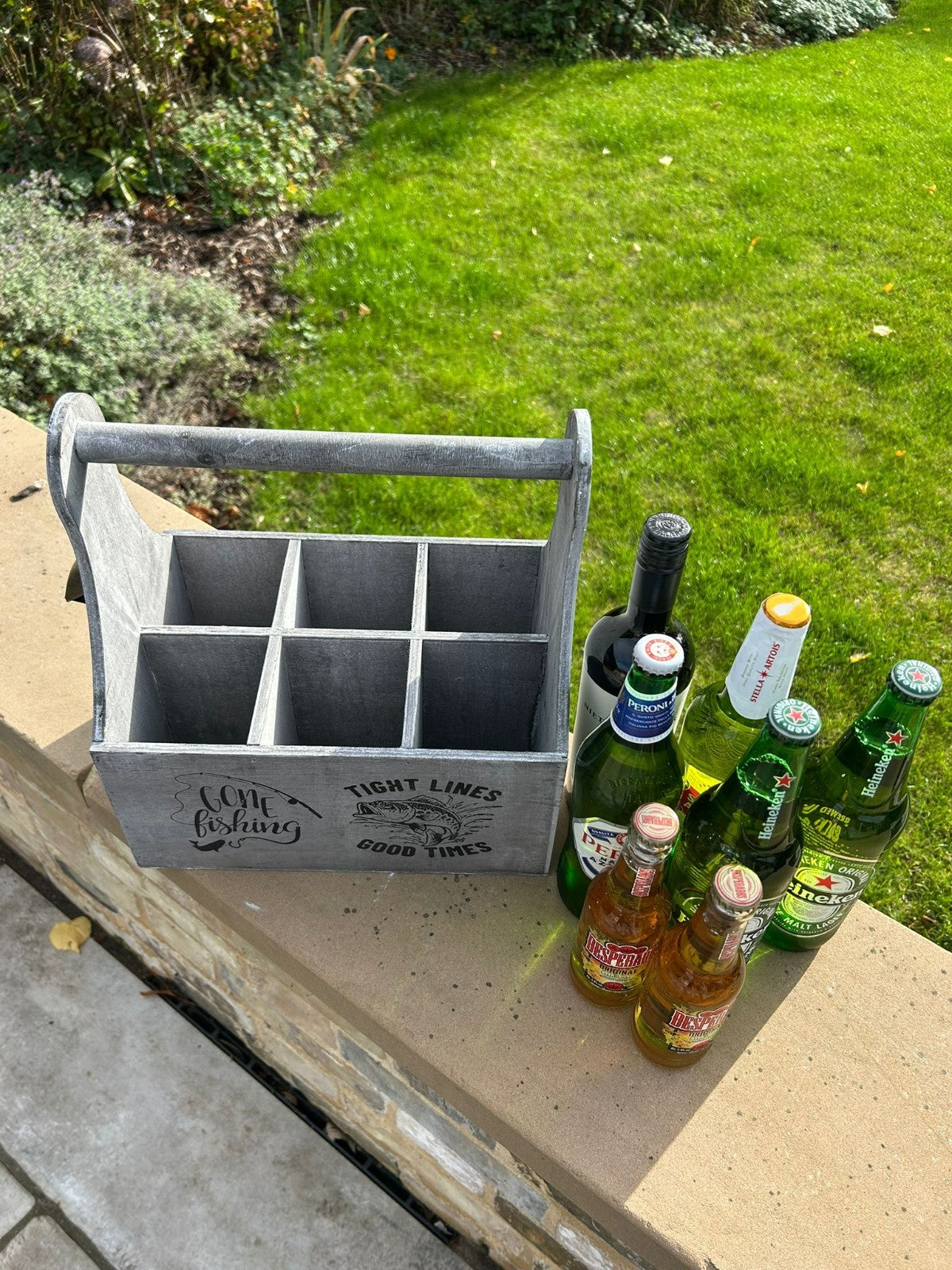Wooden Beer Bottle Gift Box Carrier Fishing Fisherman Gift Novelty Xmas Large