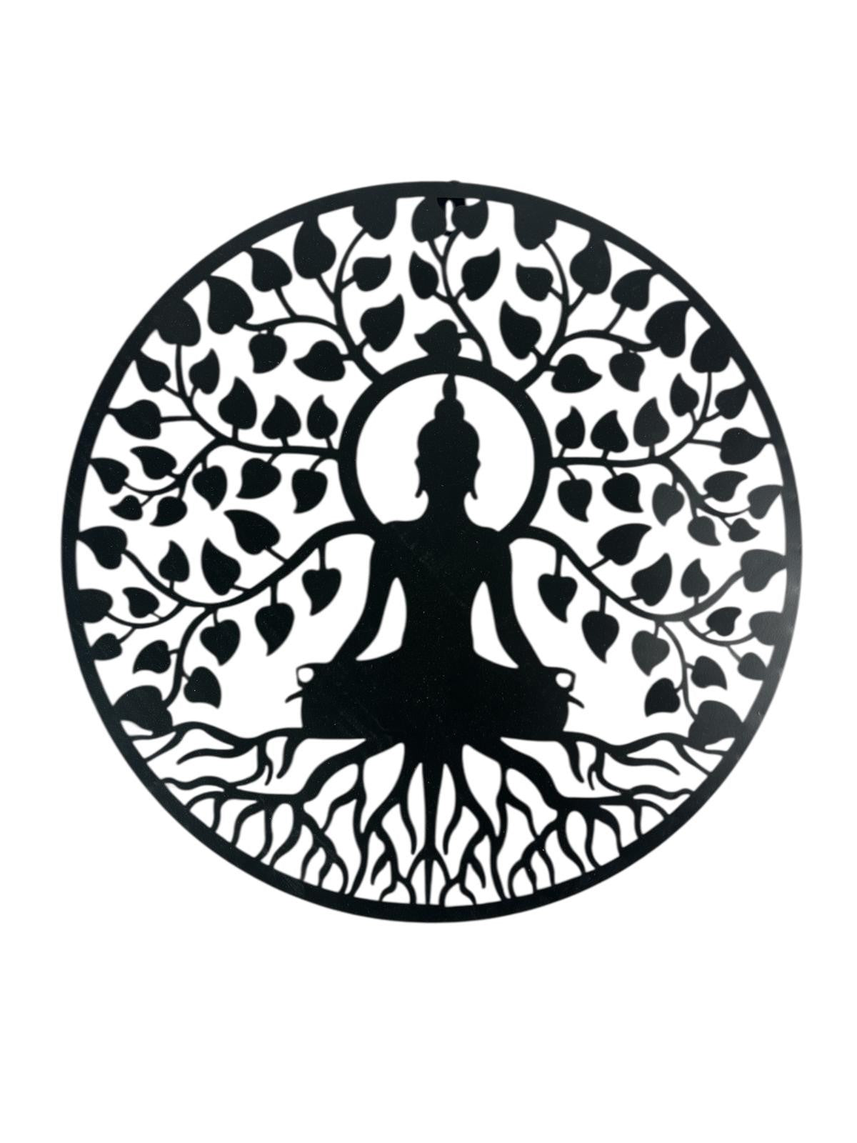 Buddha Metal Black Garden Outdoor Wall Art Plaque 40cm Diameter Gift Decoration