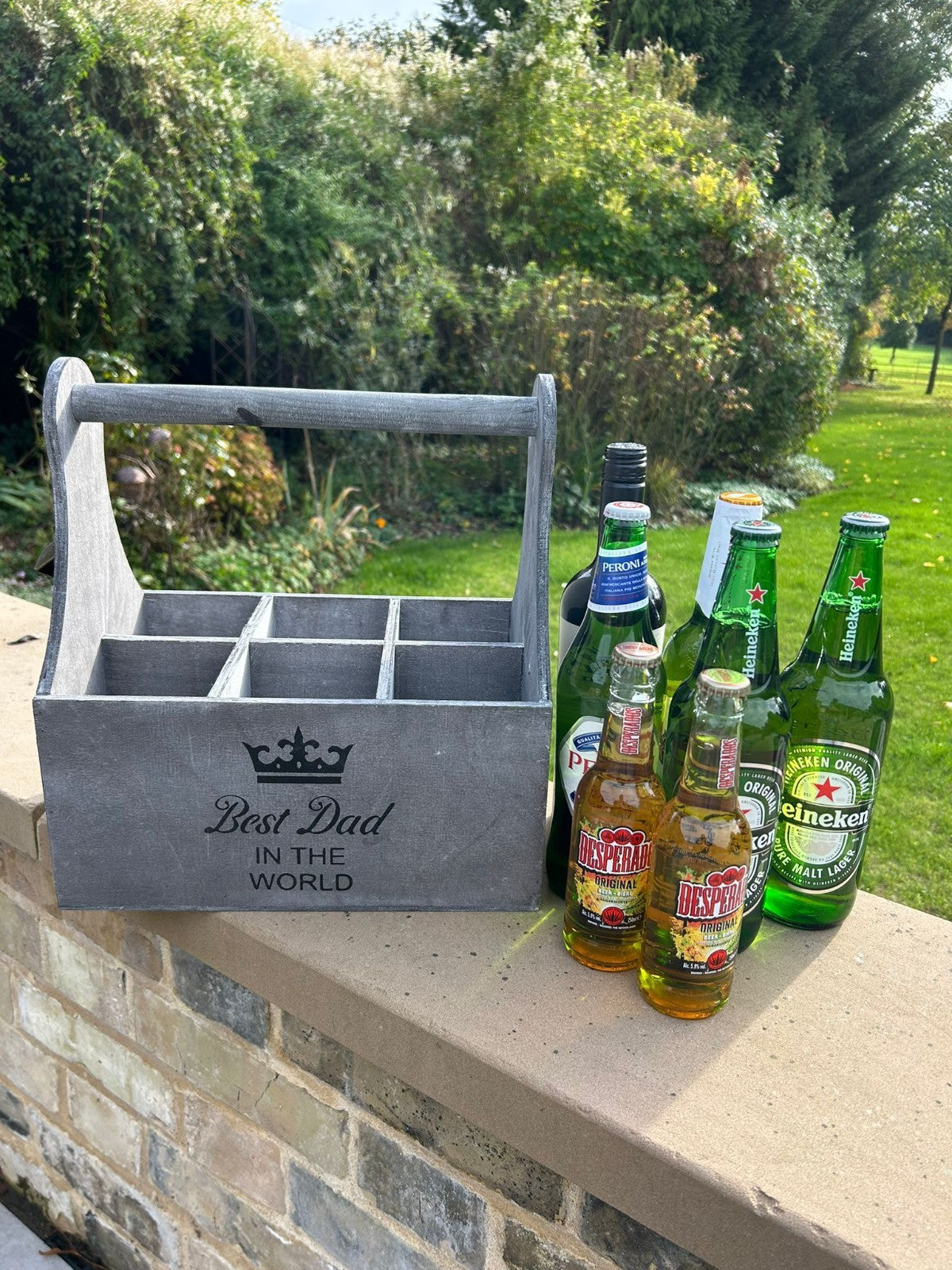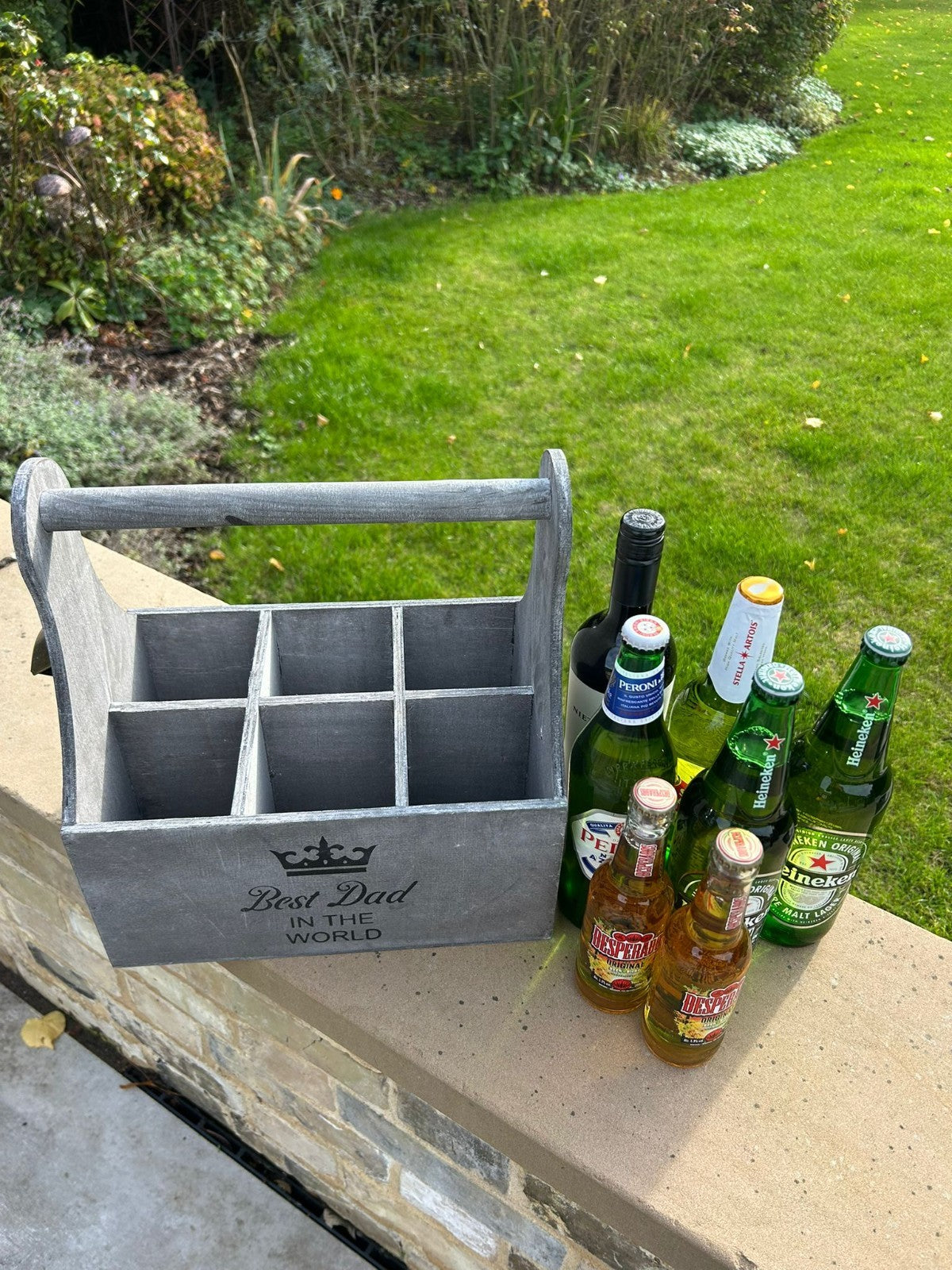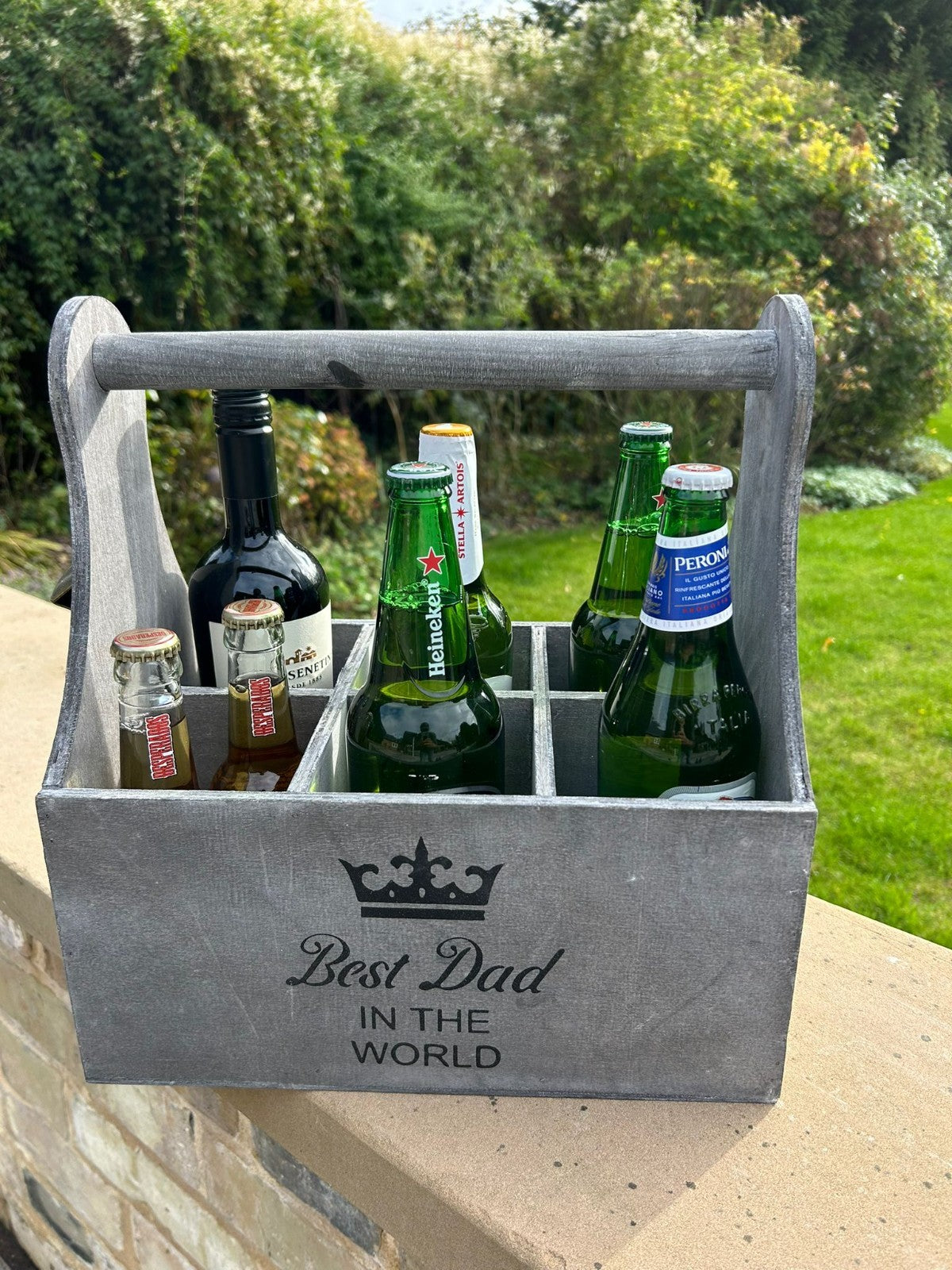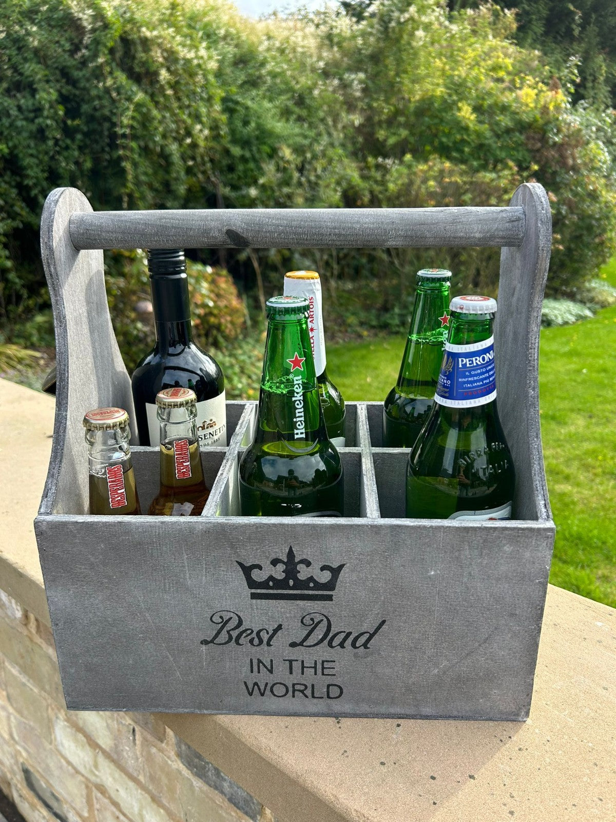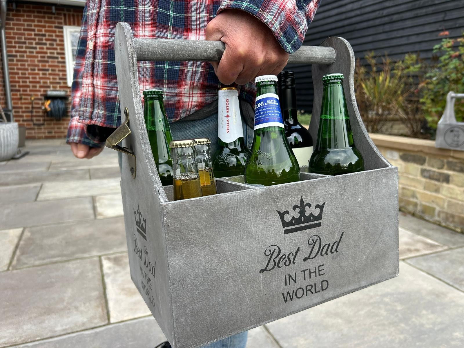 Wooden Best Dad In The World Bottle Gift Box Carrier Gift Novelty Xmas Large