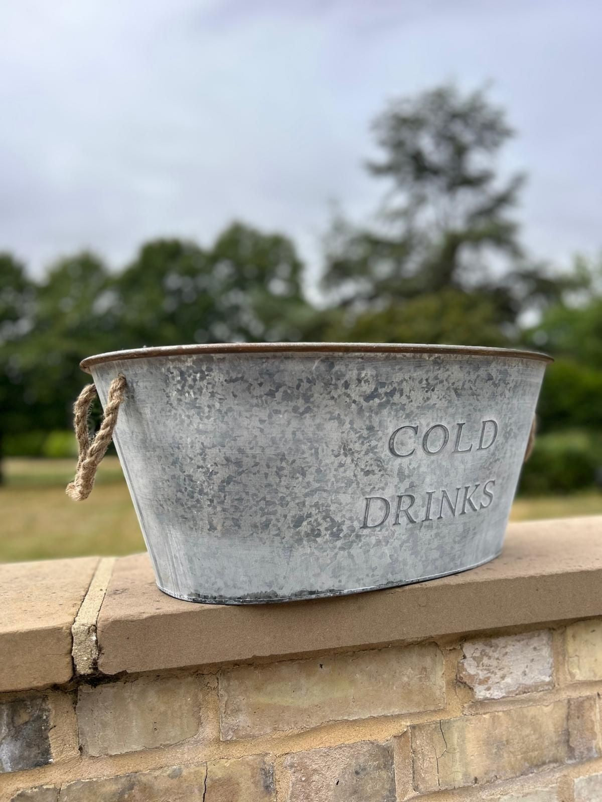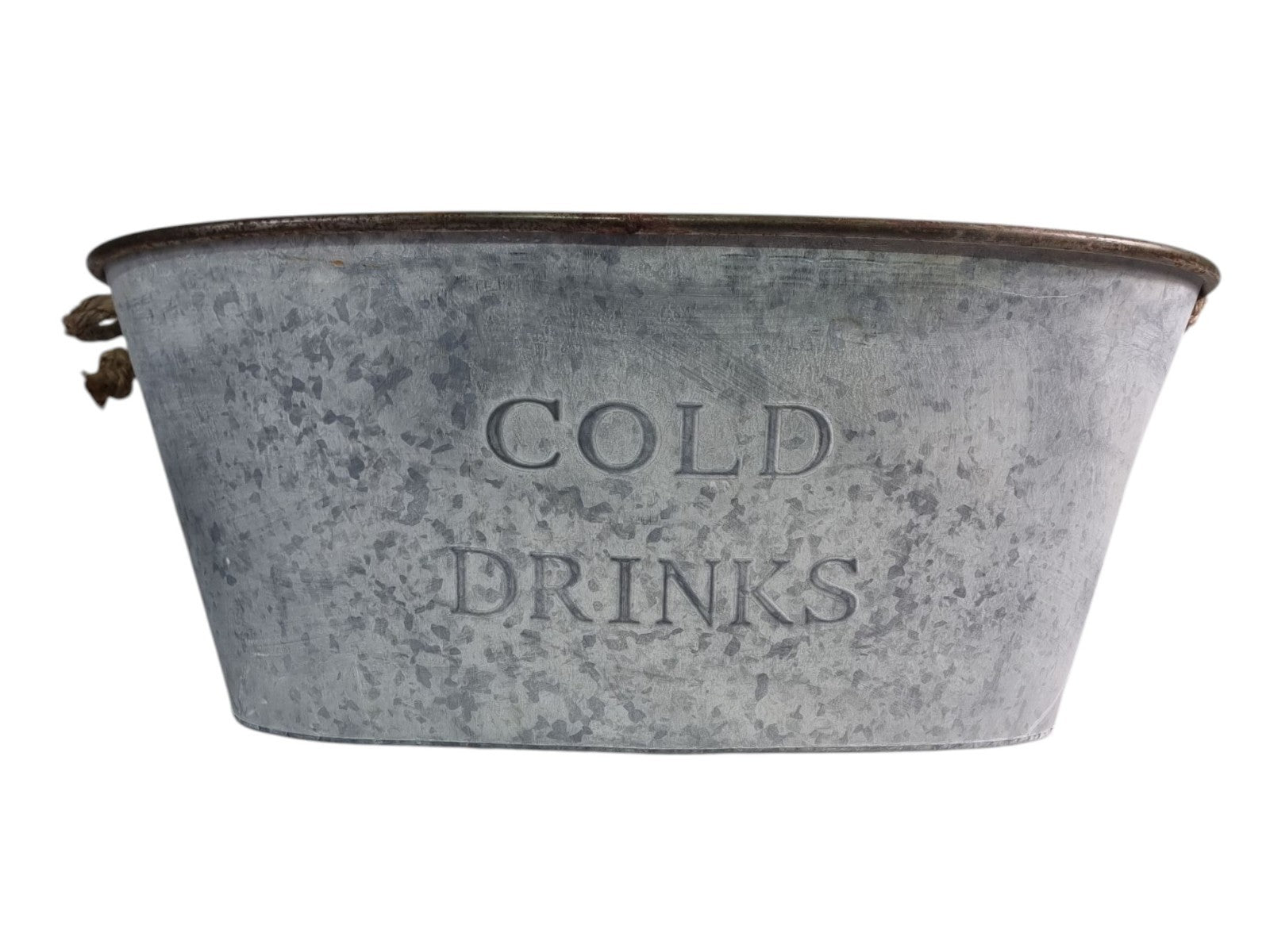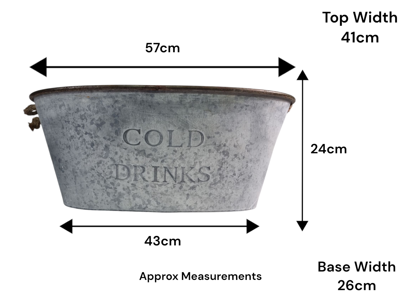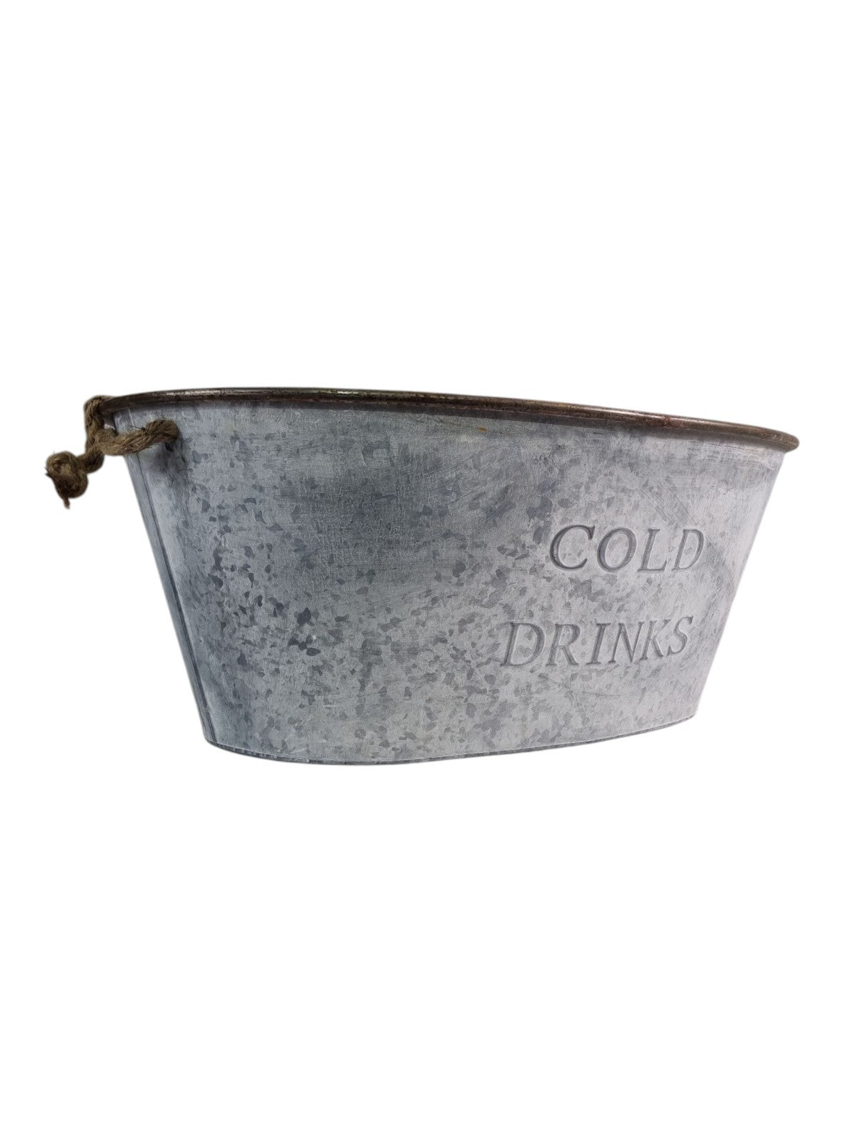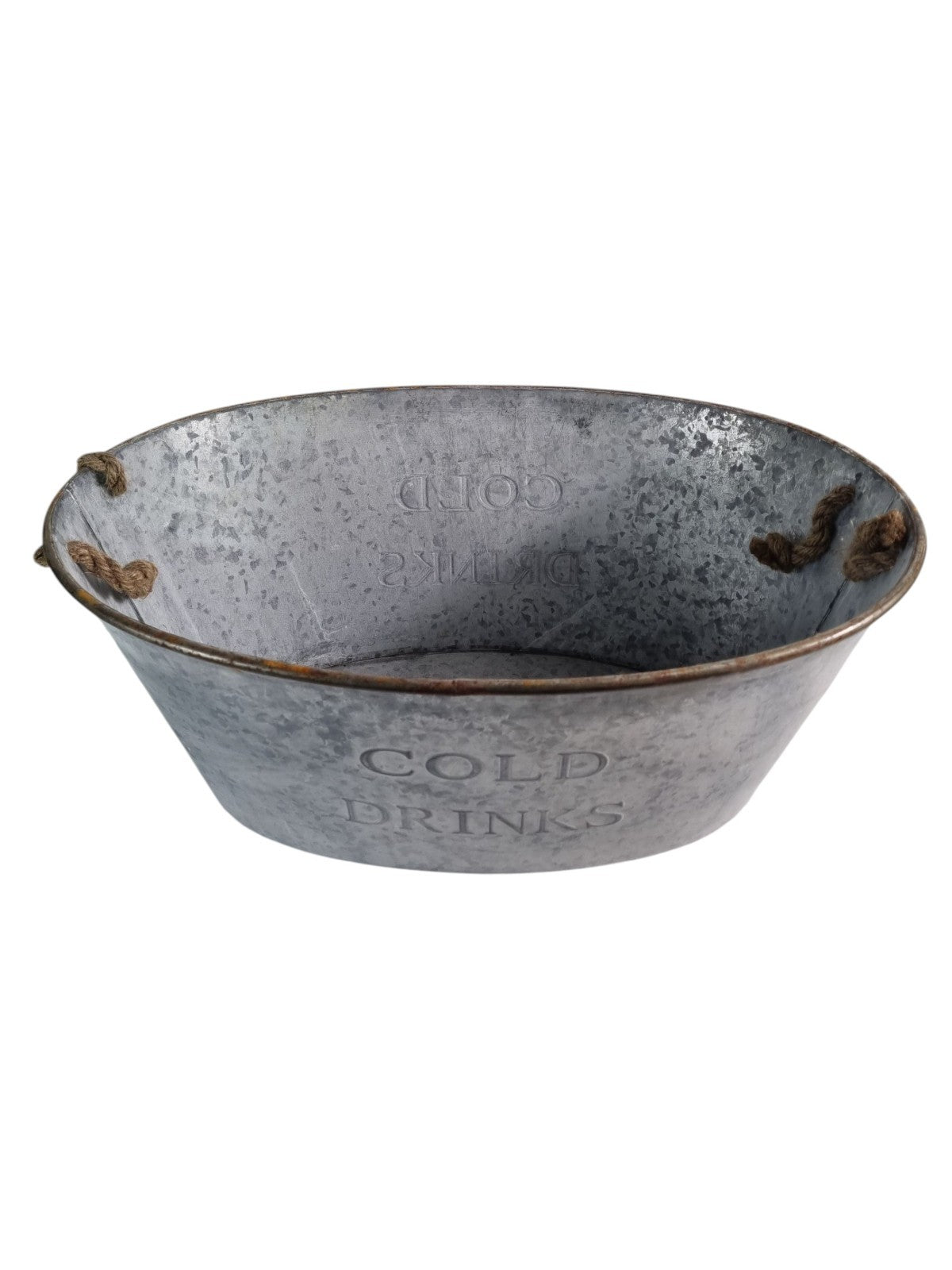Zinc Cold Drinks Embossed Rustic Oval Ice Drink Tin Bucket With Rope Handles