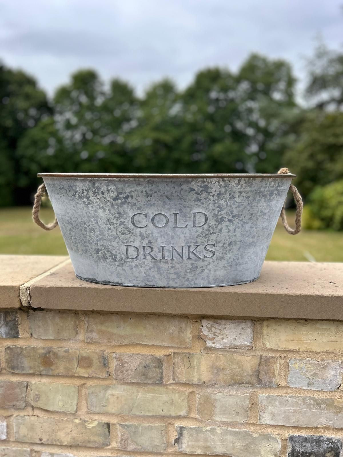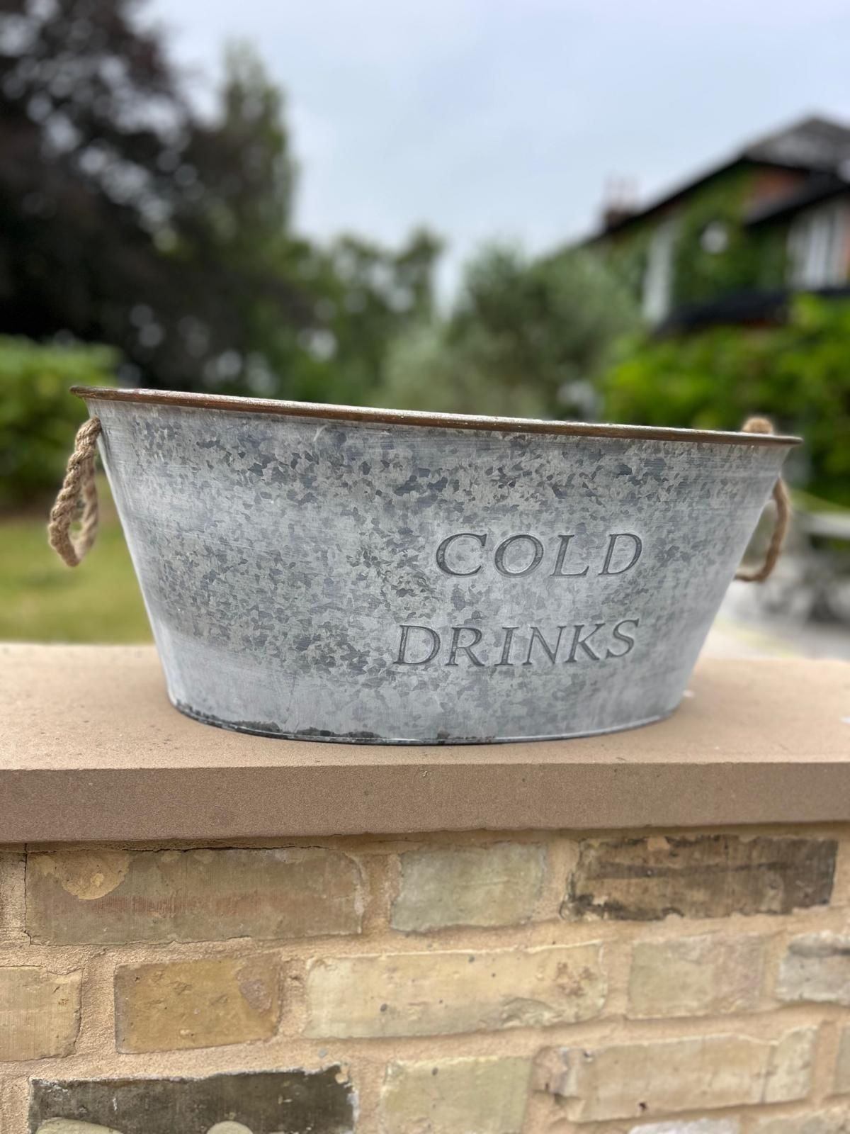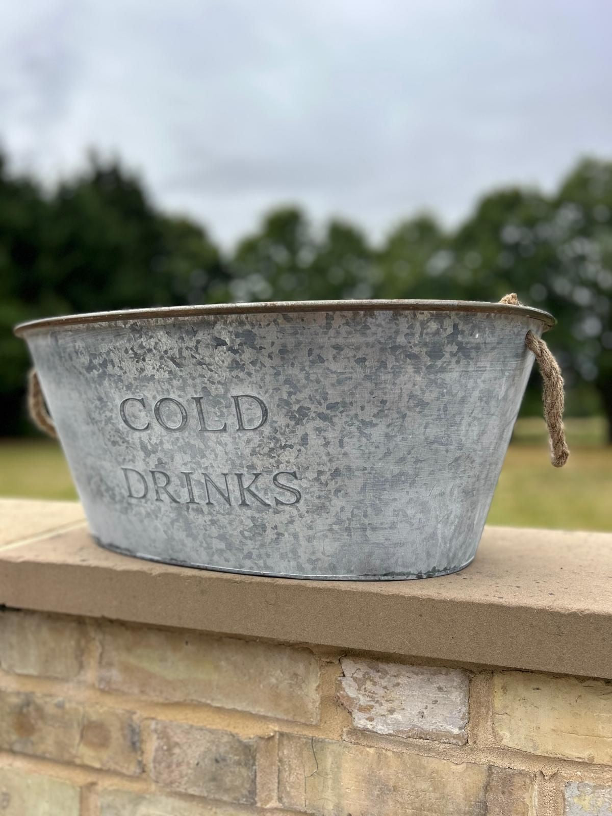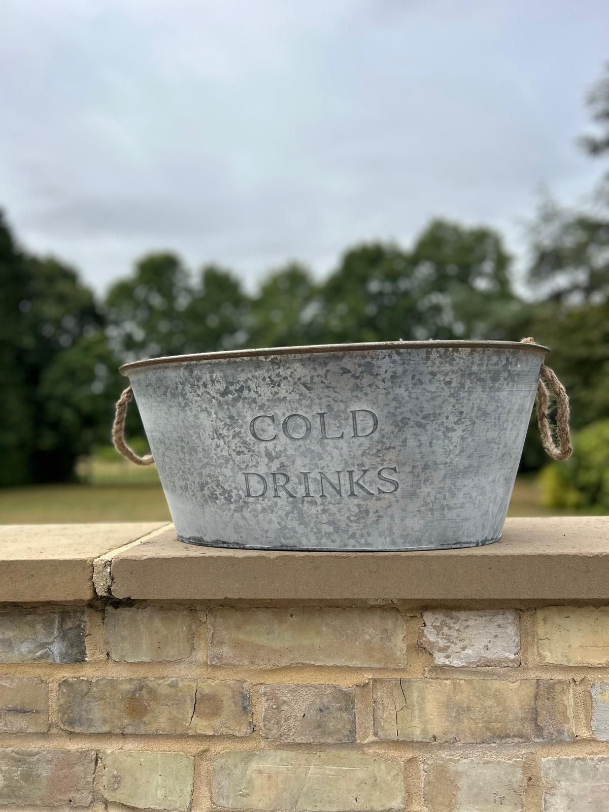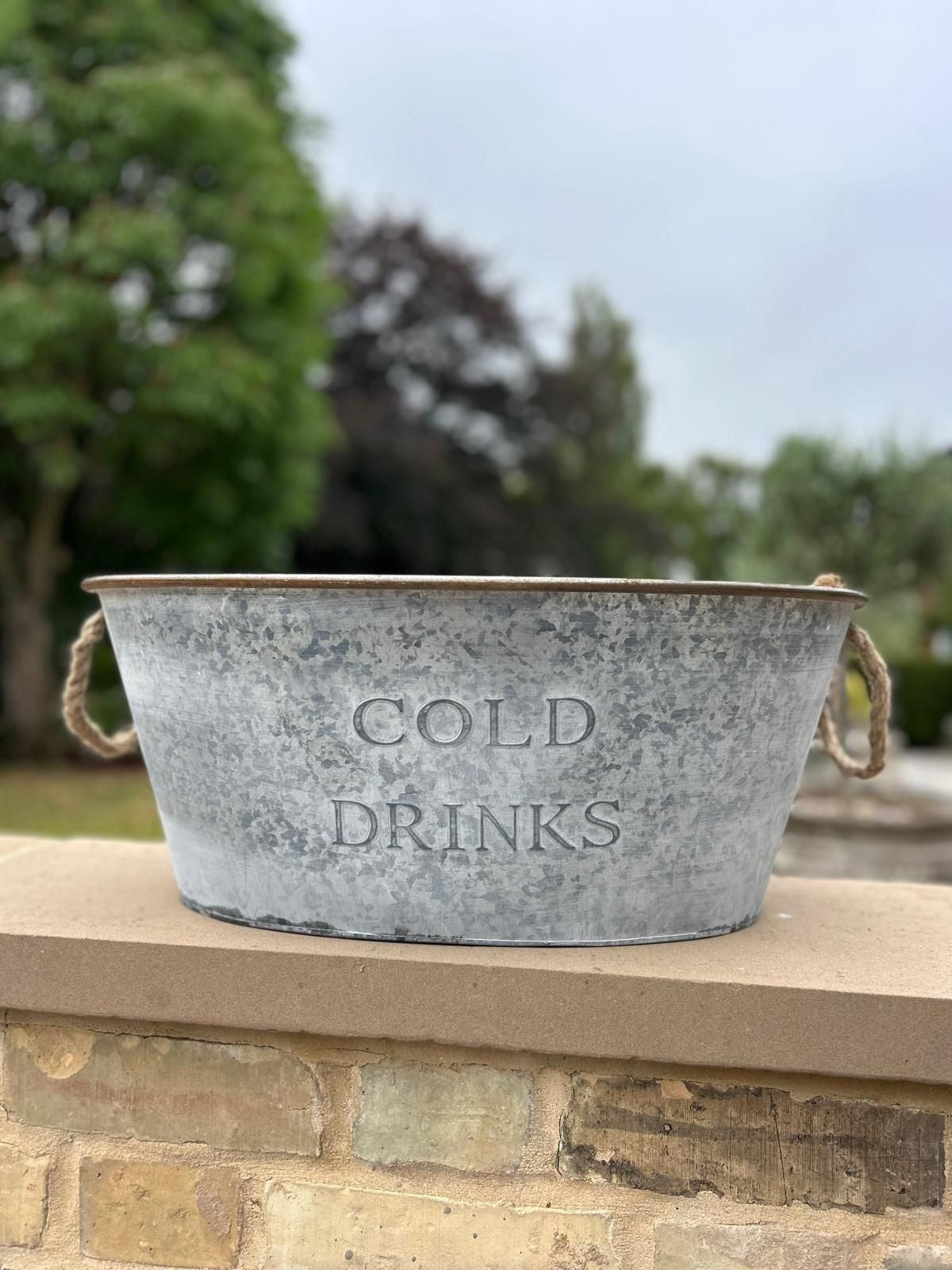 Zinc Cold Drinks Embossed Rustic Oval Ice Drink Tin Bucket With Rope Handles