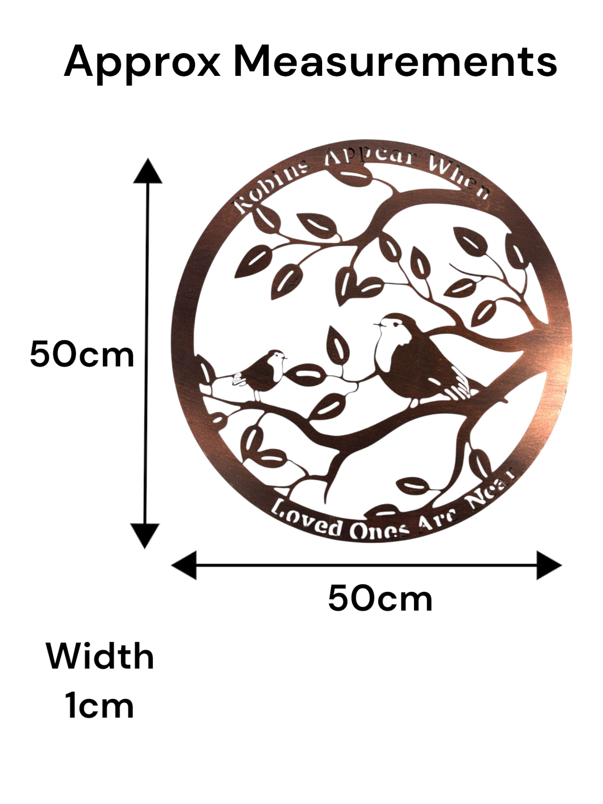 50cm Wall Art Mirror Bronze Robins Appear When Loved Ones Are Near Garden Home