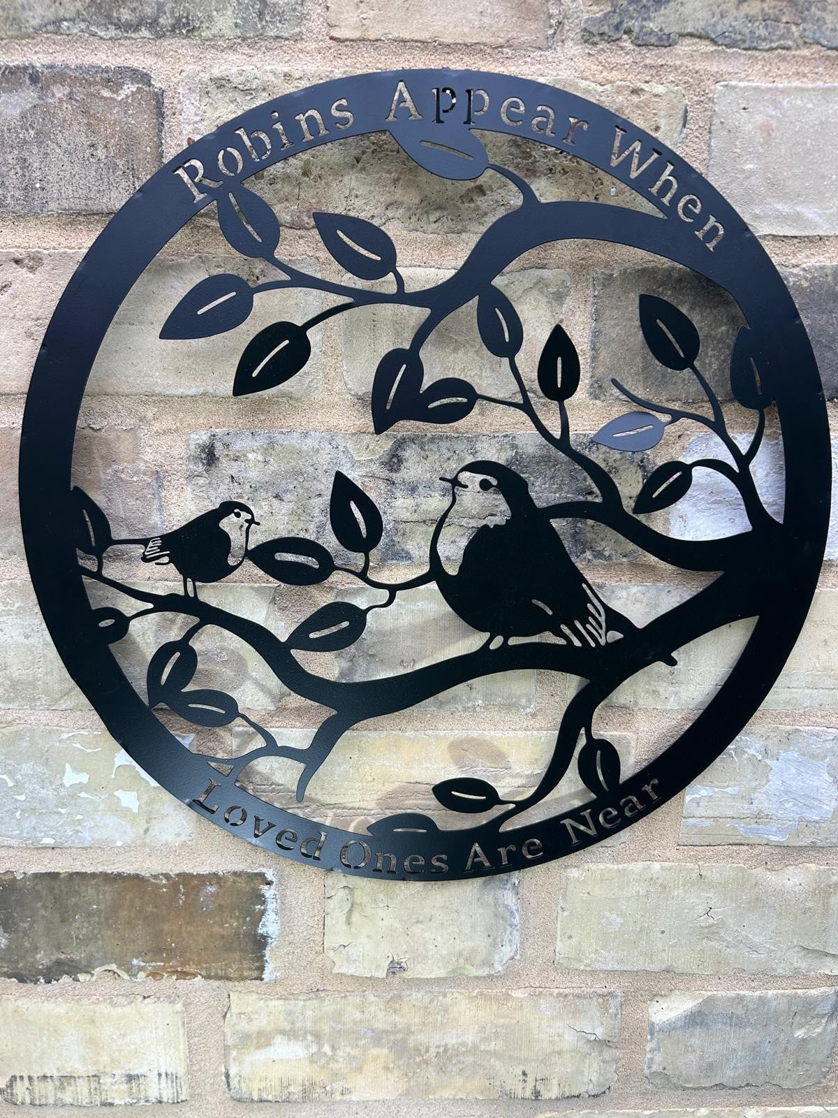 50cm Wall Art Black Robins Appear When Loved Ones Are Near Garden Home Gift