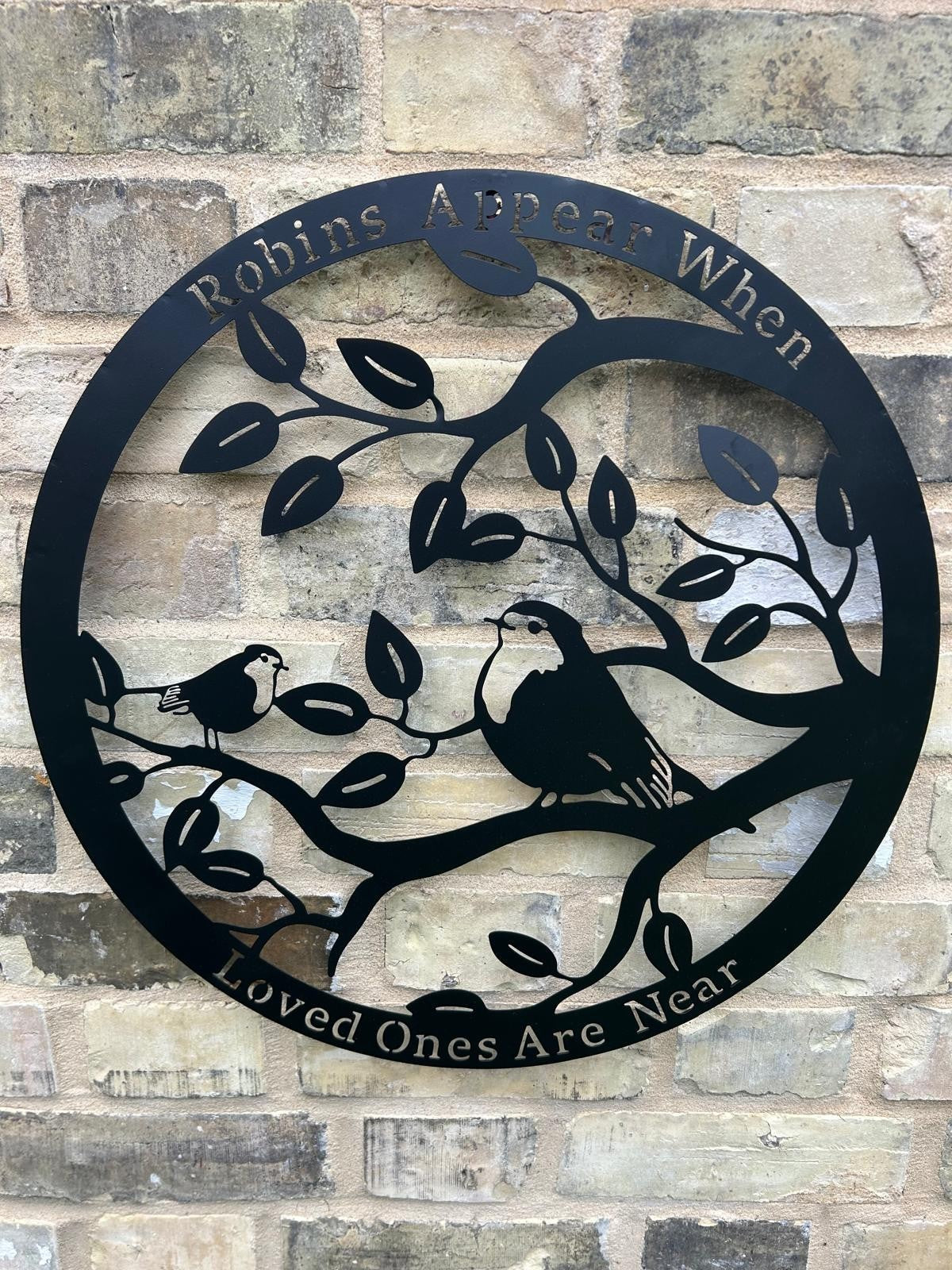 40cm Wall Art Black Robins Appear When Loved Ones Are Near Garden Home Gift