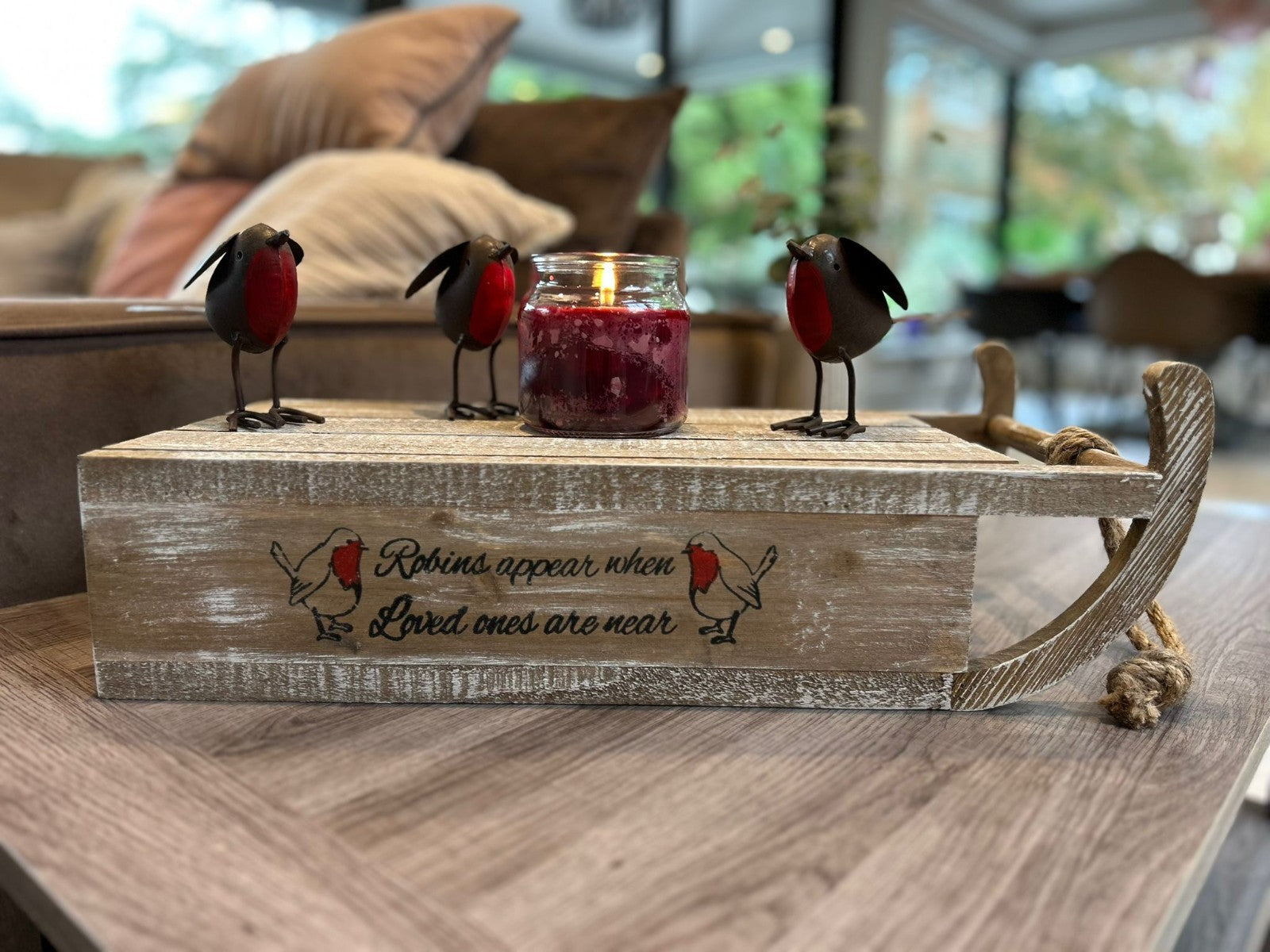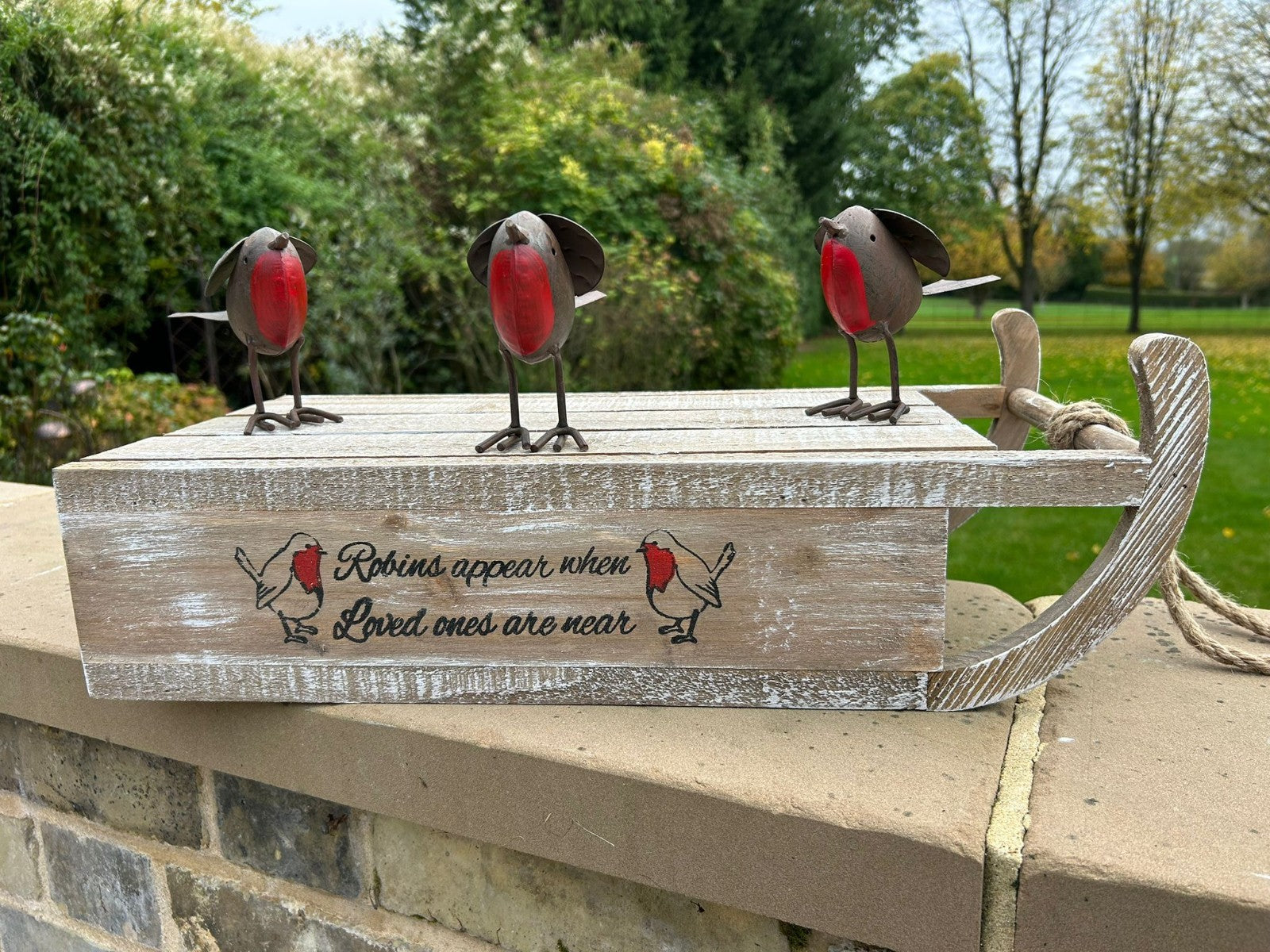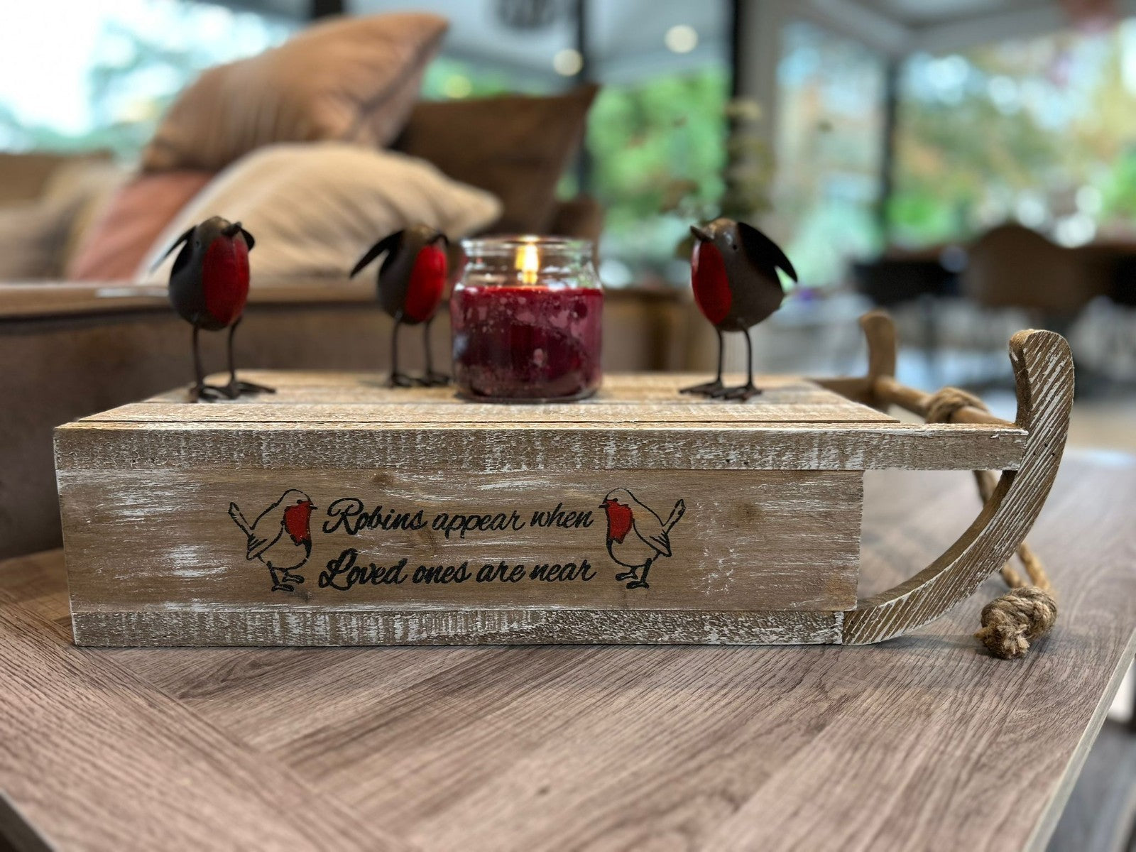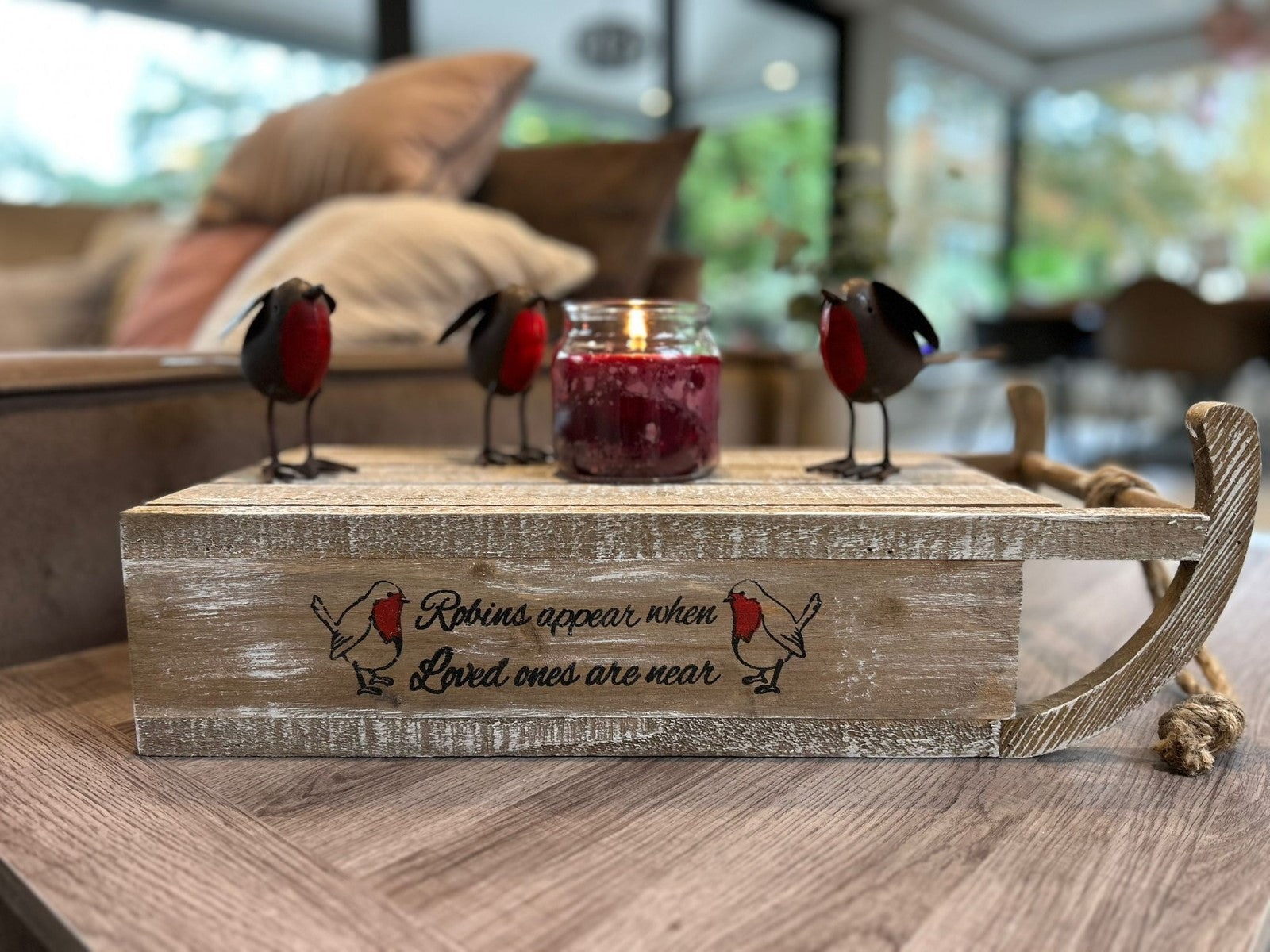 Wooden Robin Sleigh Display Decor Christmas Gift Xmas Festive Robins Appear Love
