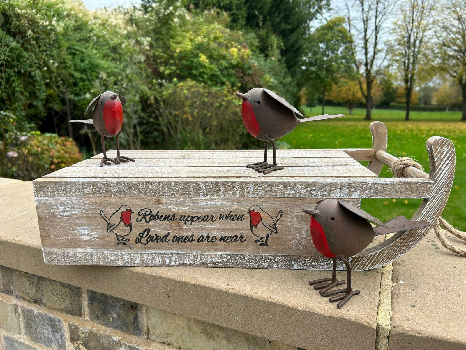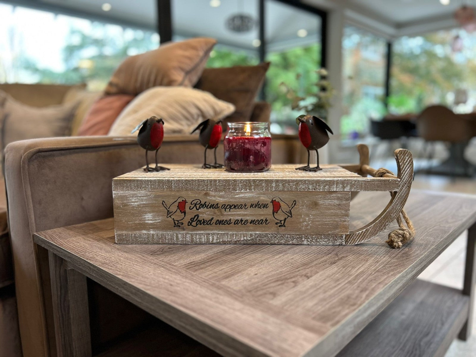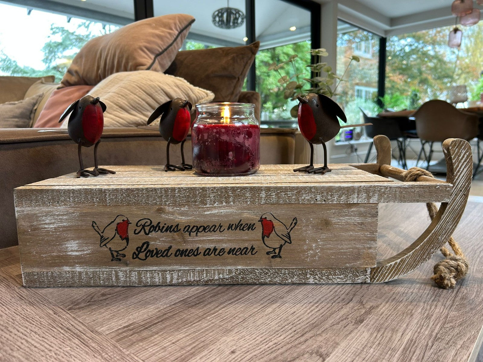 Wooden Robin Sleigh Display Decor Christmas Gift Xmas Festive Robins Appear Love
