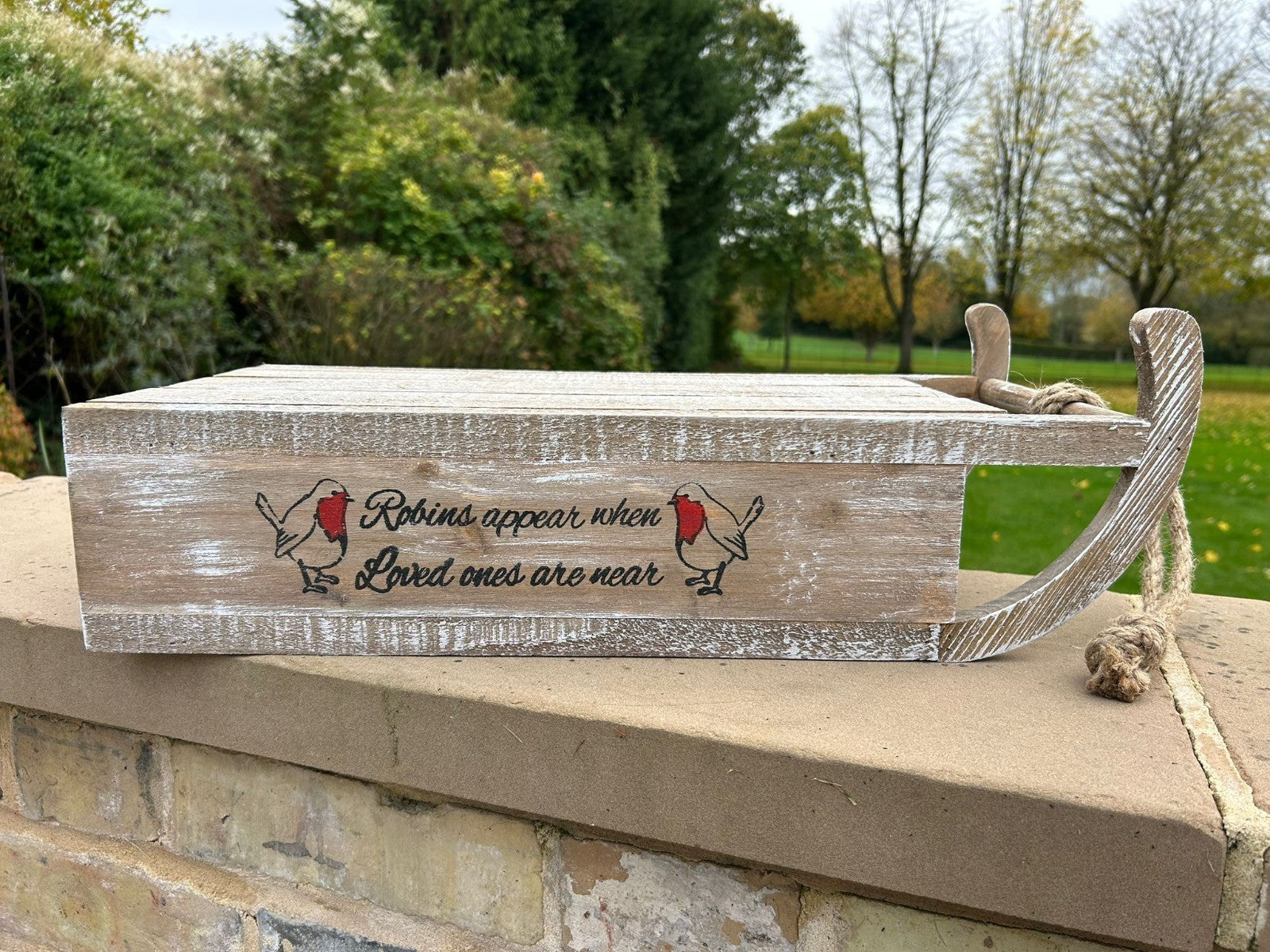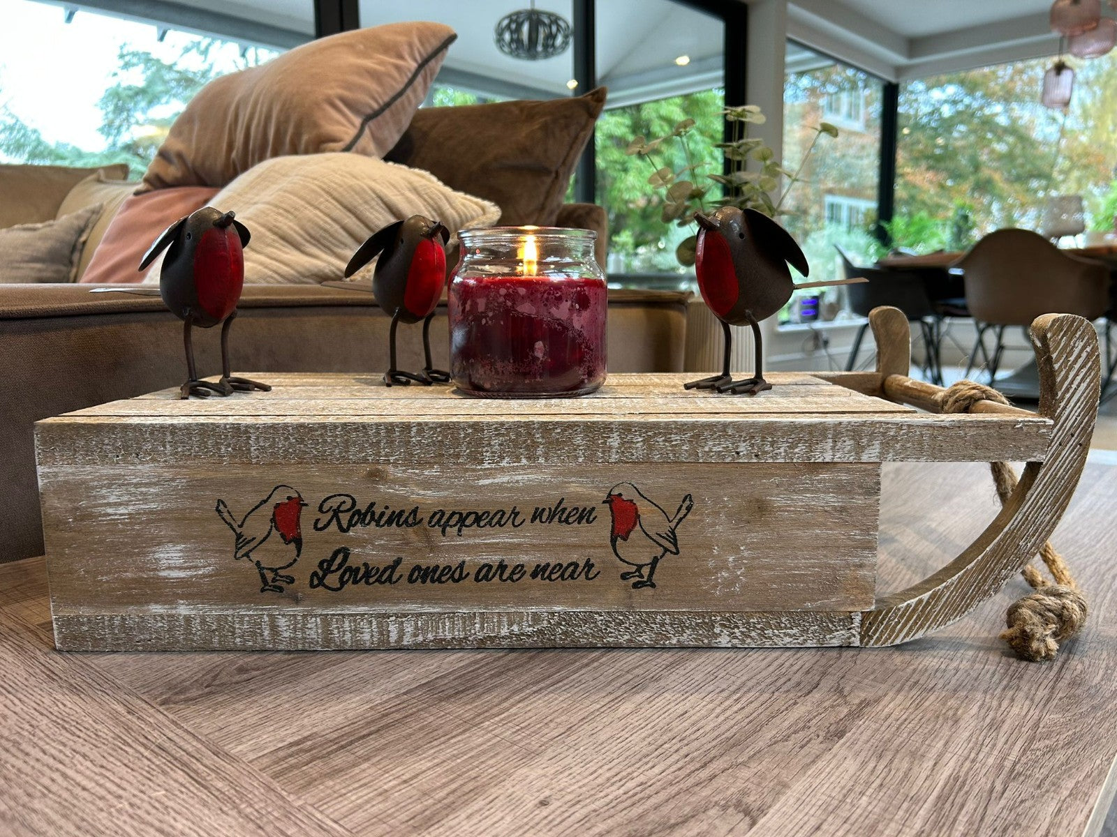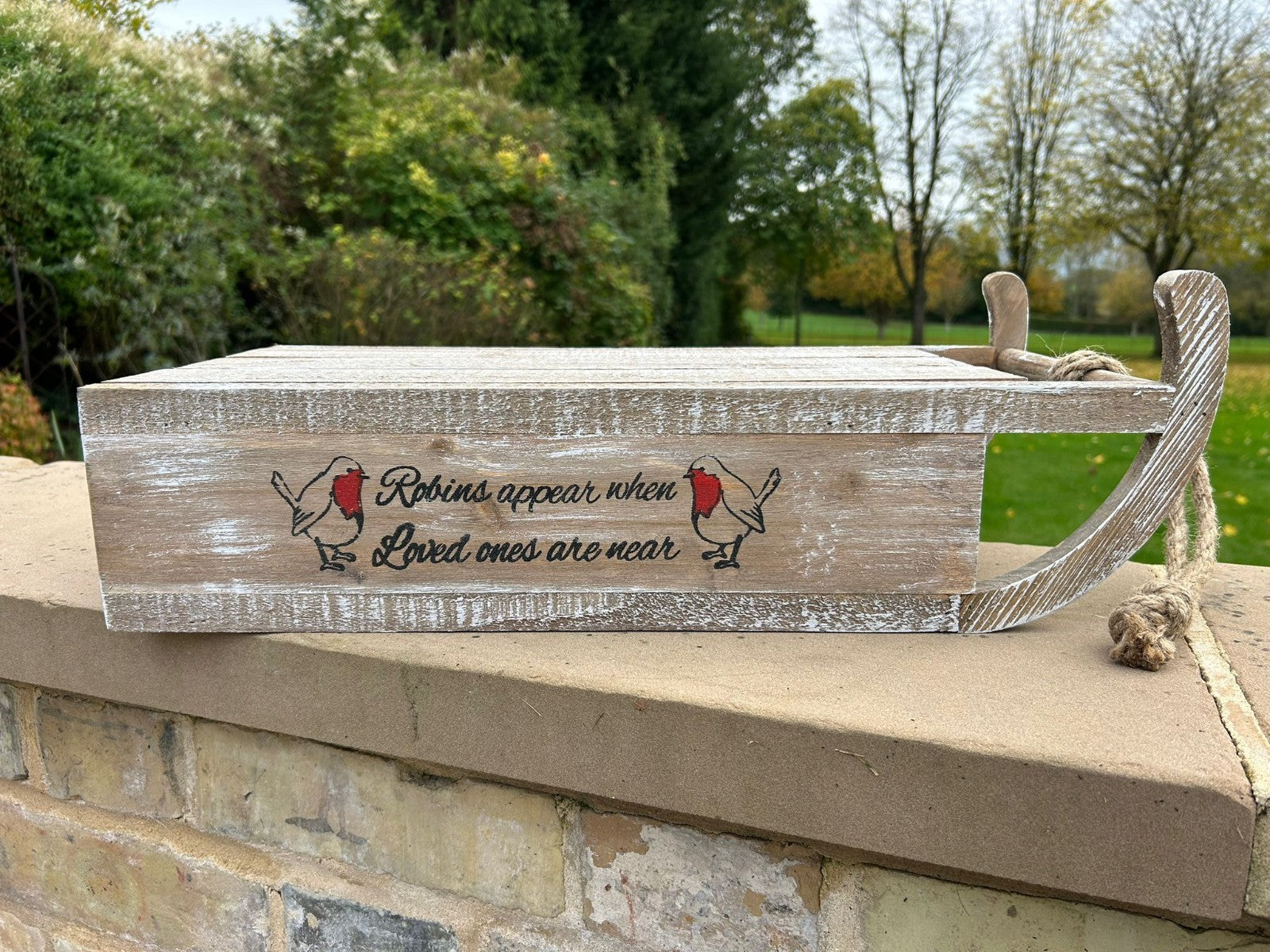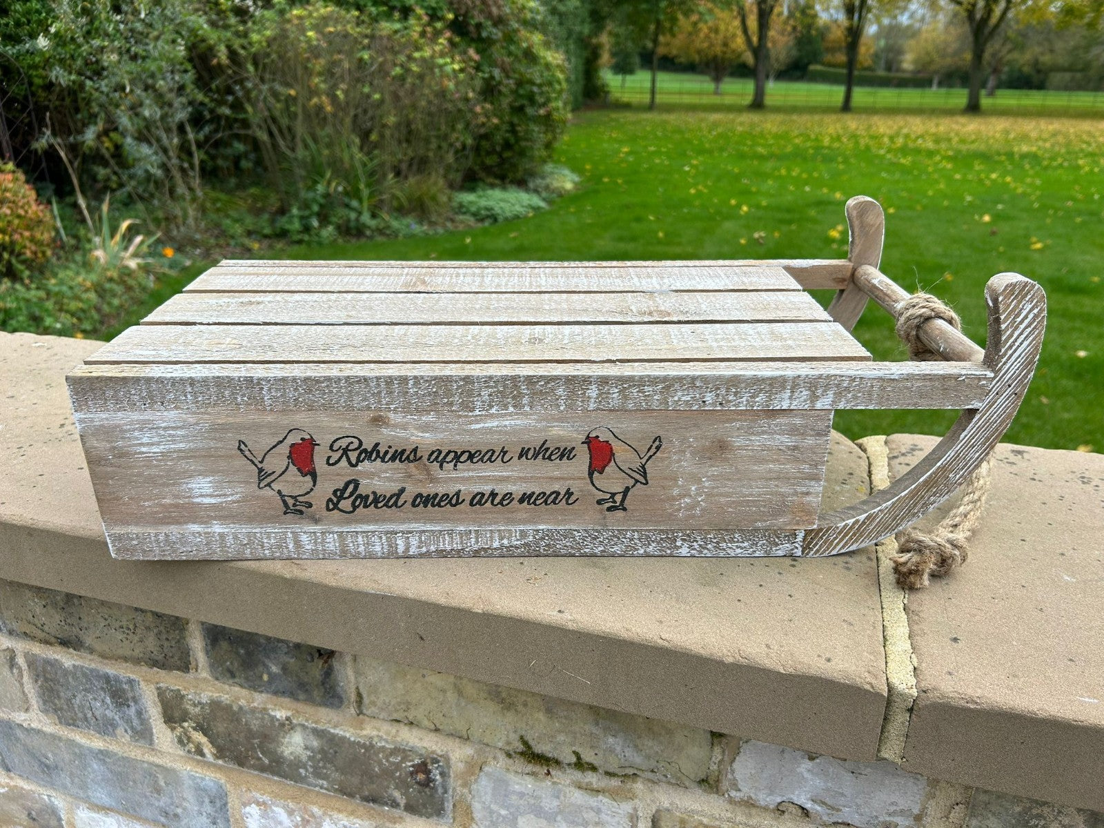 Wooden Robin Sleigh Display Decor Christmas Gift Xmas Festive Robins Appear Love