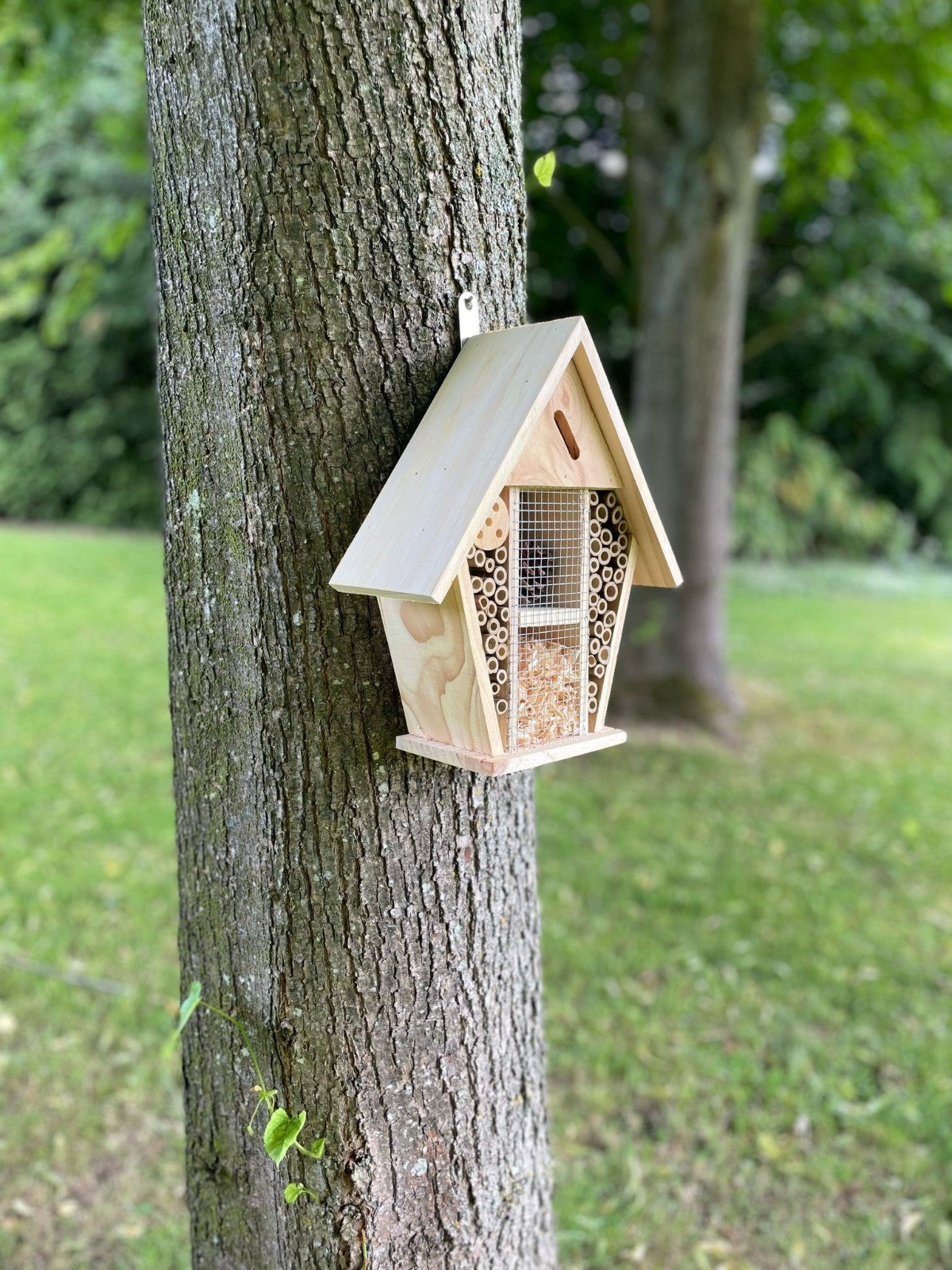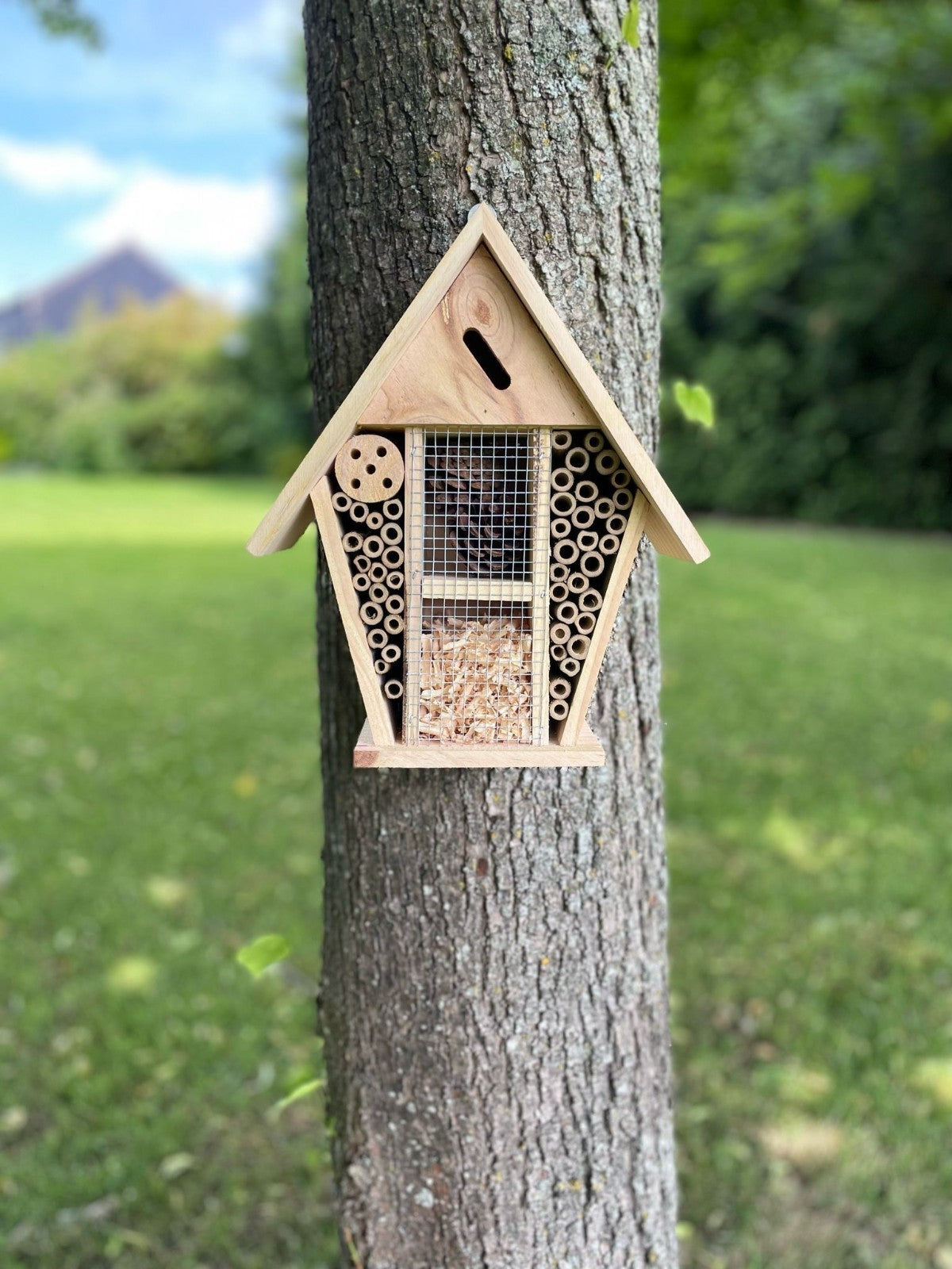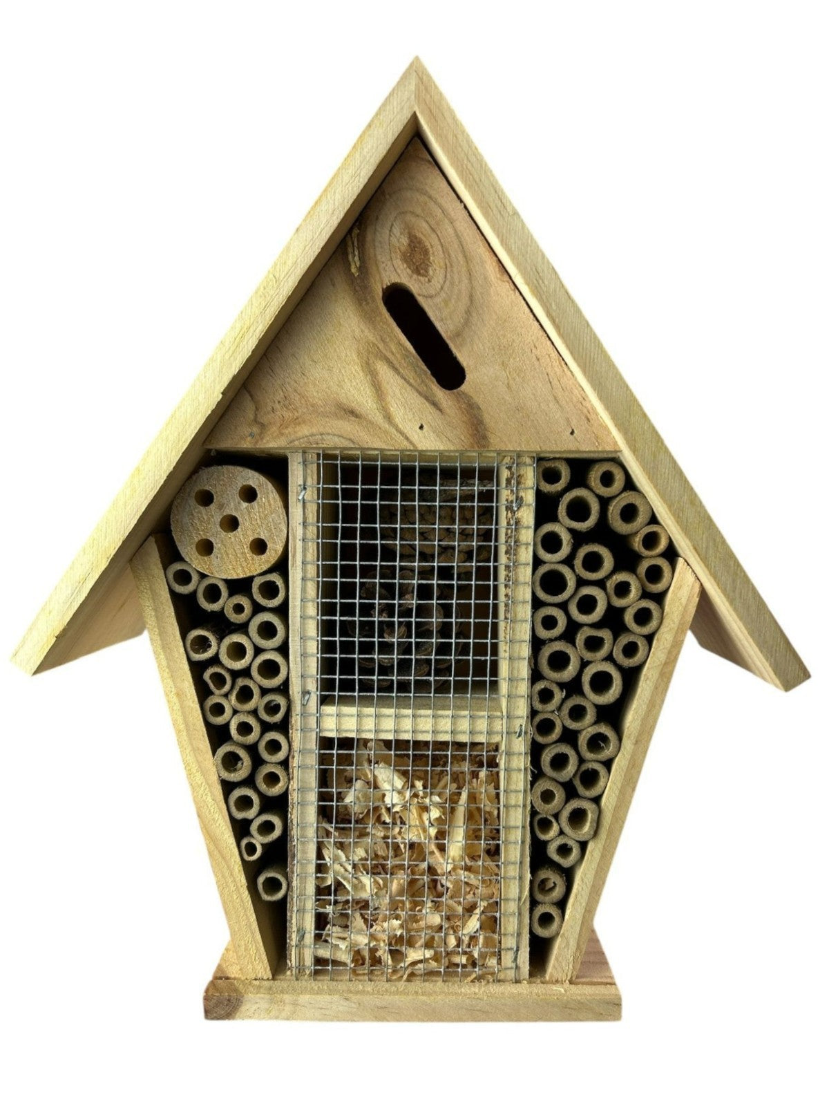 Pointed Roof Wooden Insect Hotel Home Hanging Bug House Garden Nature Decor Gift