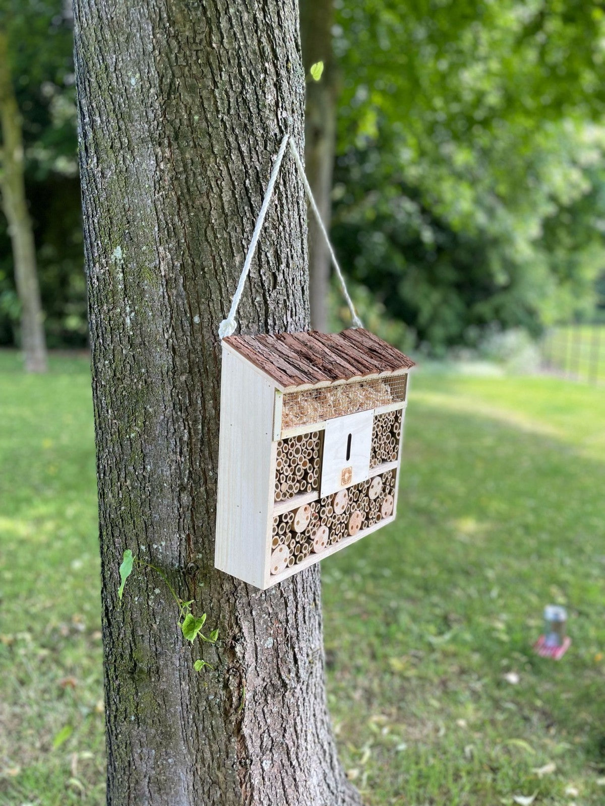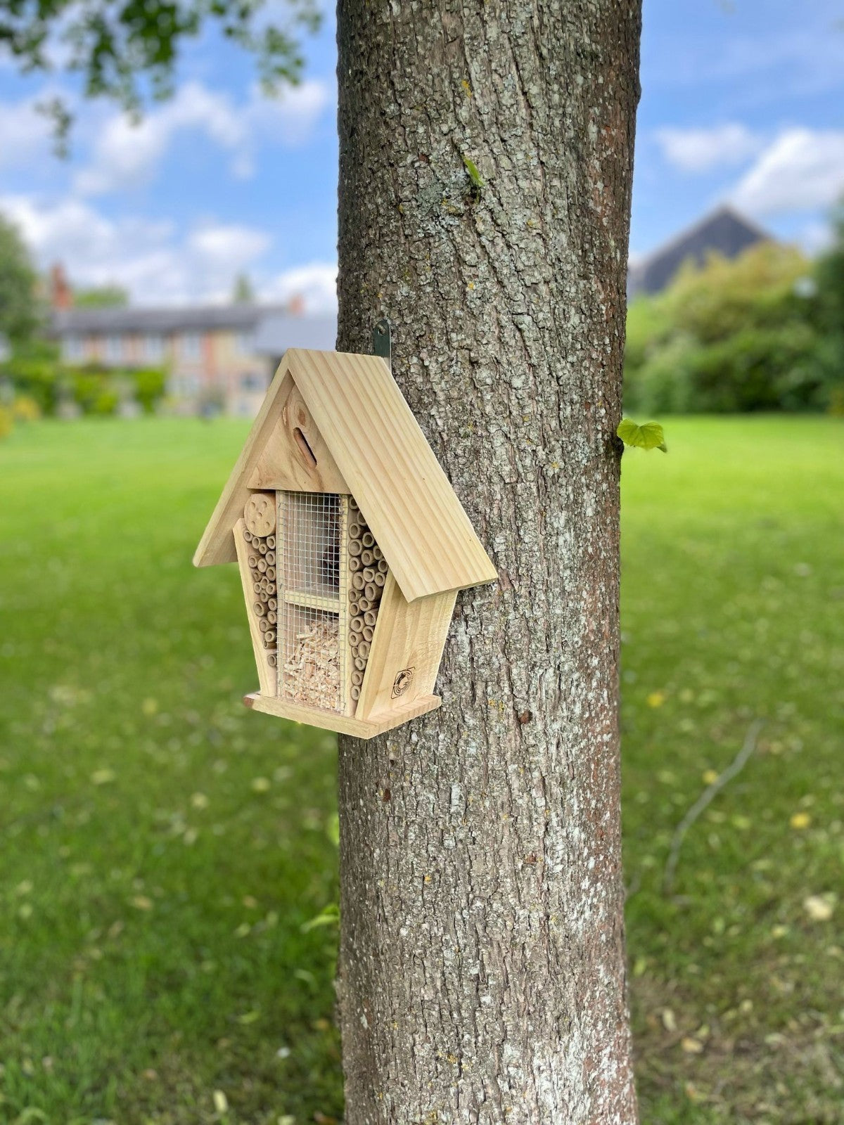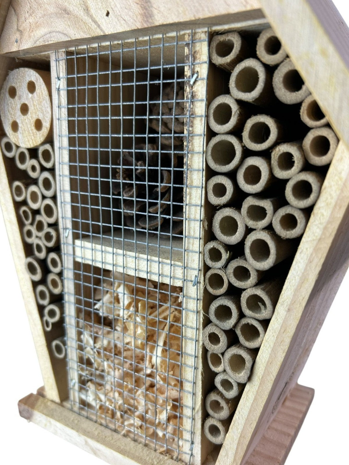 Pointed Roof Wooden Insect Hotel Home Hanging Bug House Garden Nature Decor Gift