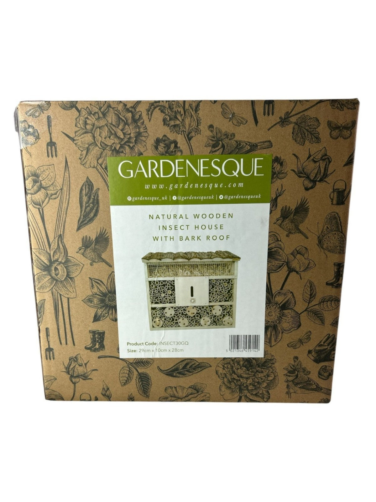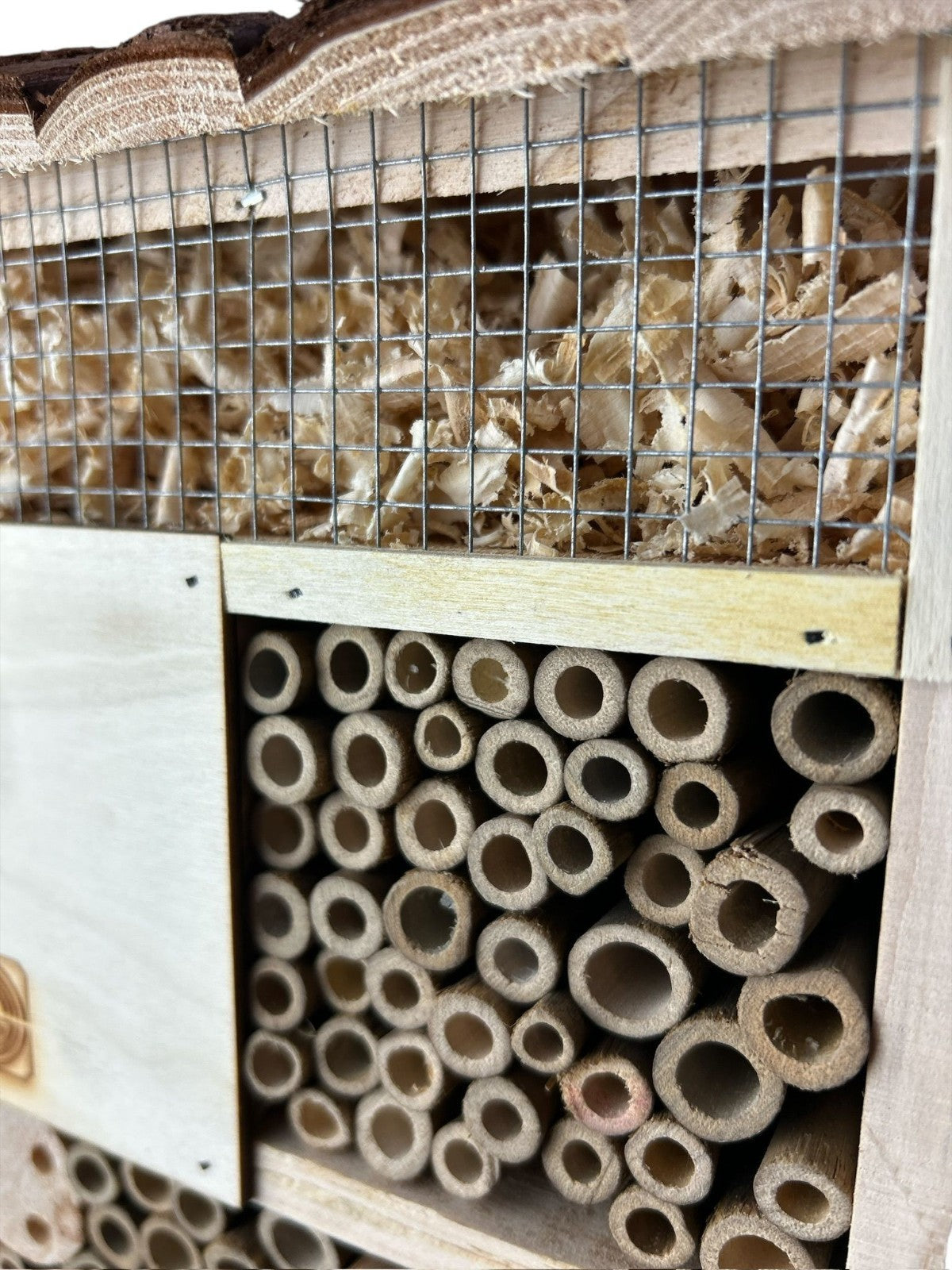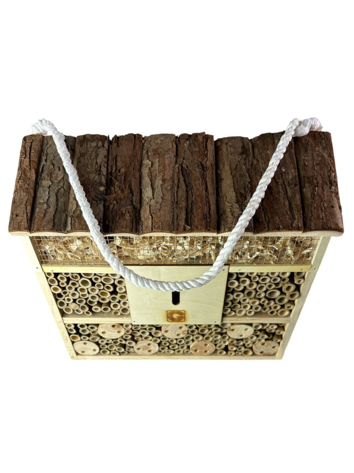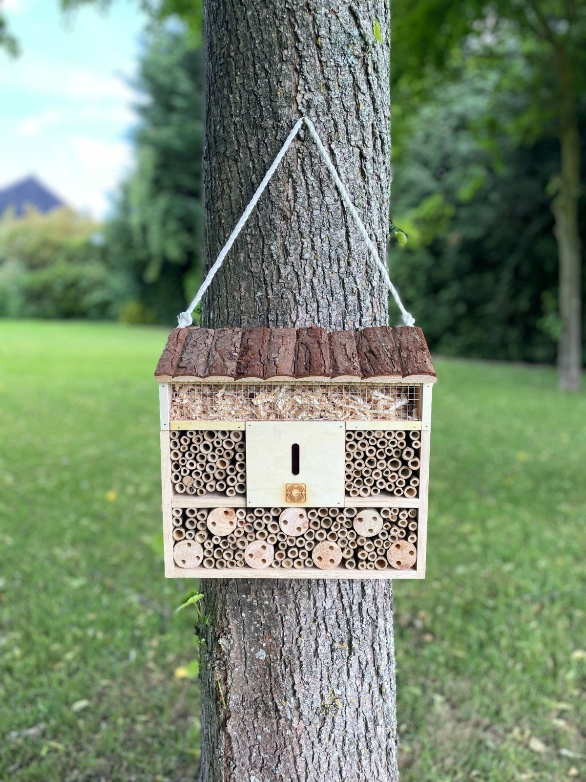Wooden Insect Hotel Home Hanging Bug House with Bark Roof Natural Garden Decor