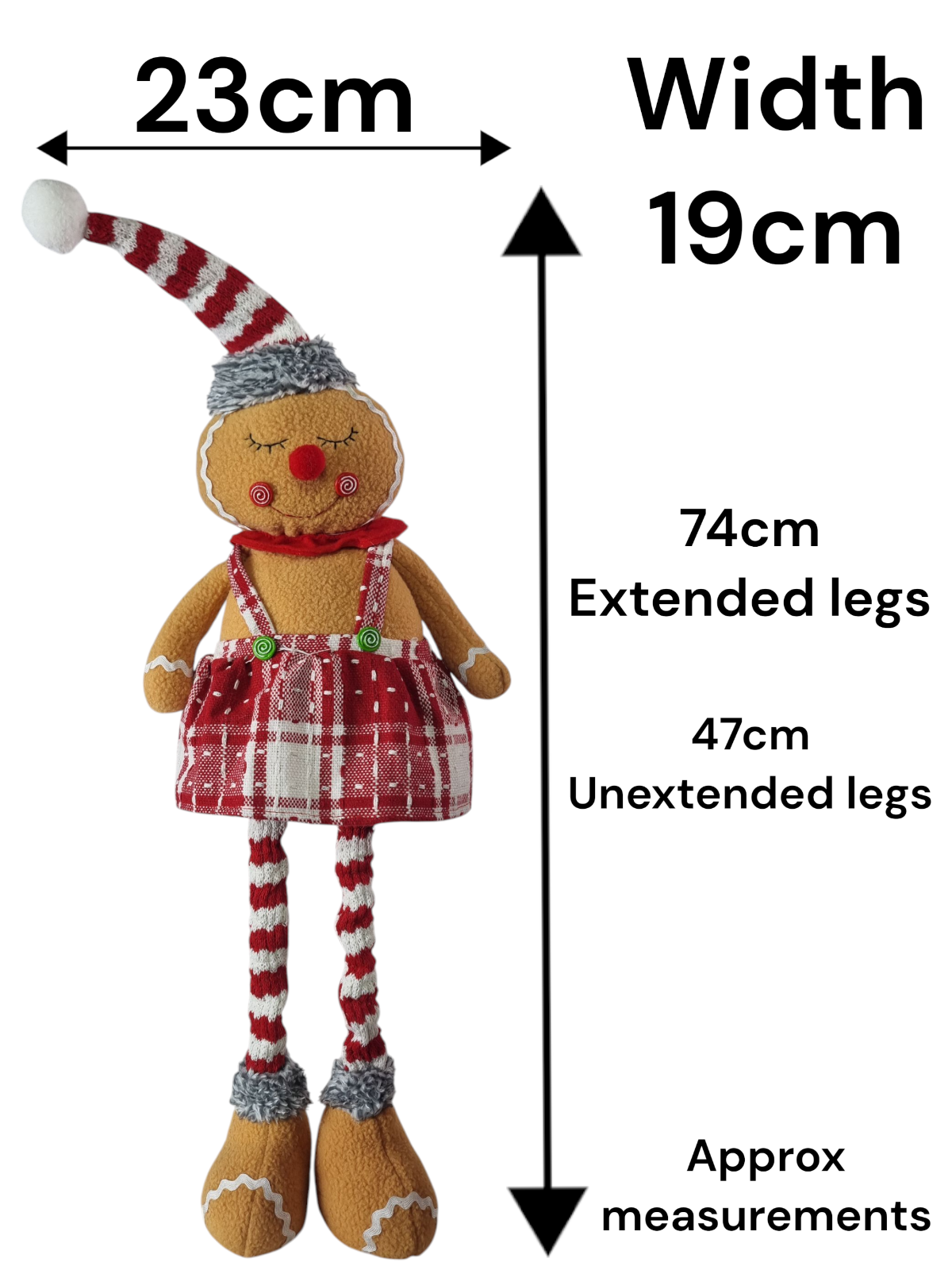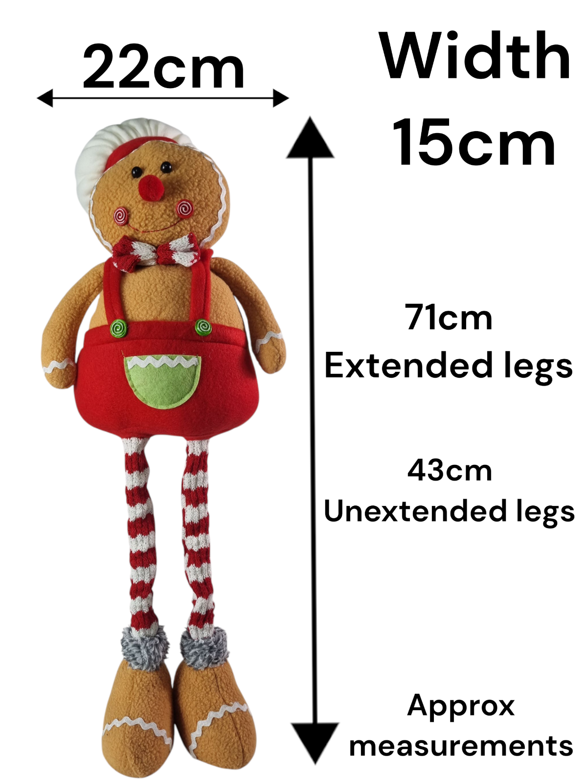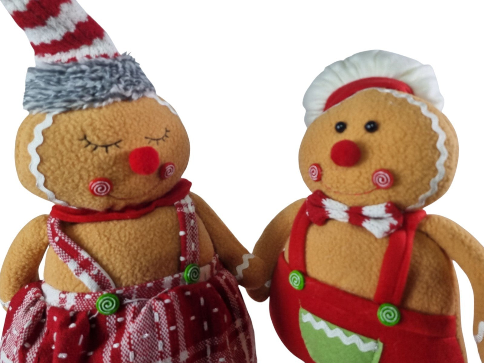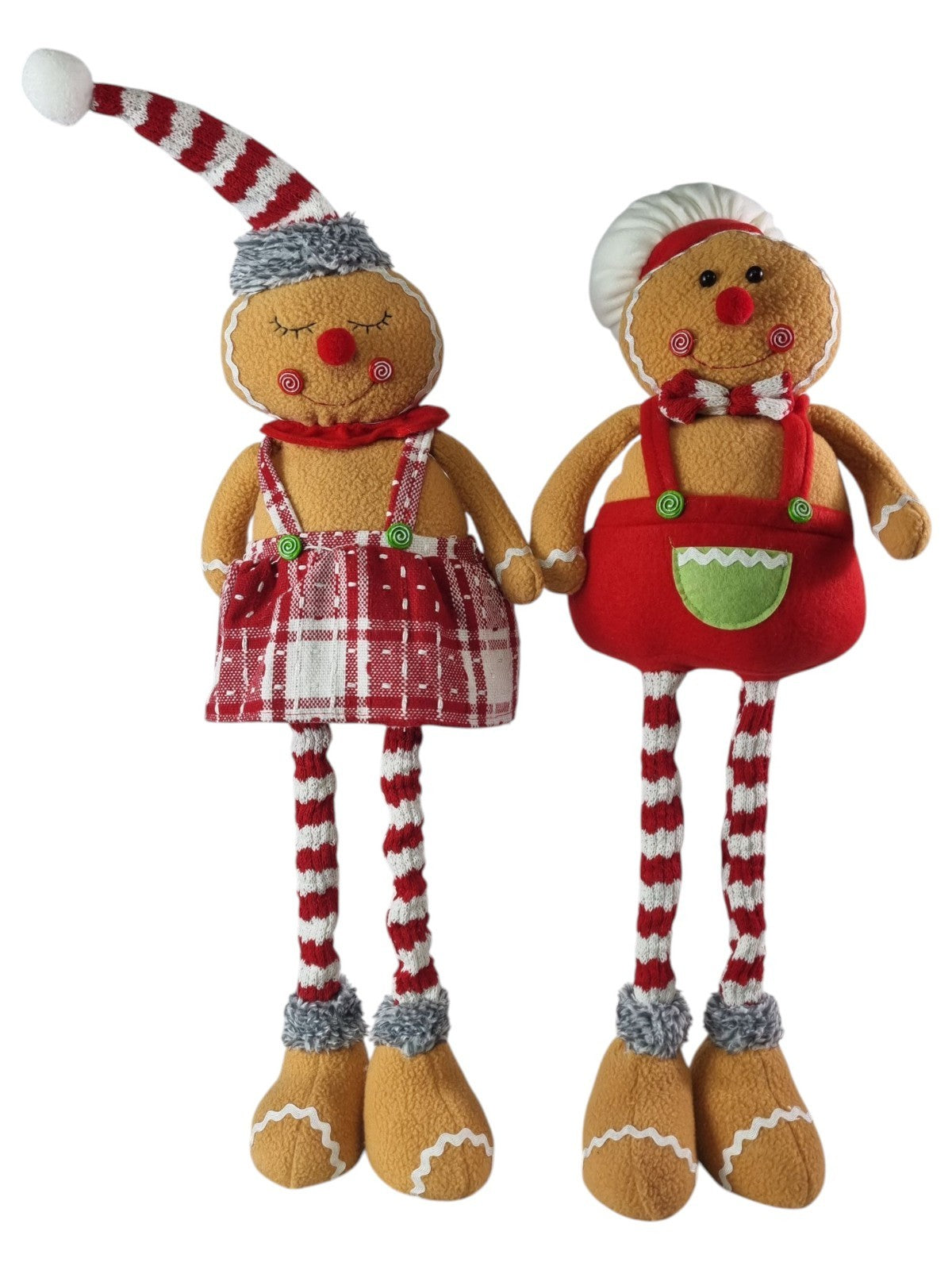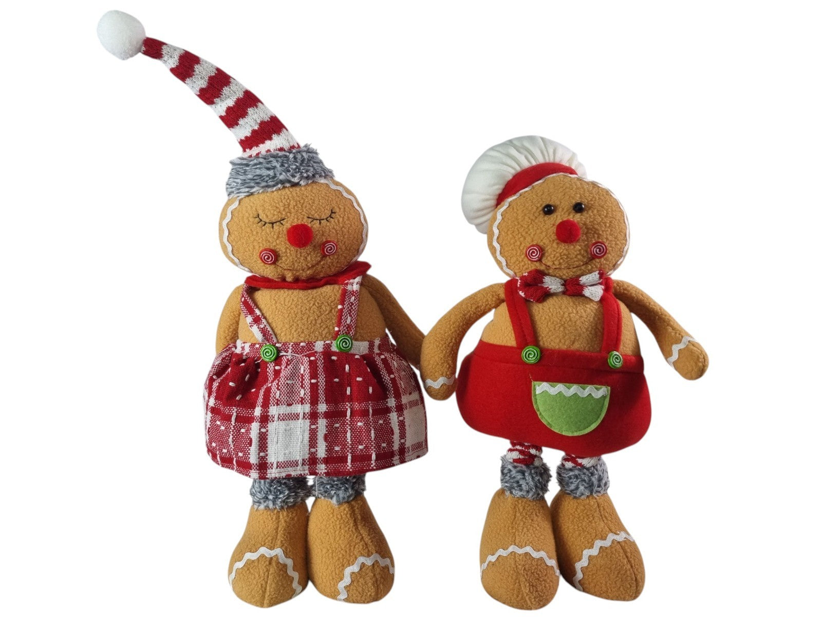 Festive Mr & Mrs Gingerbread Plush Standing Extendable Legs Xmas Gift Decorations