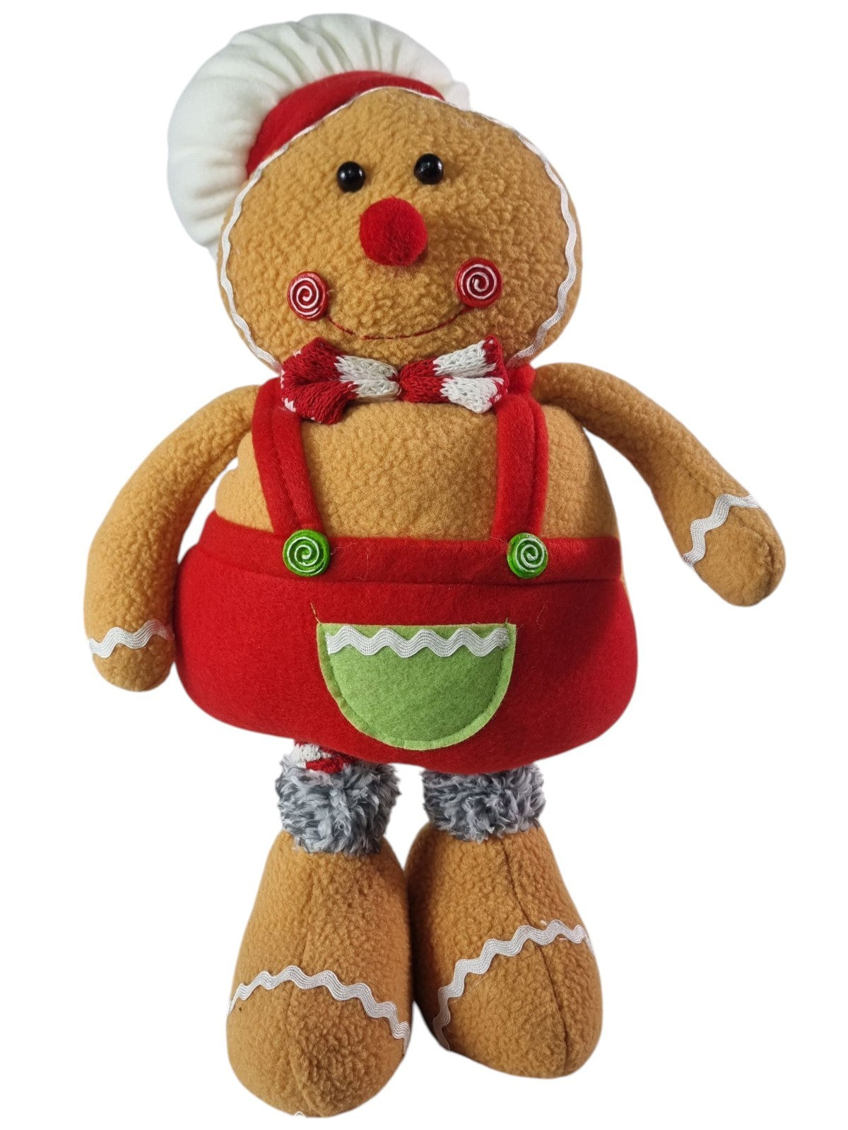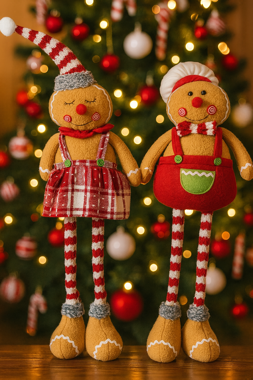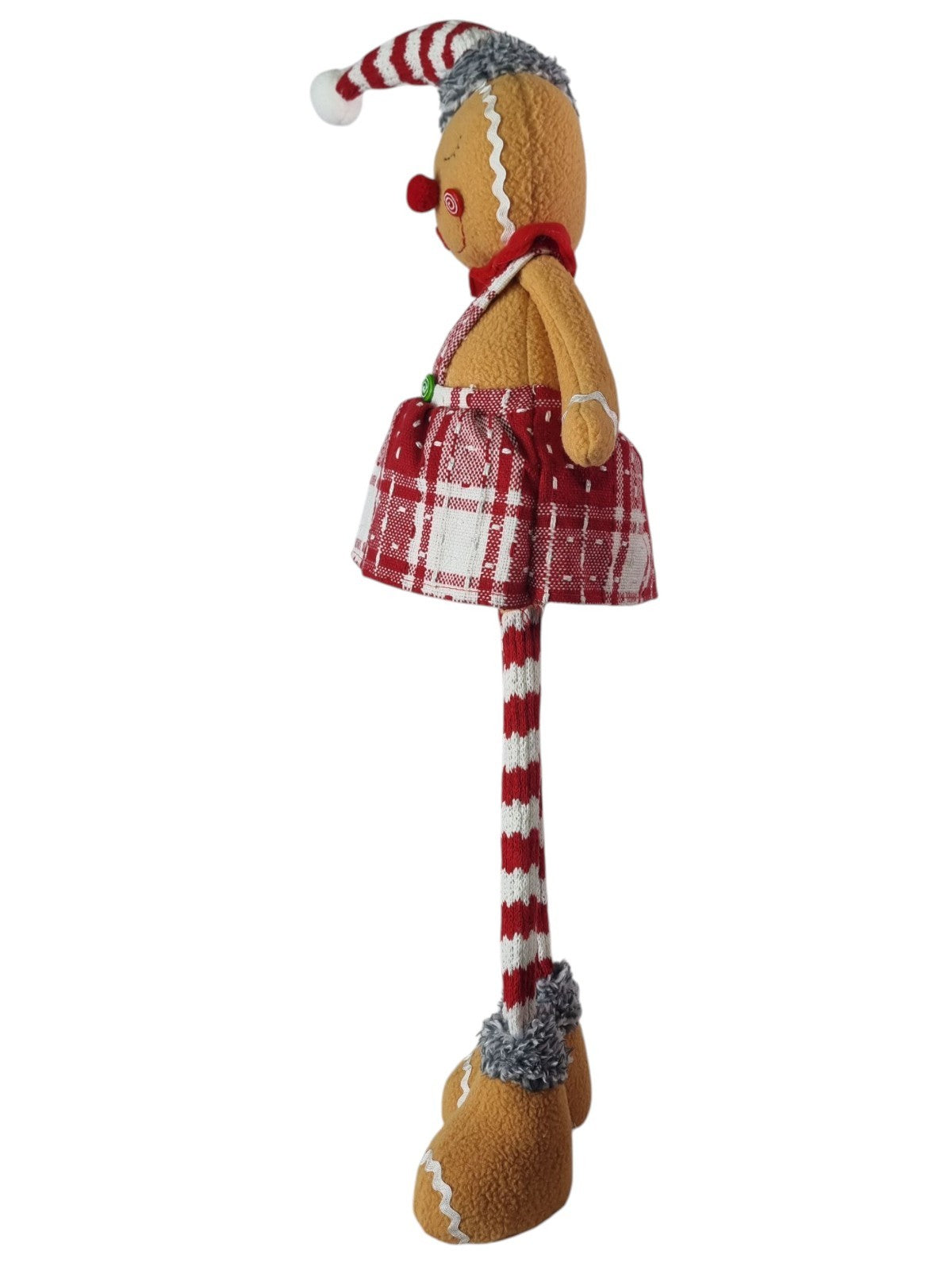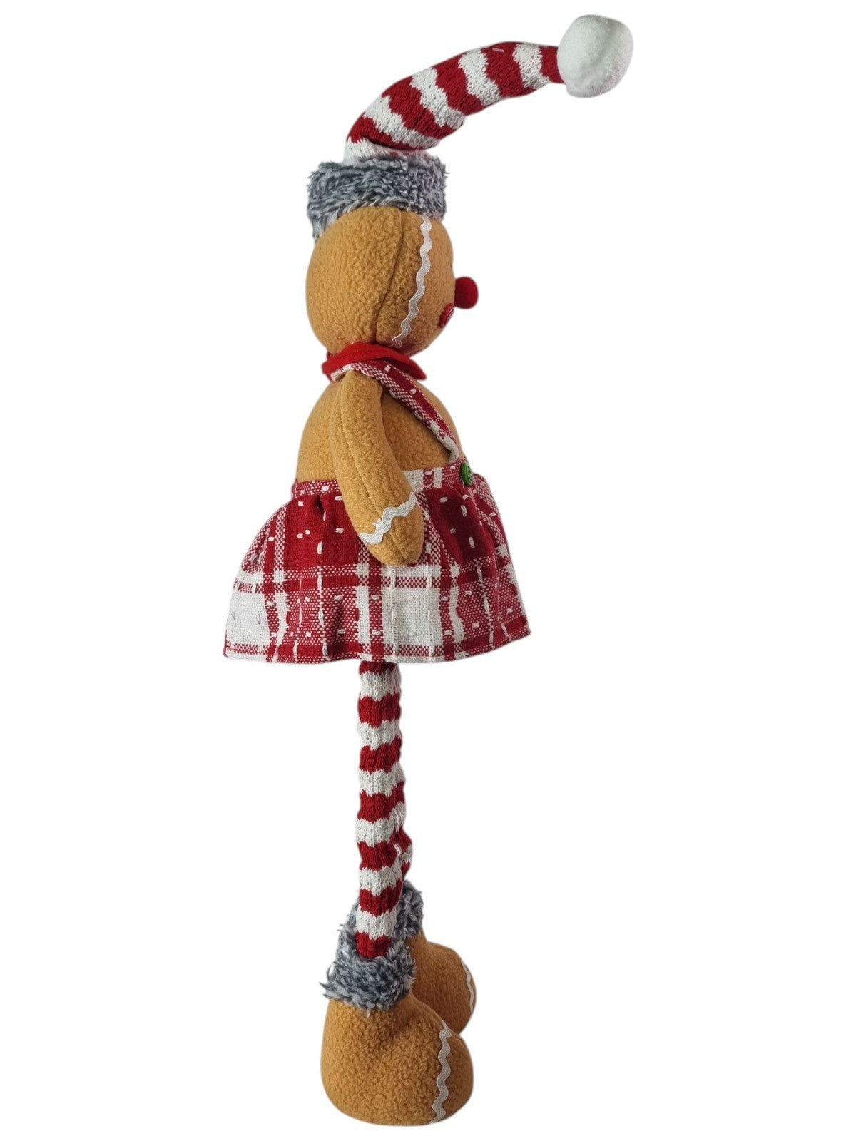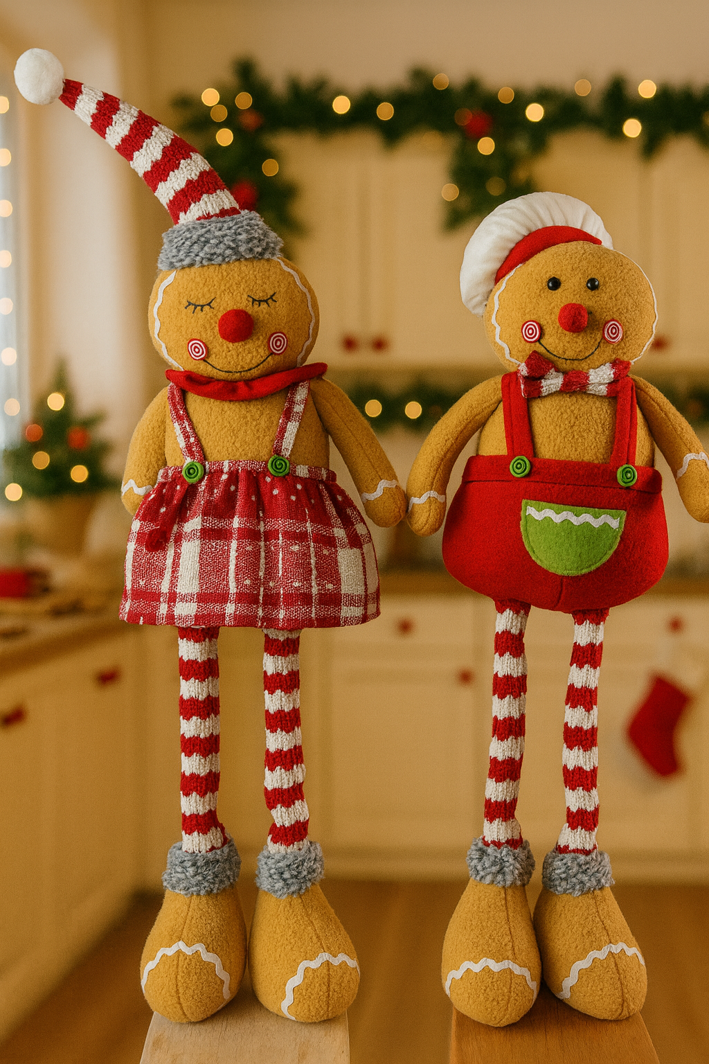 Festive Mr & Mrs Gingerbread Plush Standing Extendable Legs Xmas Gift Decorations