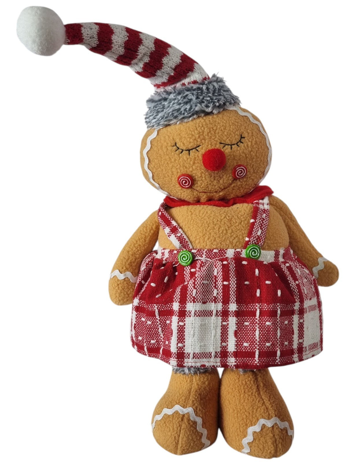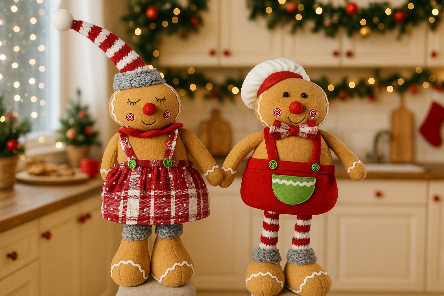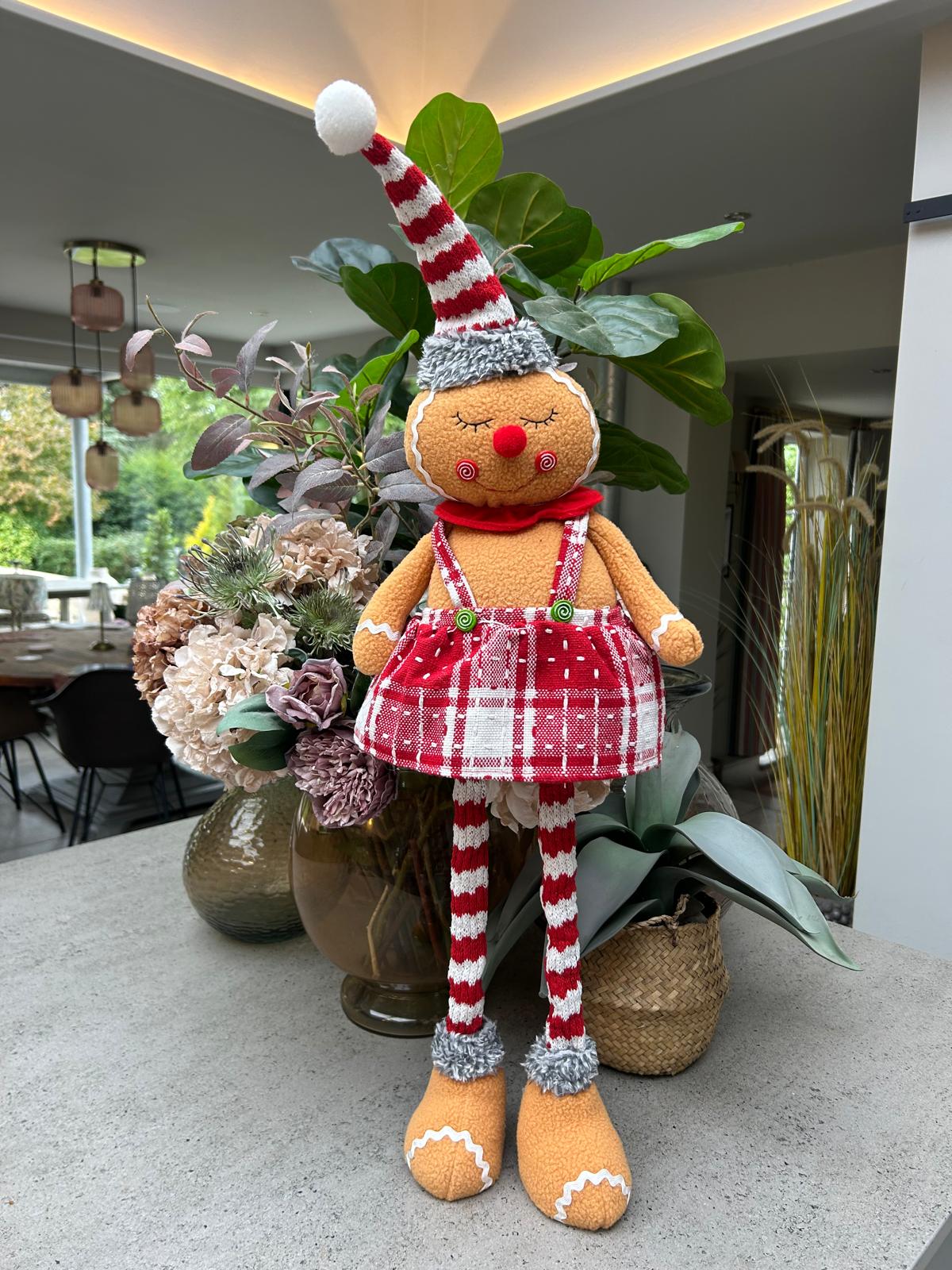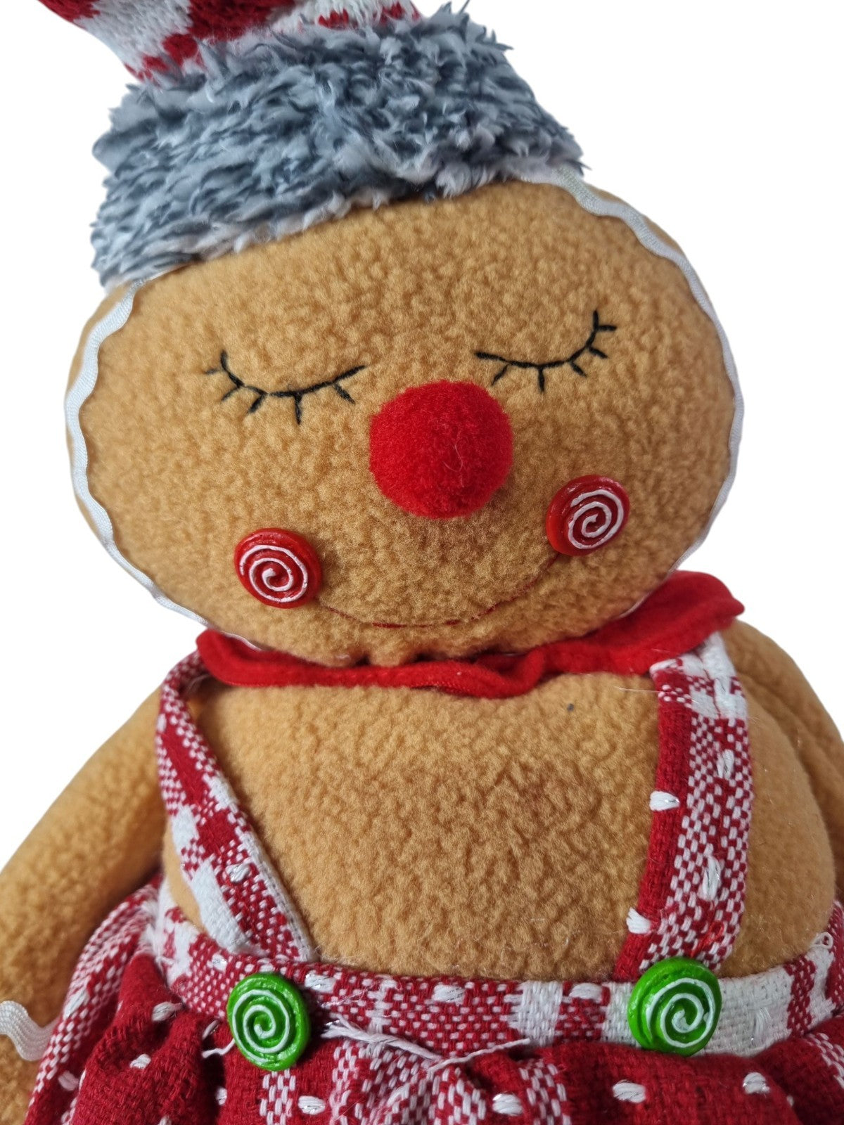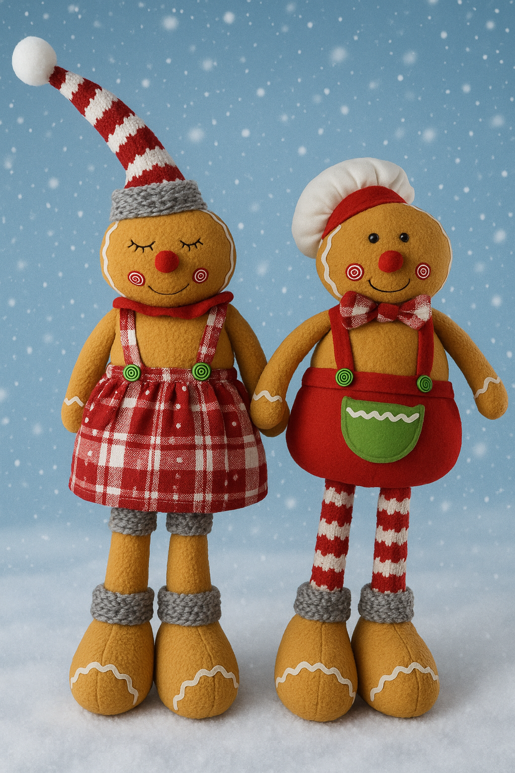 Festive Mr & Mrs Gingerbread Plush Standing Extendable Legs Xmas Gift Decorations
