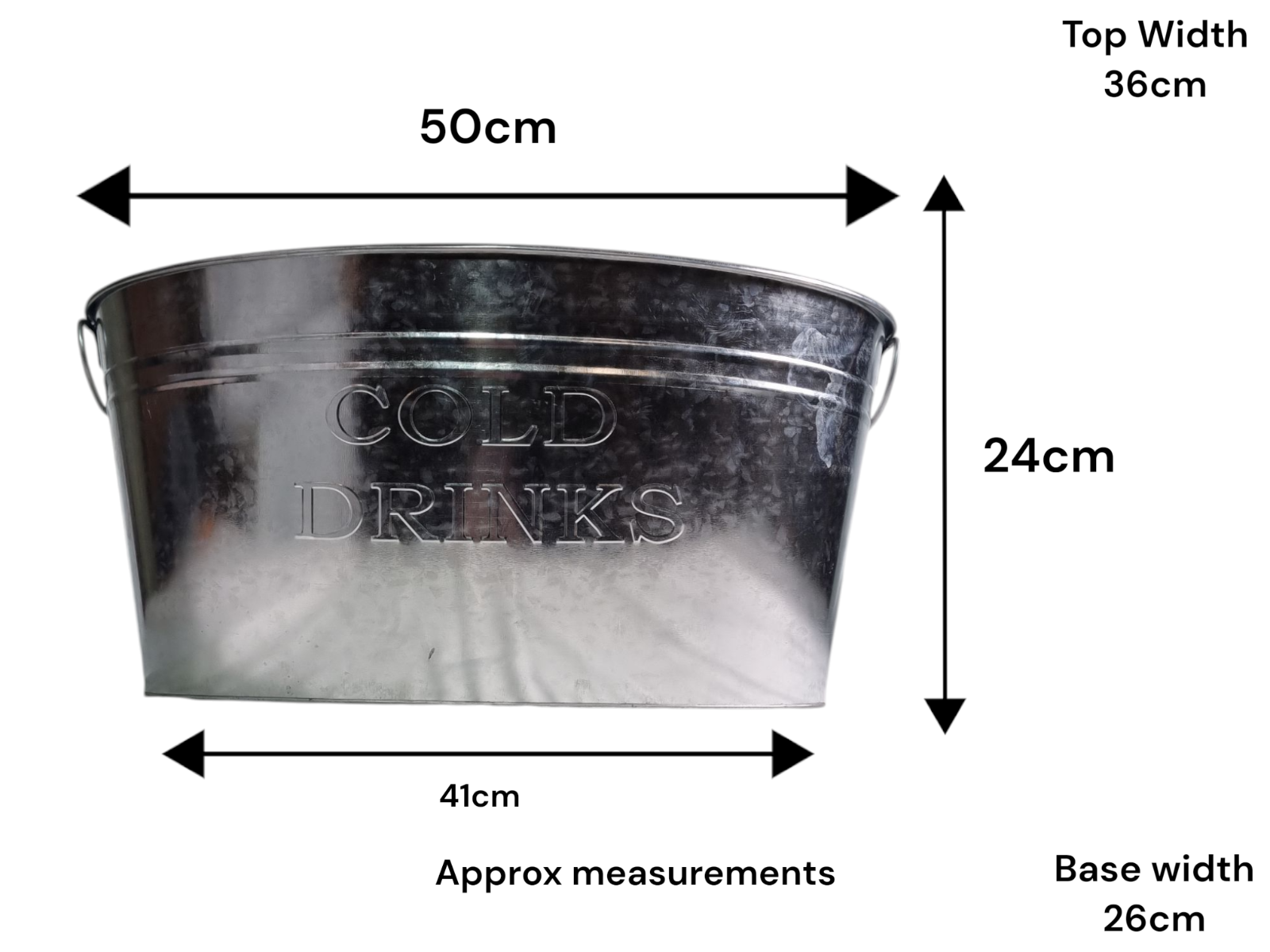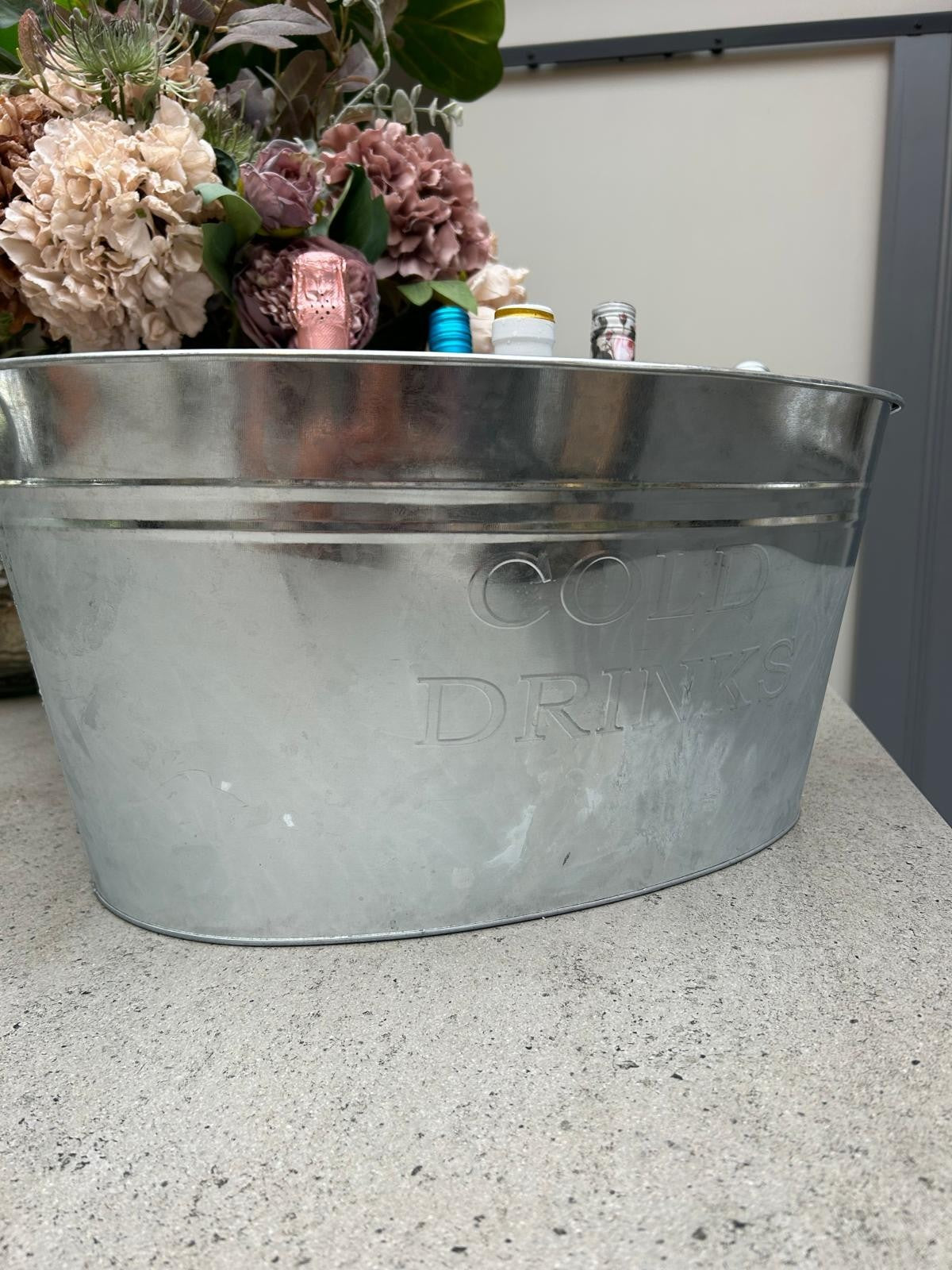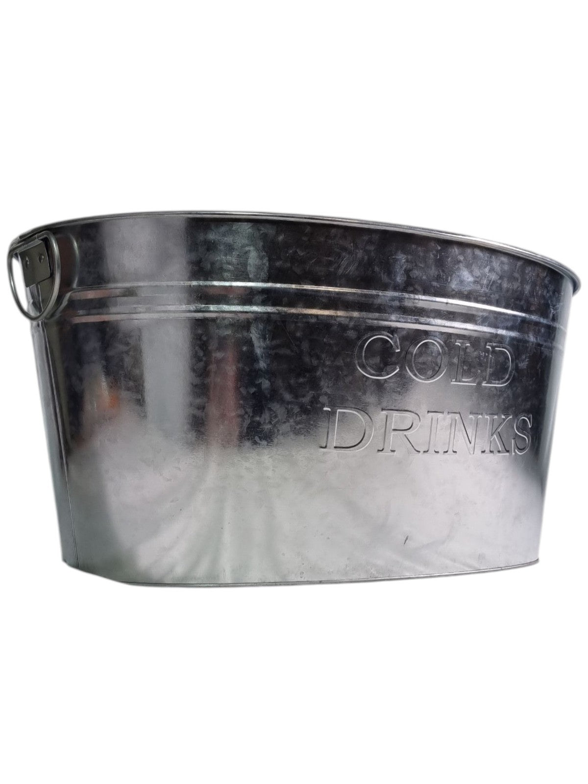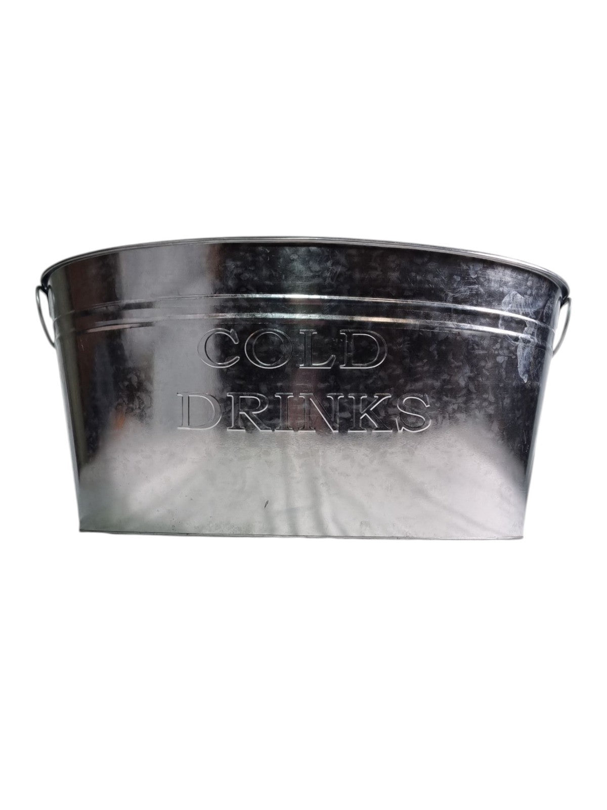 Cold Drinks Tin Shiny Oval Metal Silver Ice Bucket Drink Display Large Embossed