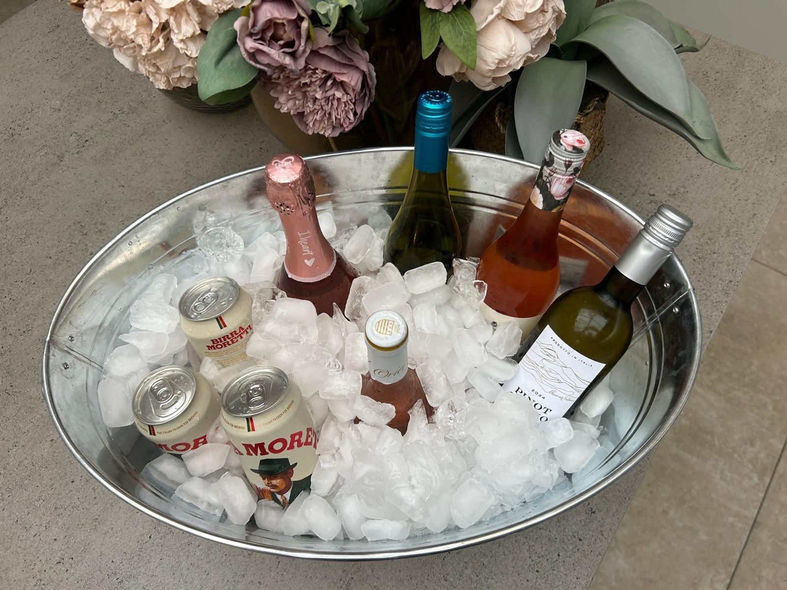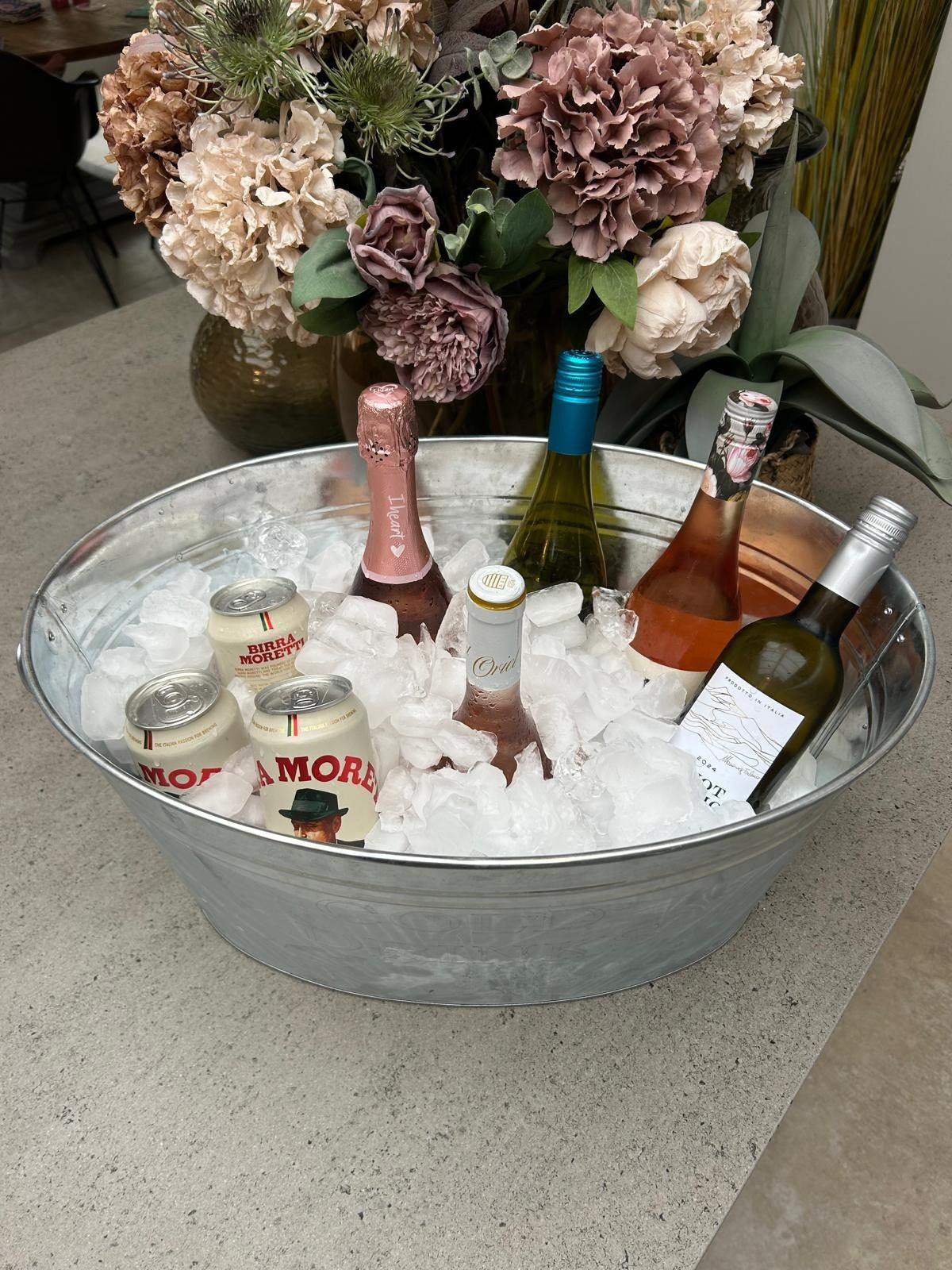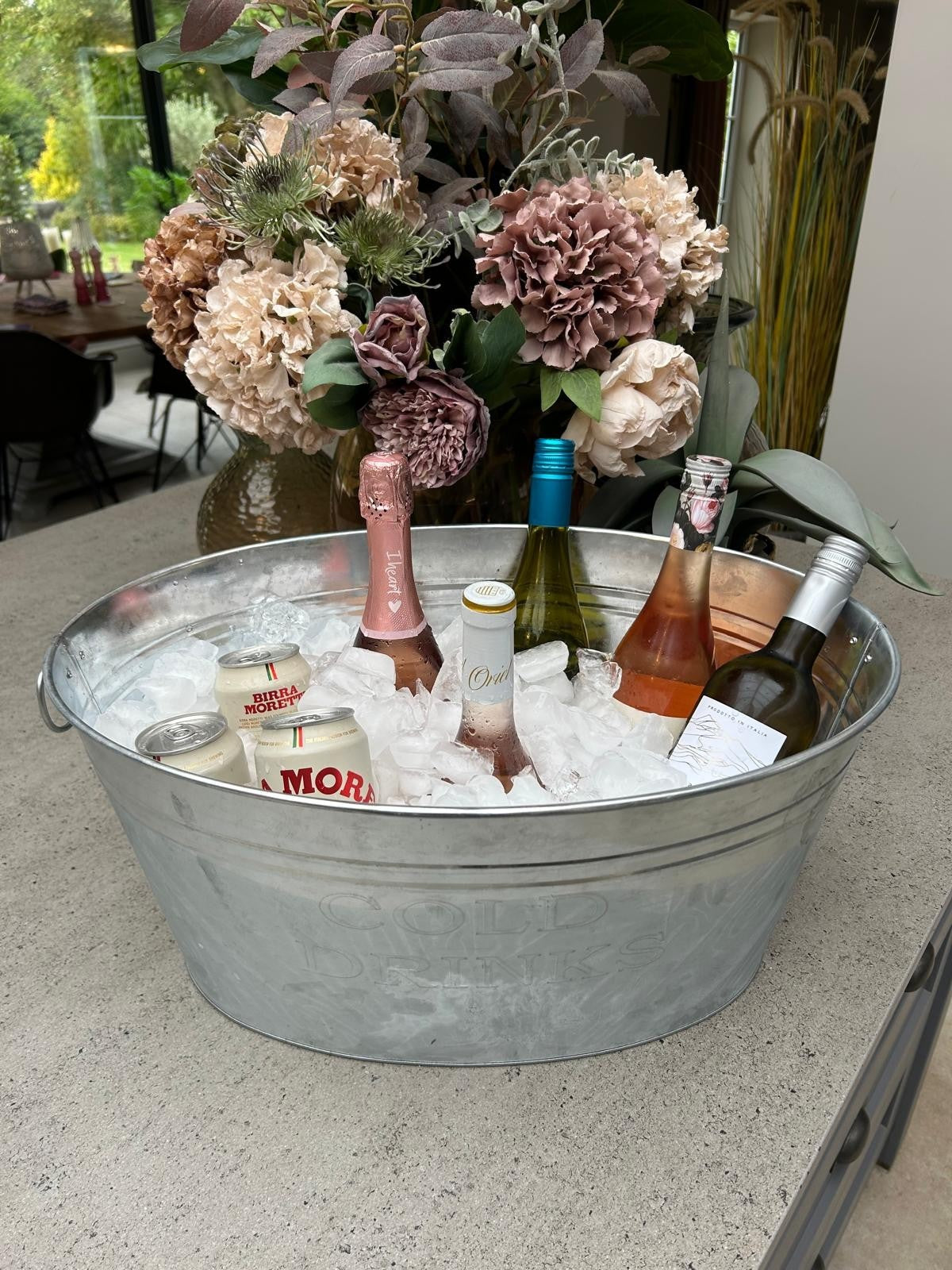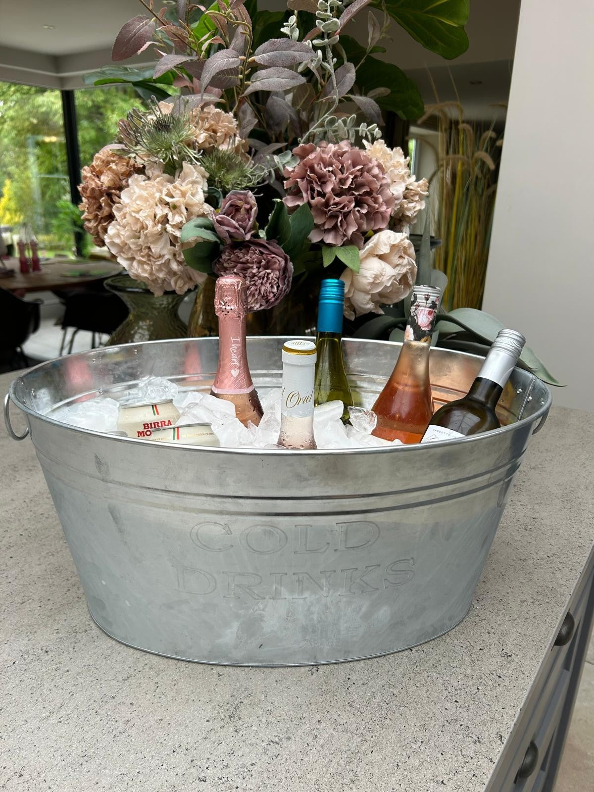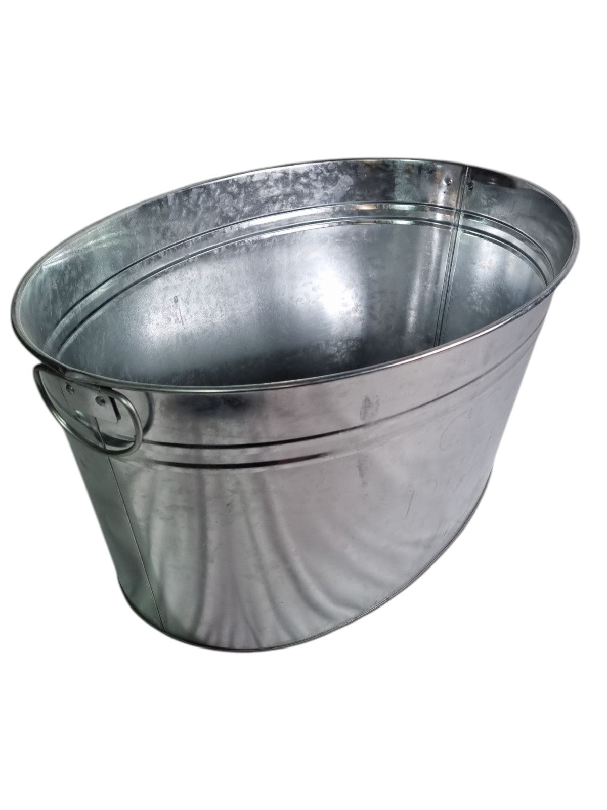 Cold Drinks Tin Shiny Oval Metal Silver Ice Bucket Drink Display Large Embossed