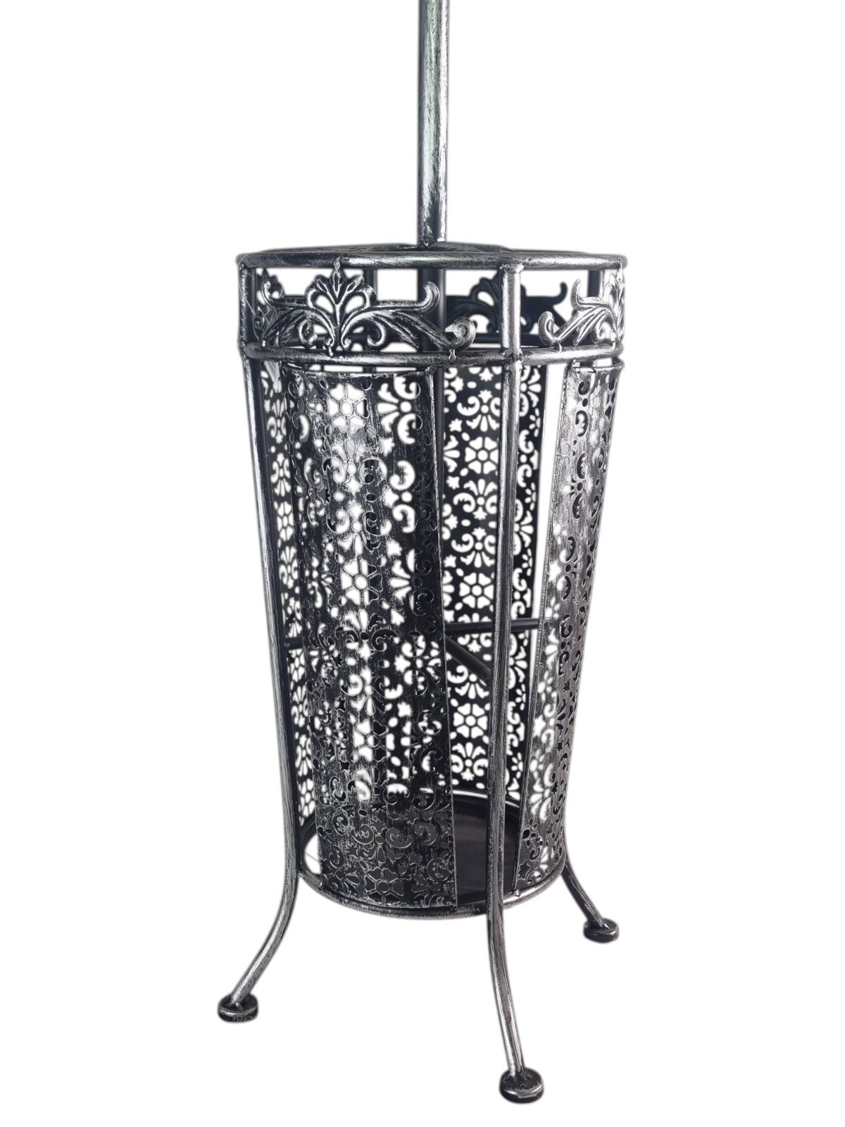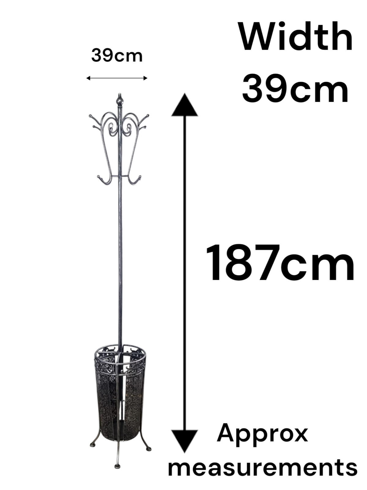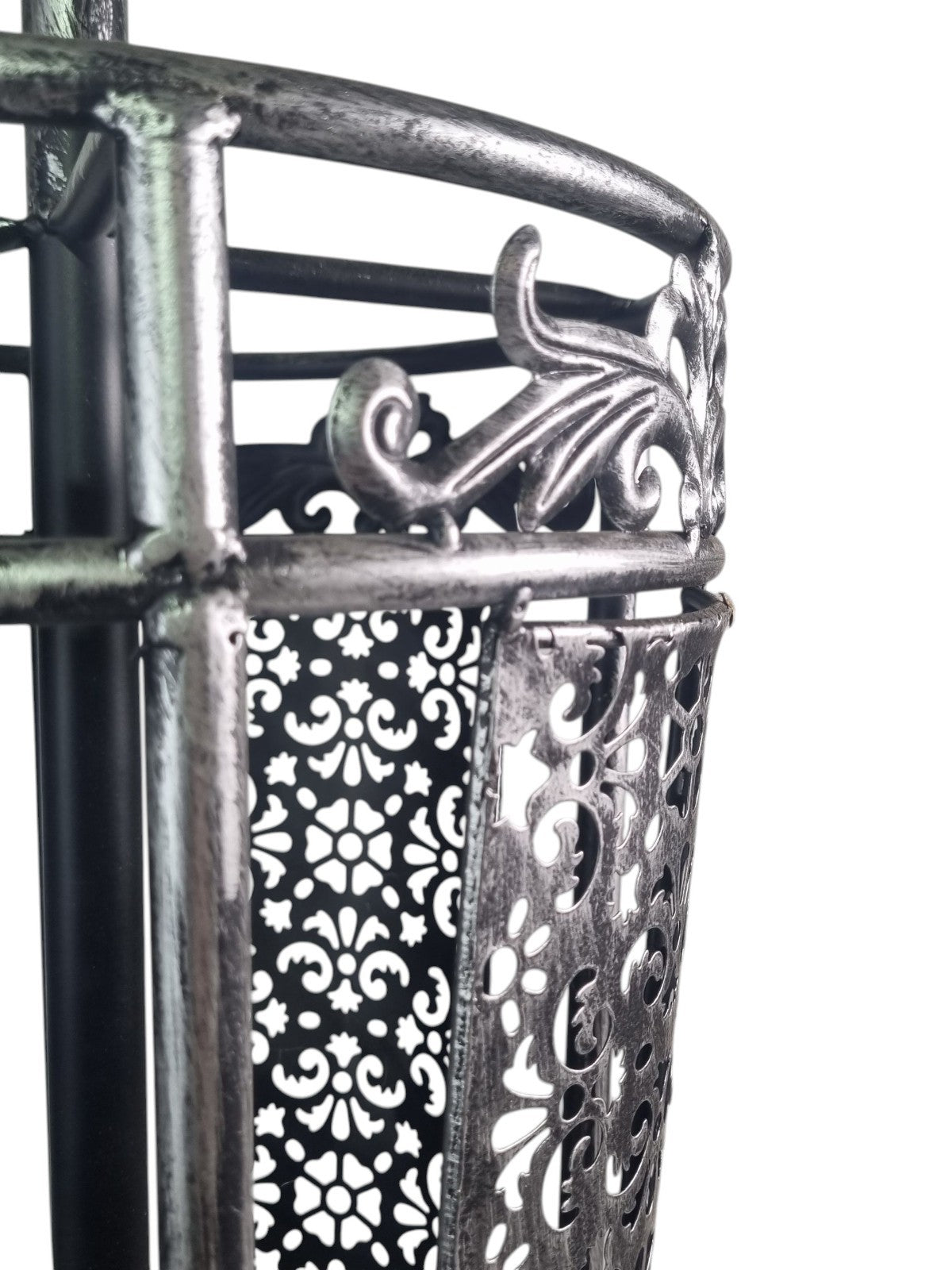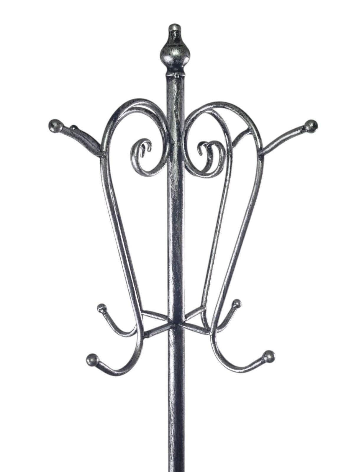 Coat Stand Floor Standing Decorative Umbrella Rack 8 Hooks Black & Silver Metal
