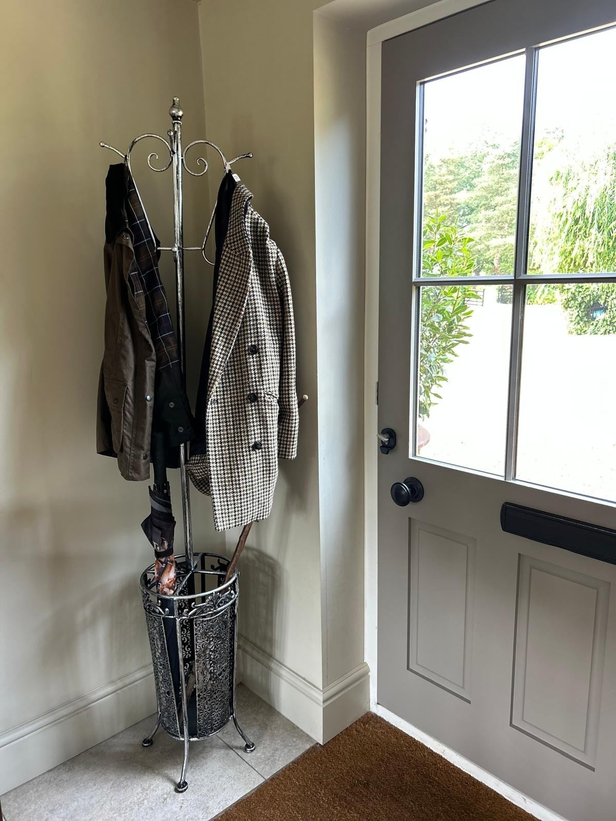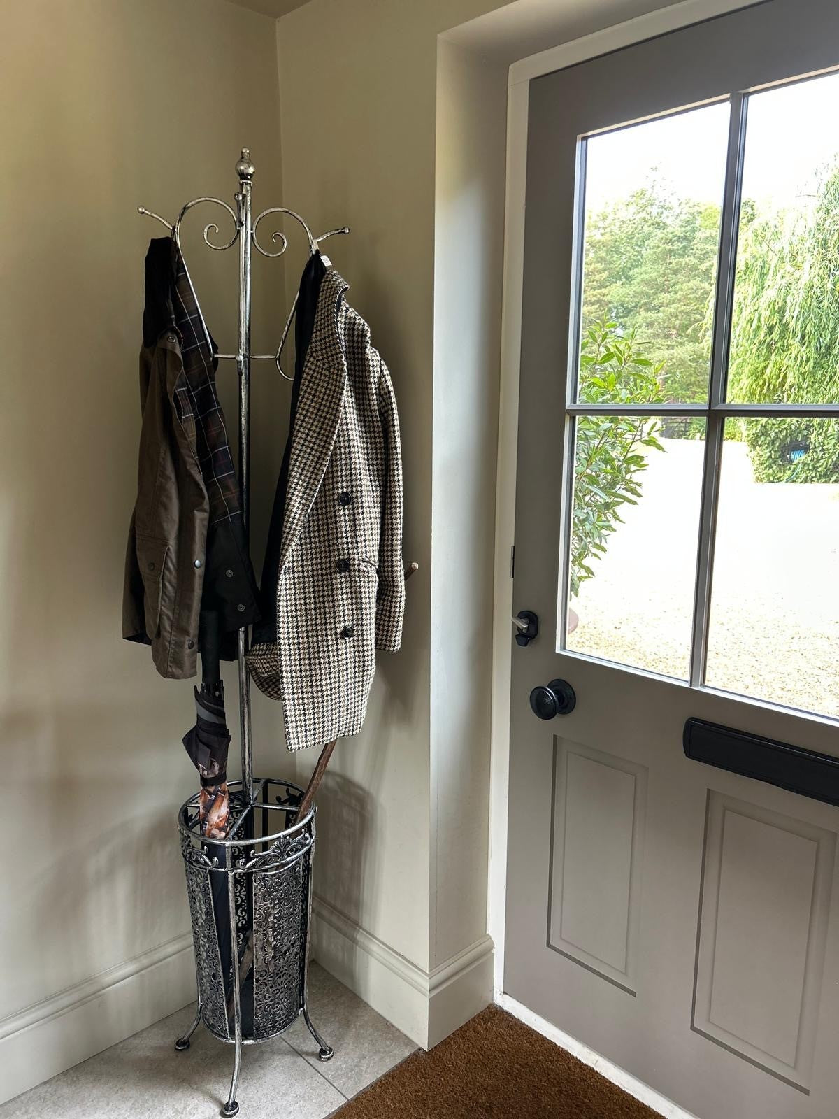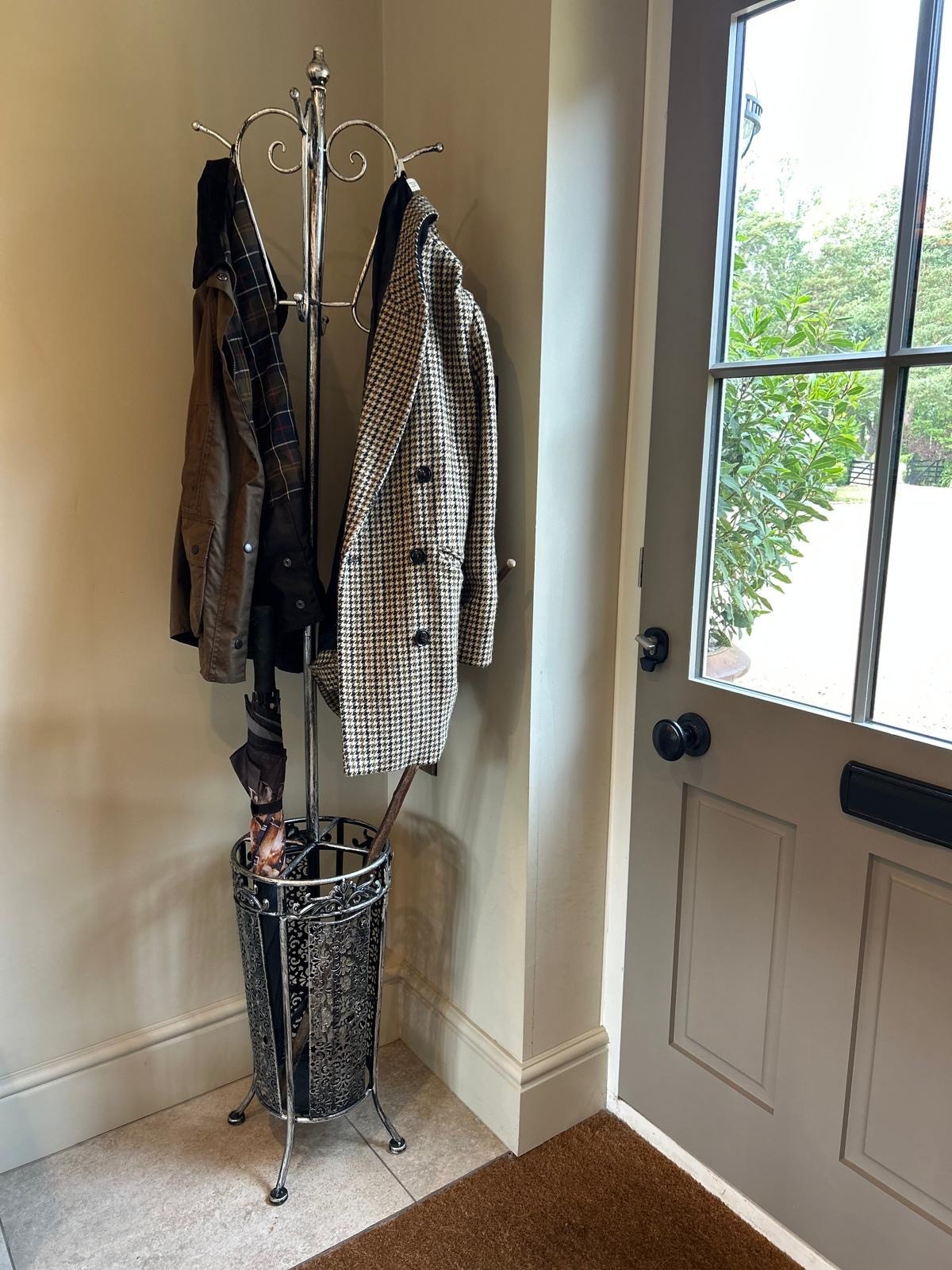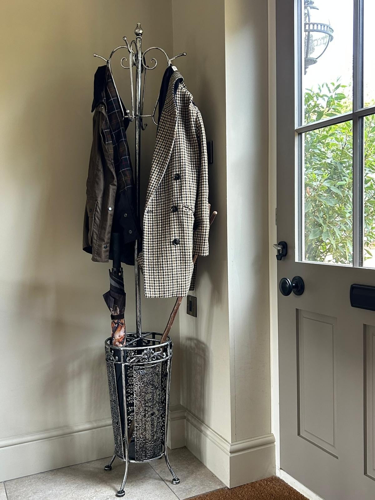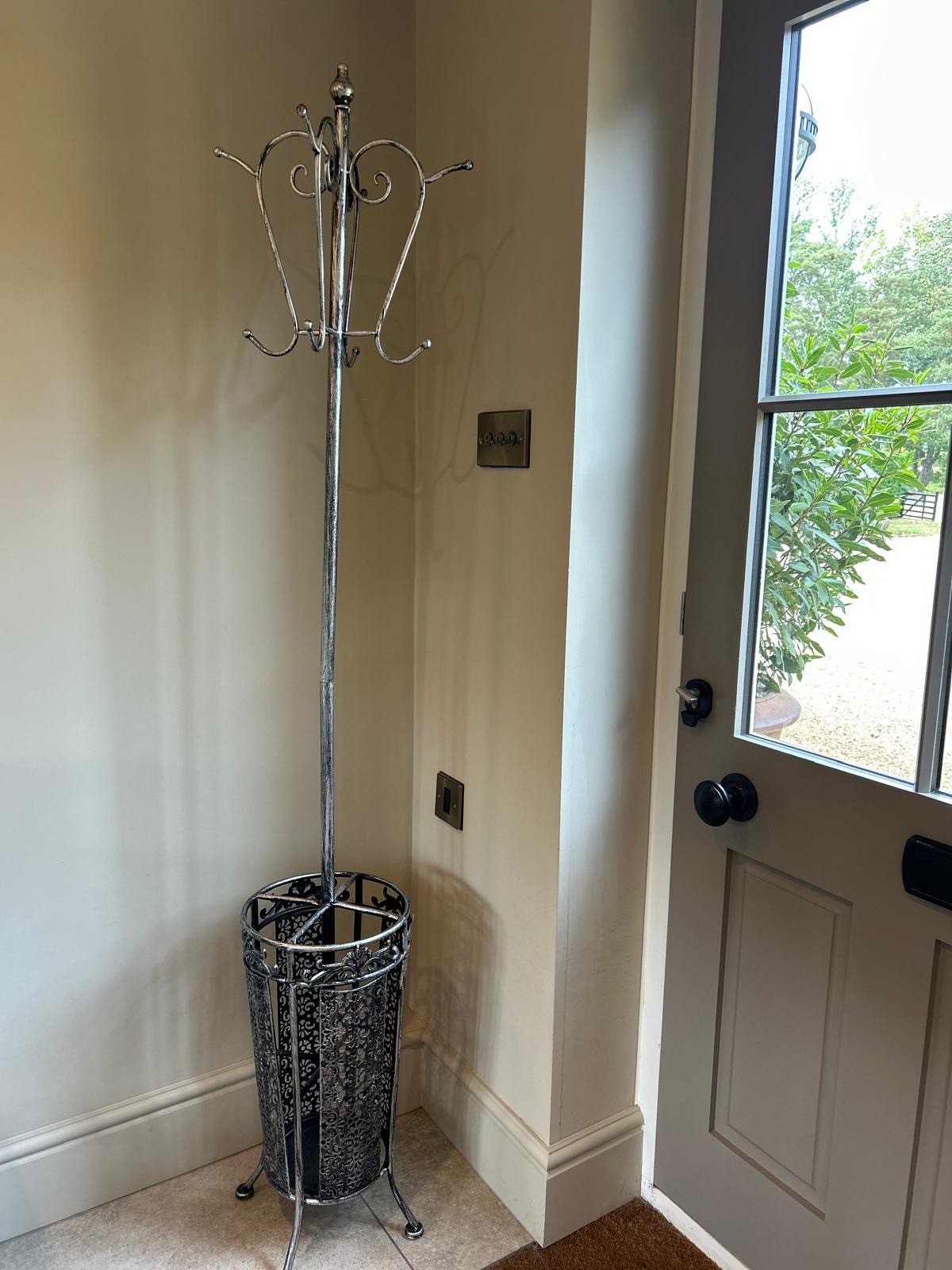 Coat Stand Floor Standing Decorative Umbrella Rack 8 Hooks Black & Silver Metal