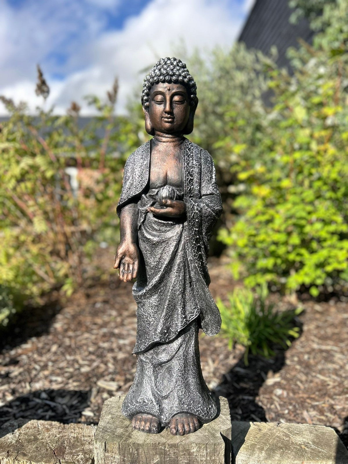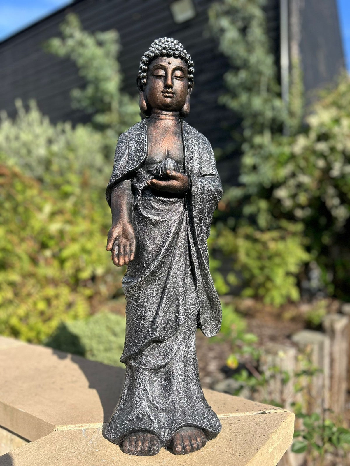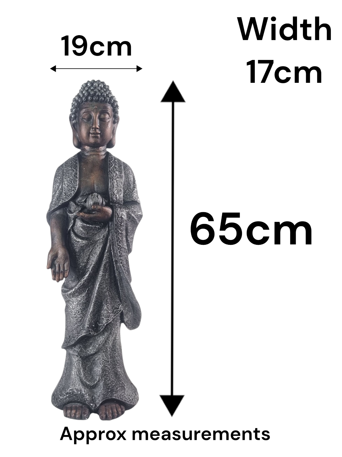 Large Copper & Silver Effect Standing Buddha Garden Decoration Gift