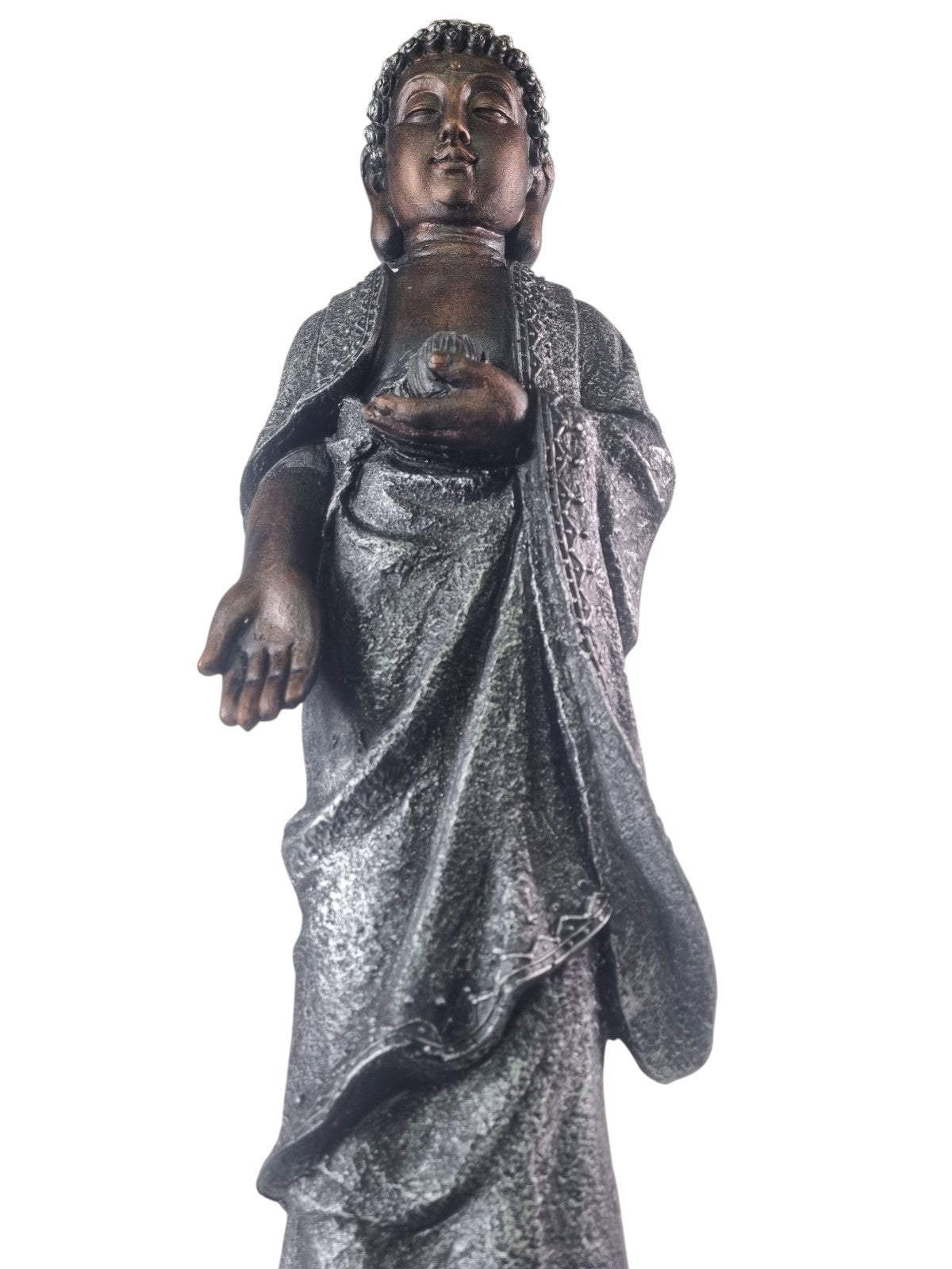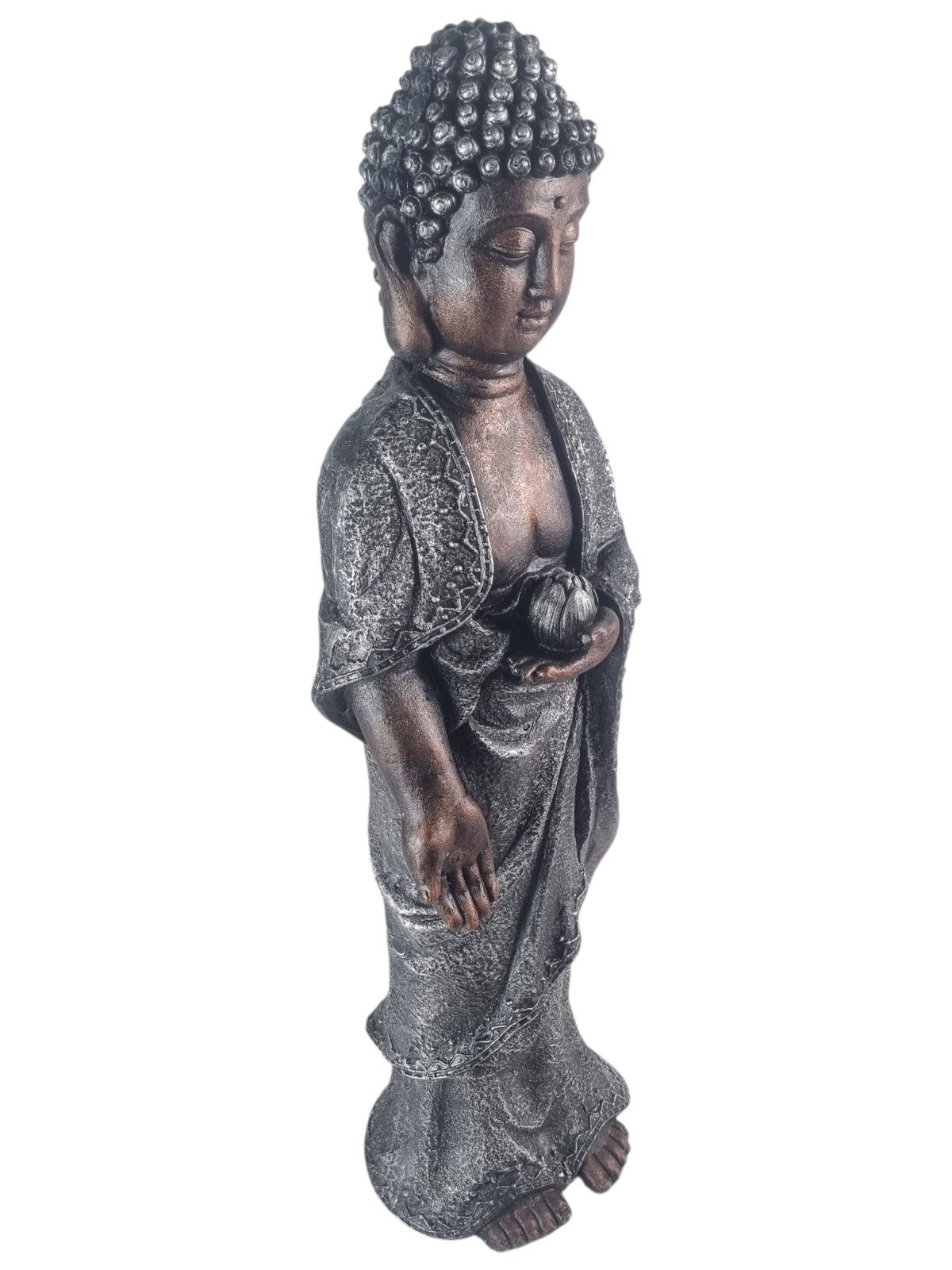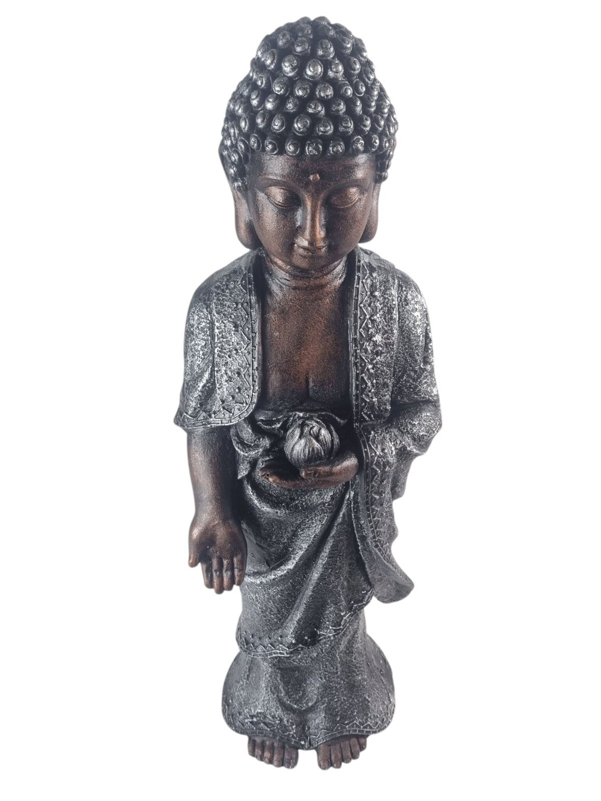 Large Copper & Silver Effect Standing Buddha Garden Decoration Gift