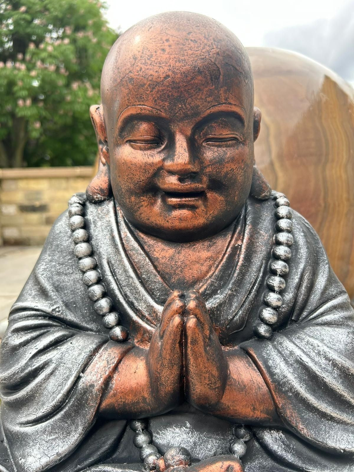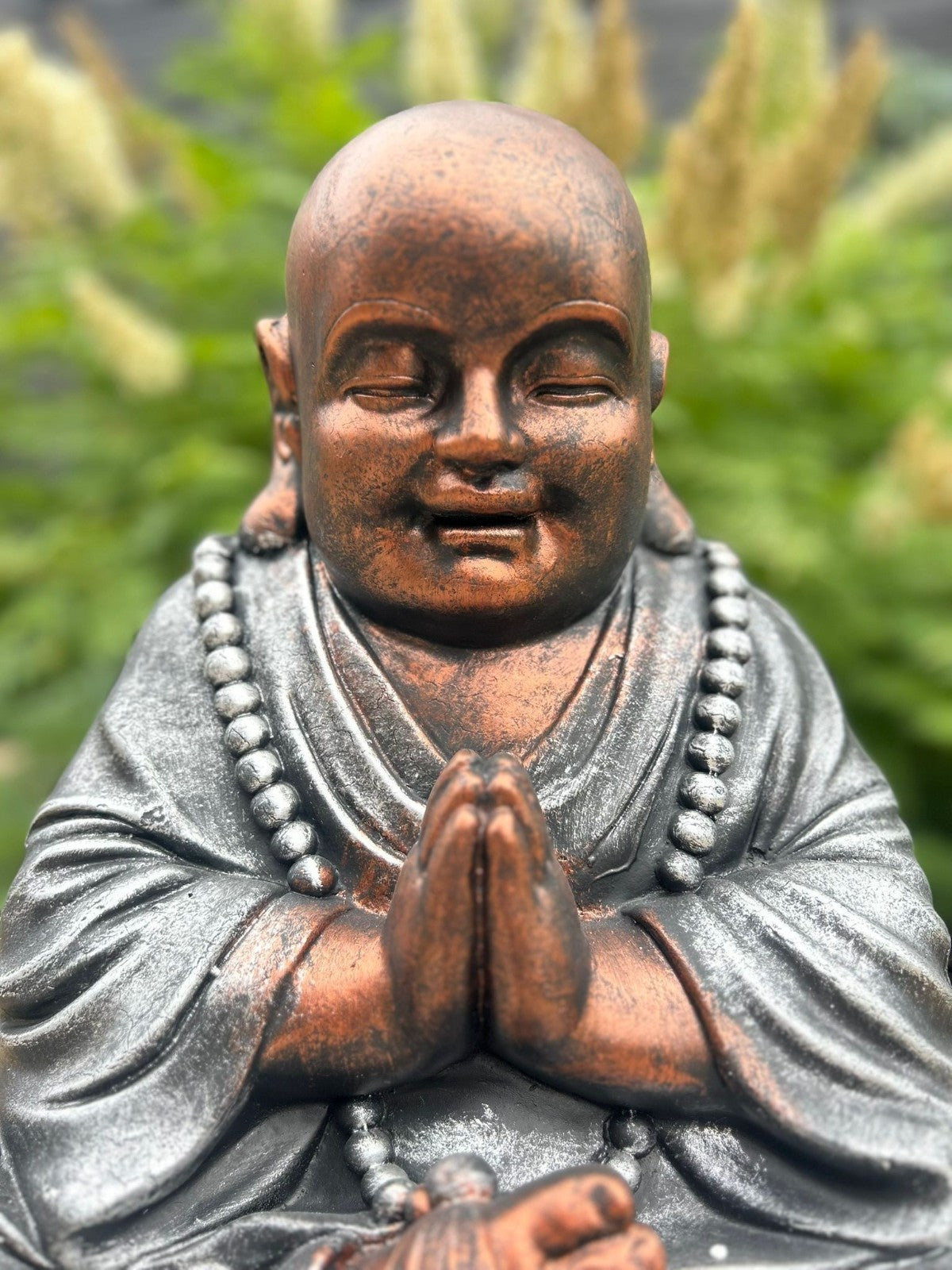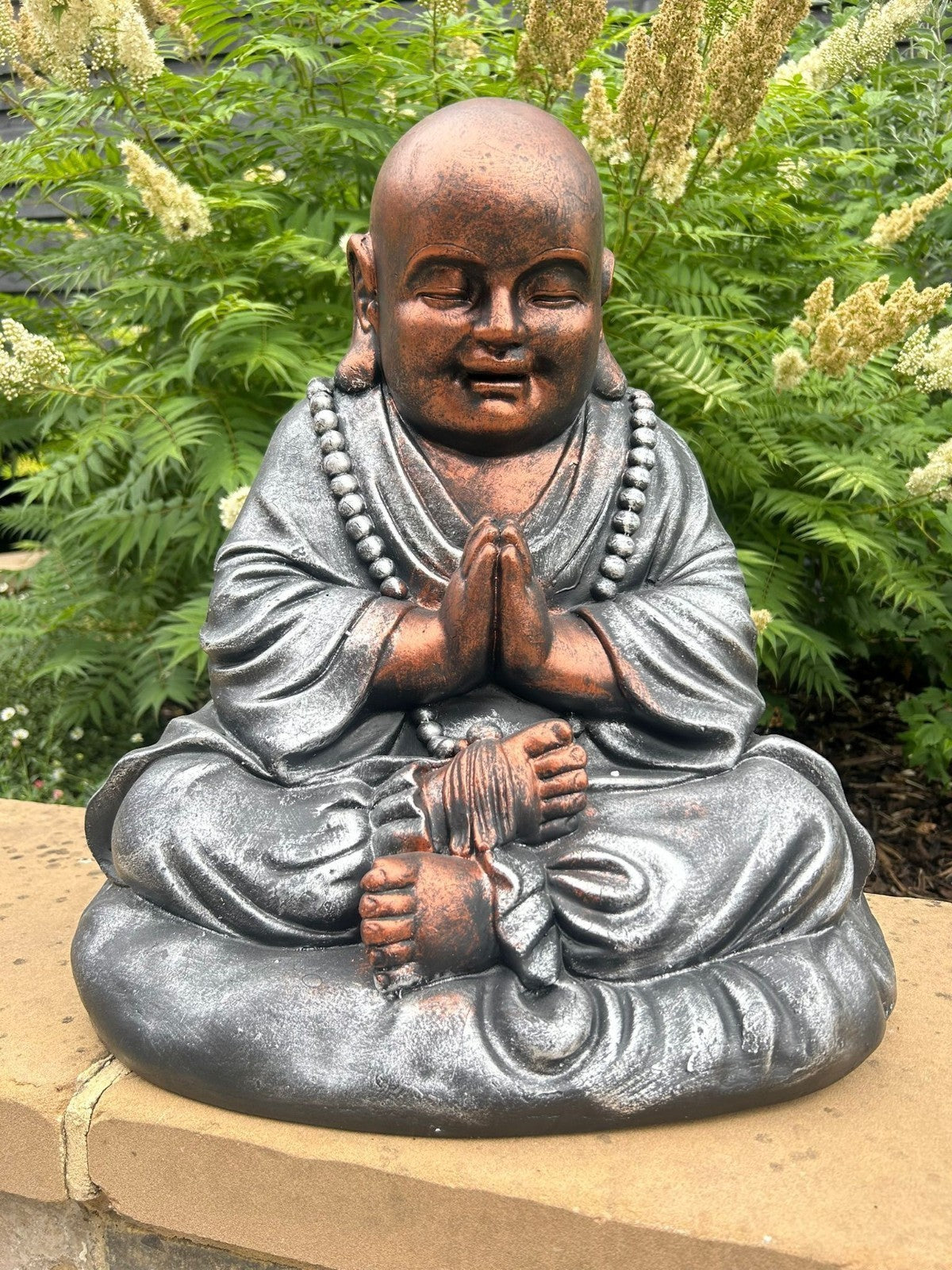 Fat Buddha Garden Ornament Copper & Silver Gift Decor Decoration Stone Effect