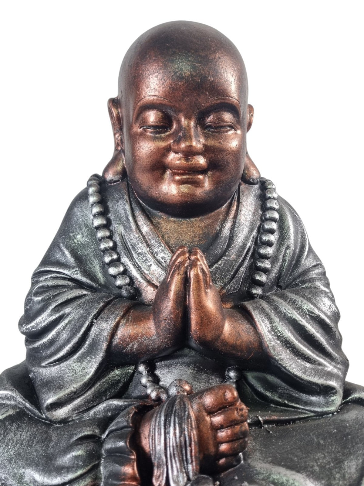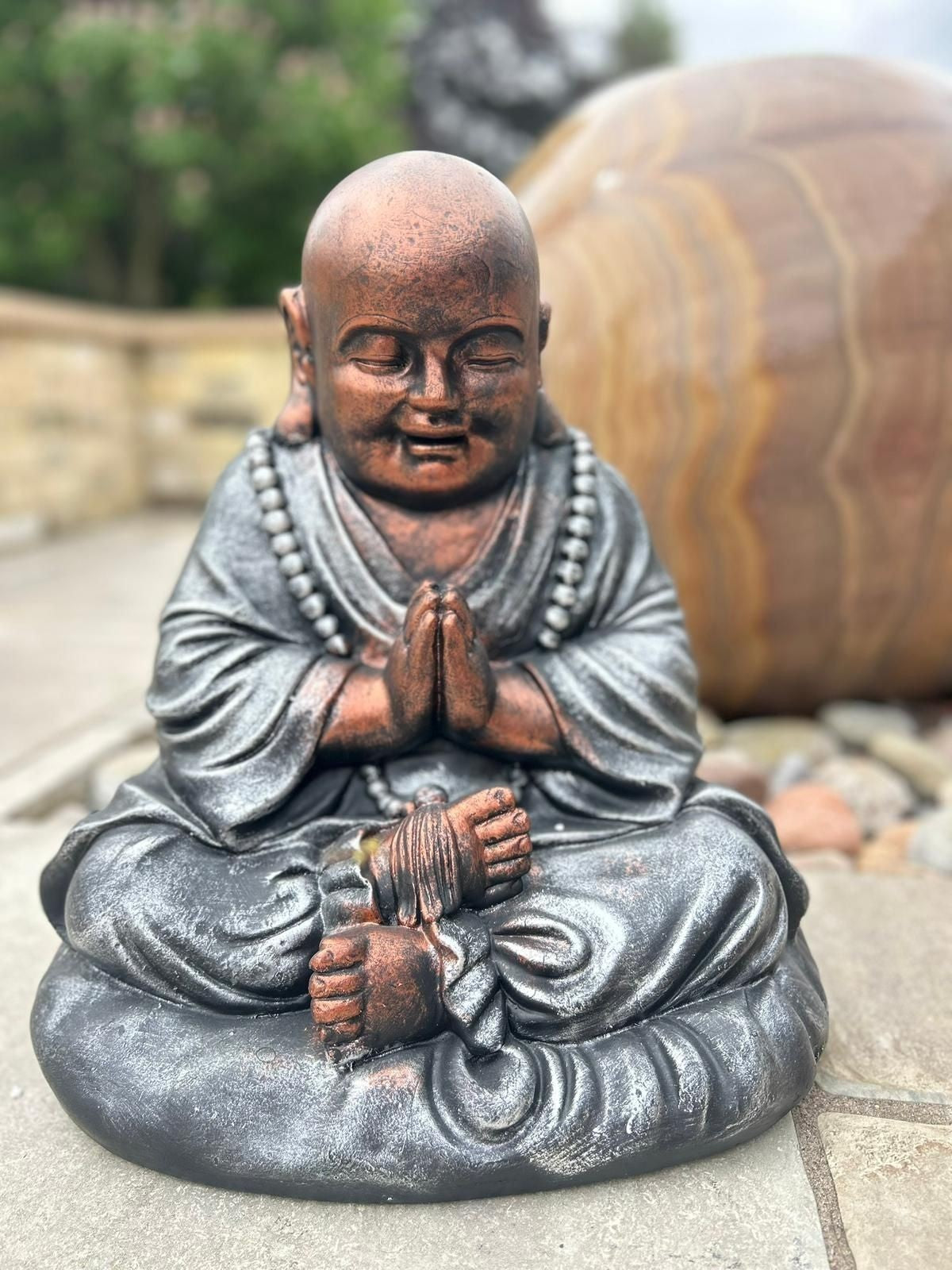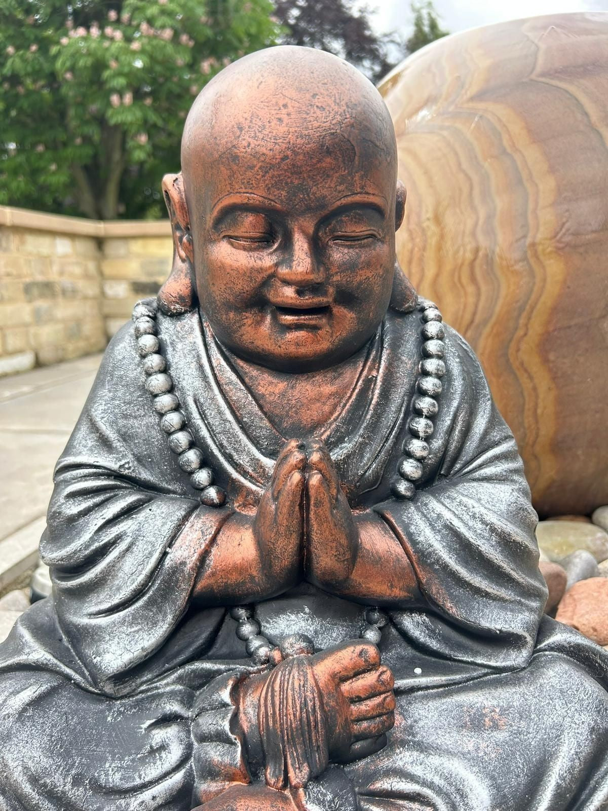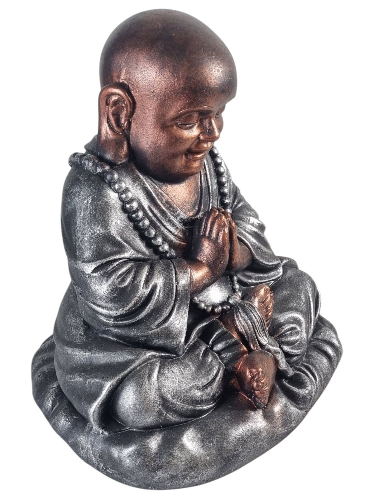 Fat Buddha Garden Ornament Copper & Silver Gift Decor Decoration Stone Effect