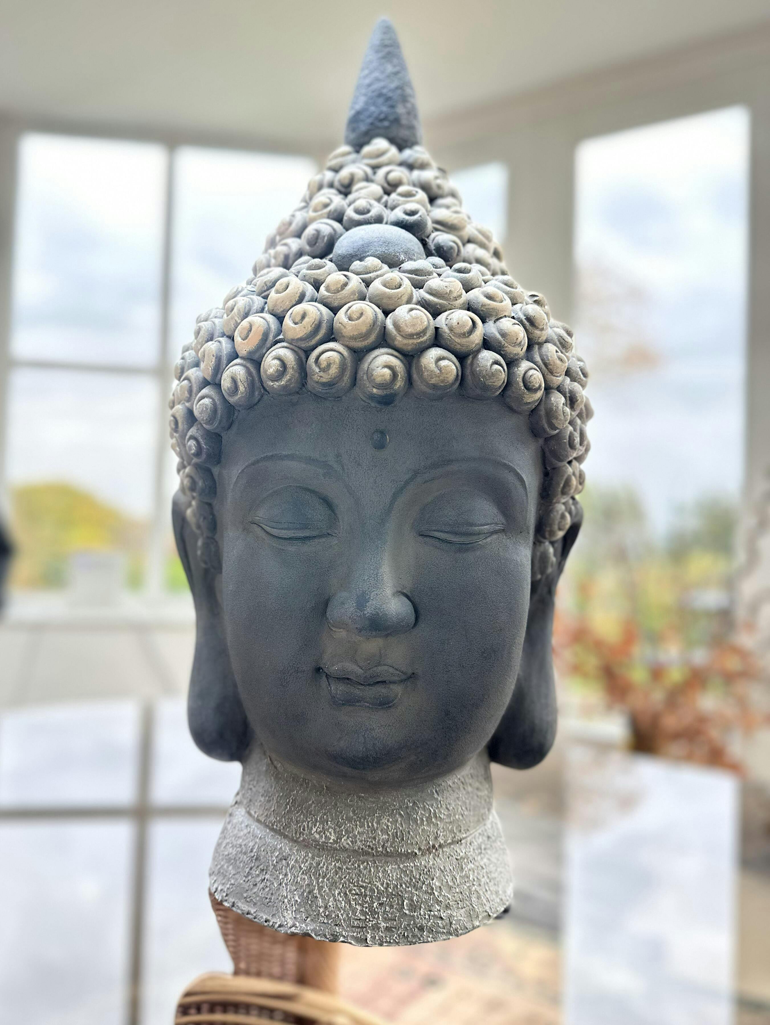 Extra Large Brown Charcoal Buddha Head Garden Gift Decor Decoration Ornament